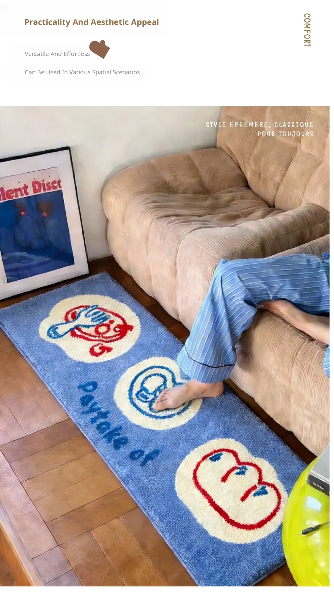 2026 New Stylish Non-Slip Thick Entrance Door Mat - Luxurious Bedroom Carpet, Easy to Clean Cotton Bedside Rug in Elegant Colors