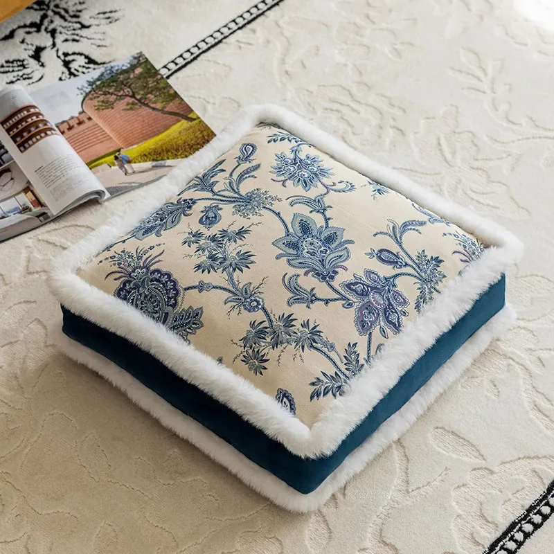 Andrea Blue and White Porcelain Velvet Edge Seat Cushion