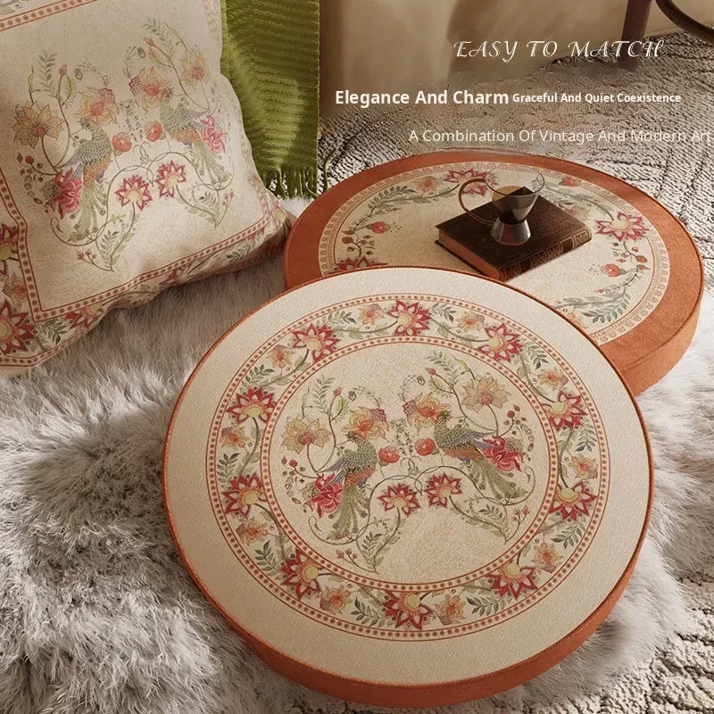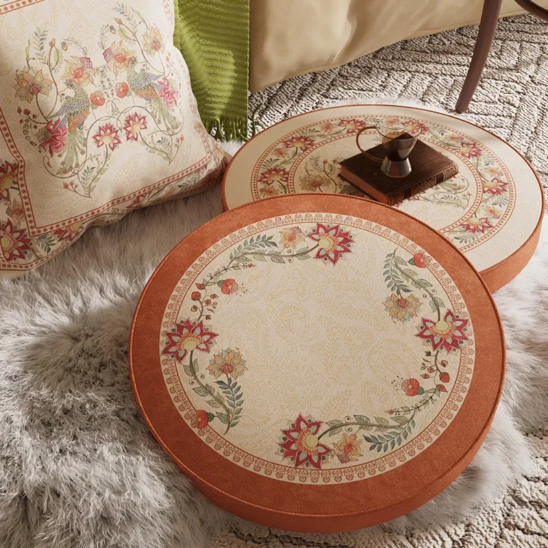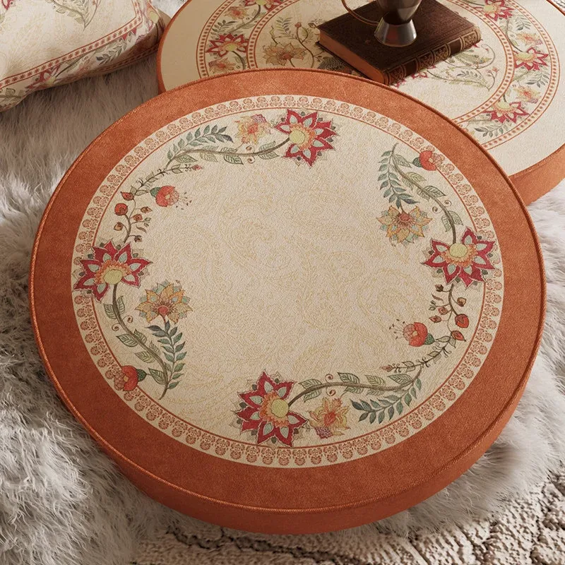 American-style Balcony Cushions – French Round Floor Pouf for Living Room, Window Sill, and Tatami; Luxurious Low Stool Seat Cushion for Ultimate Comfort and Style