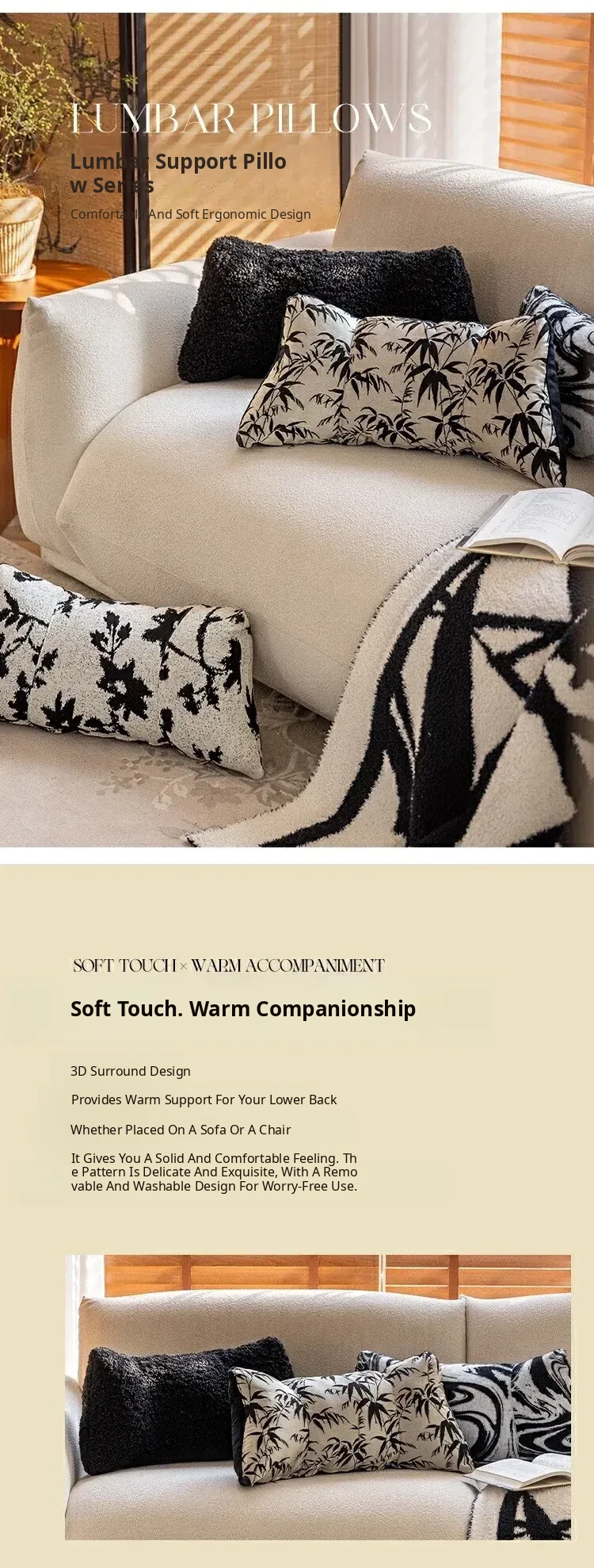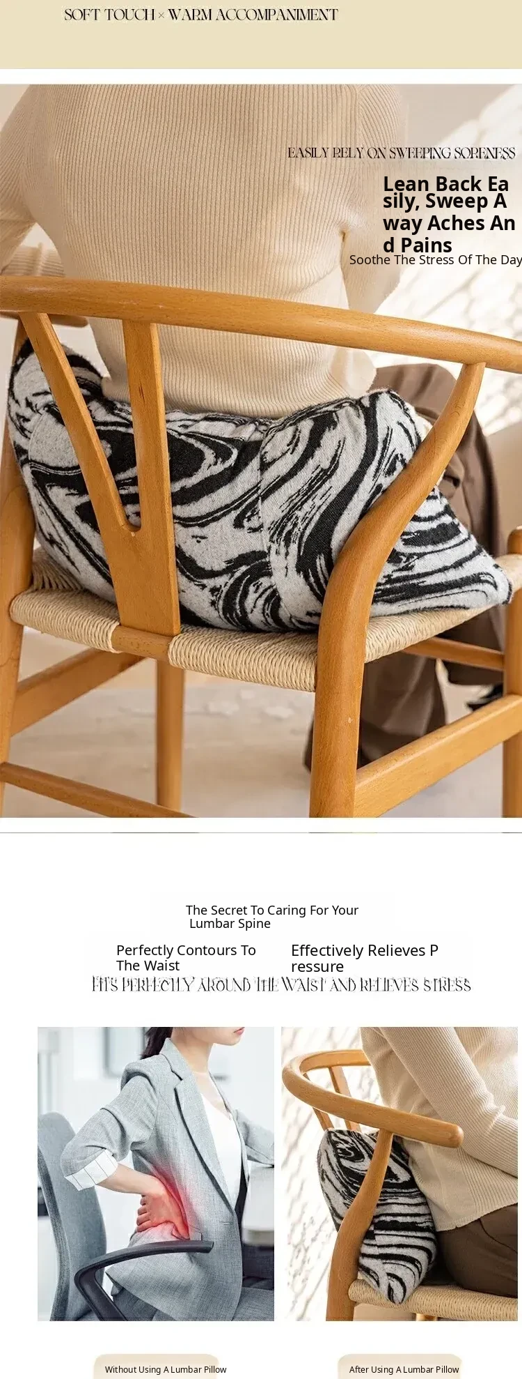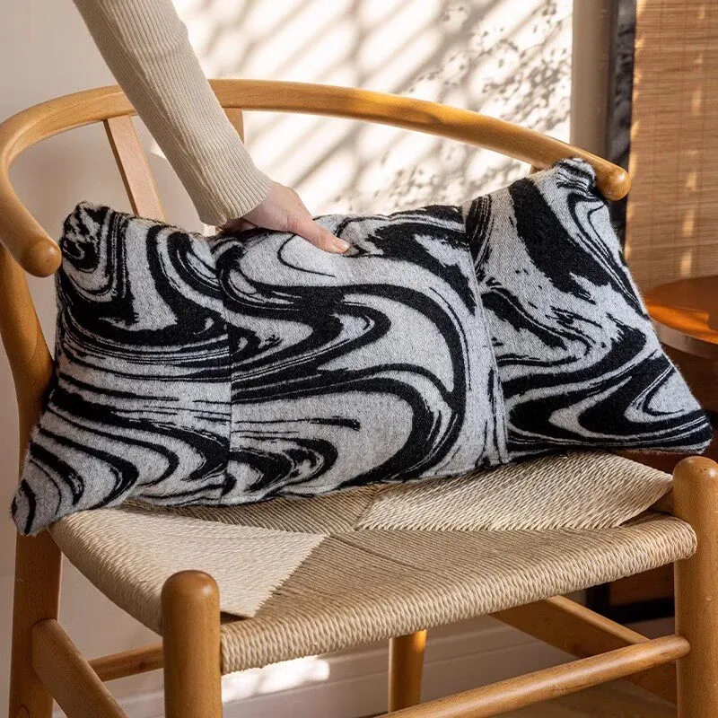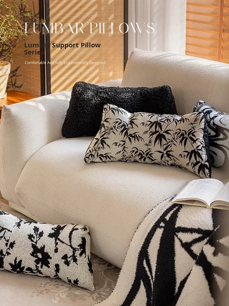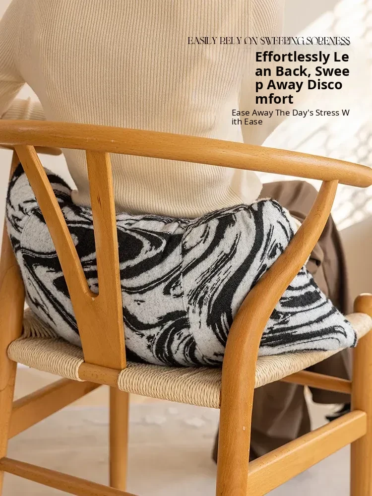 Black and White Lumbar Support Pillow - Ergonomic Office Chair Cushion for Long Sitting, Provides Neck and Back Relief, Perfect for Relaxation and Comfort