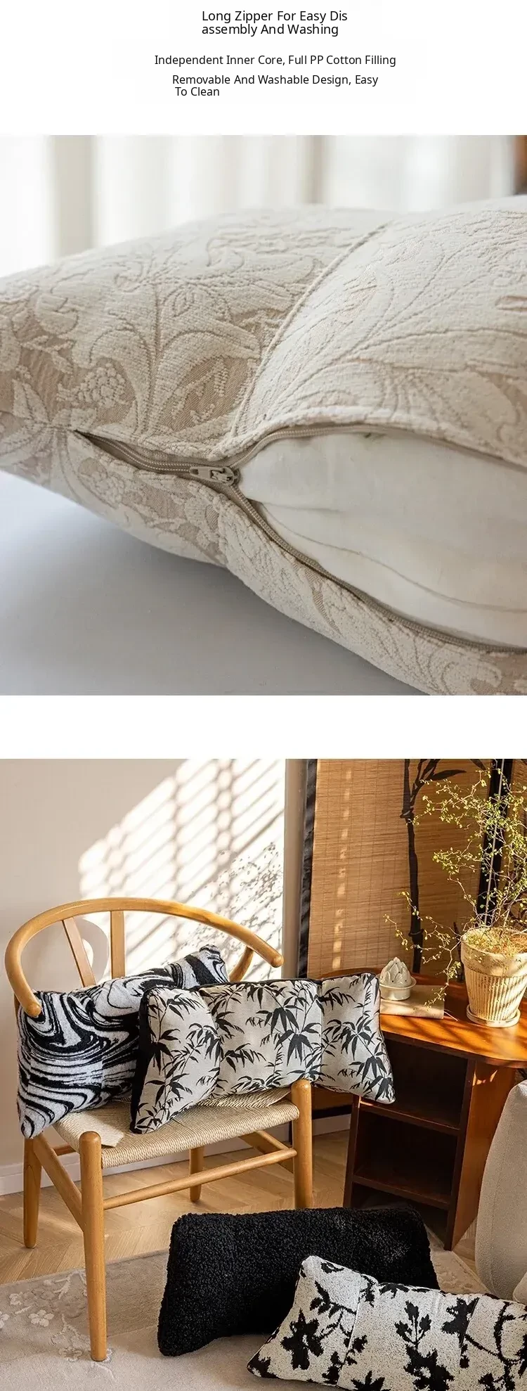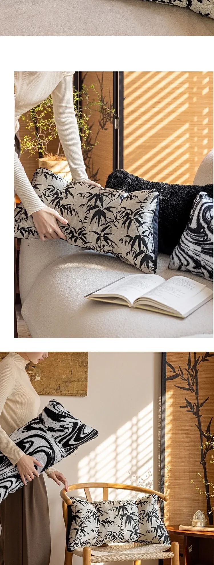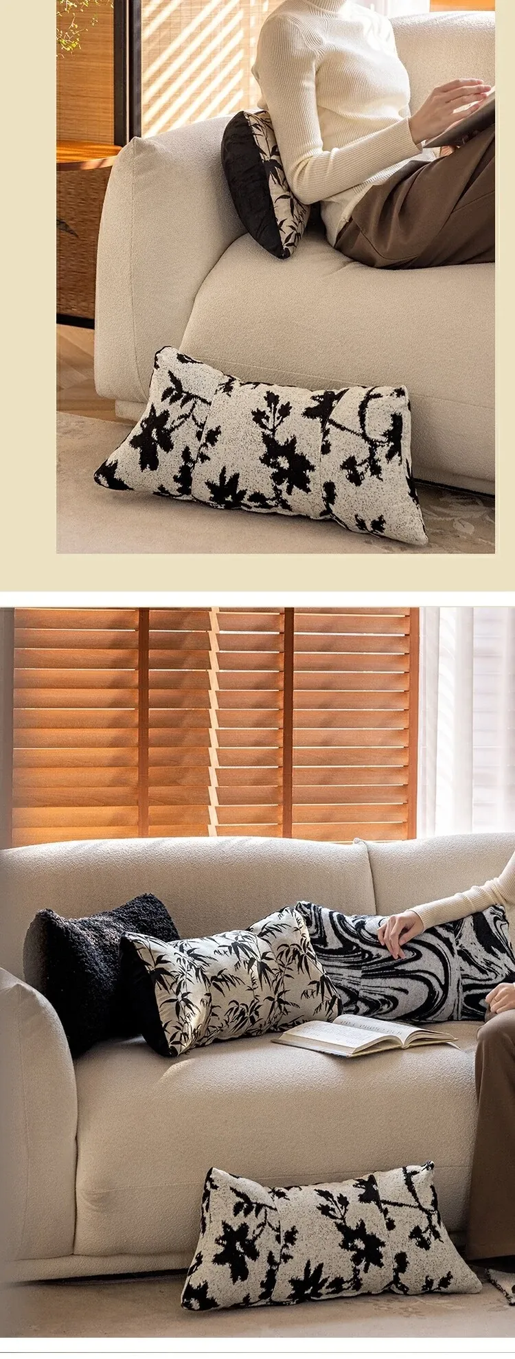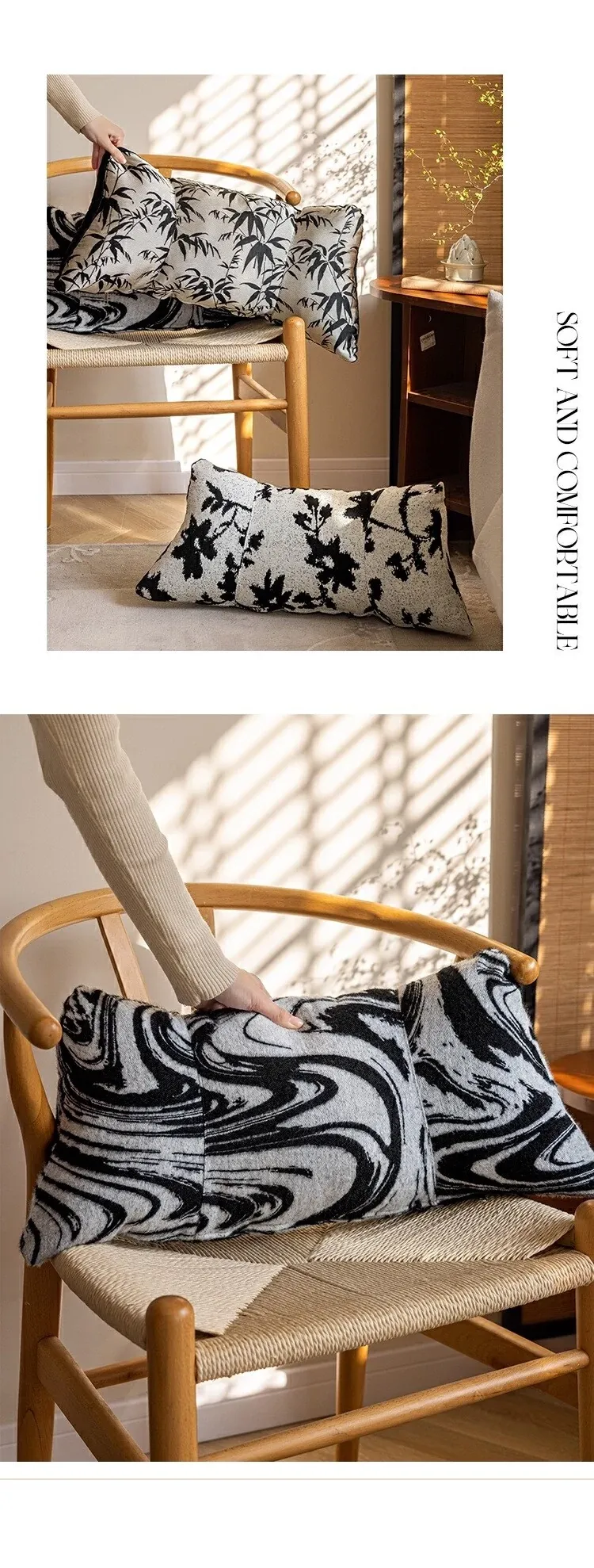 Black and White Lumbar Support Pillow - Ergonomic Office Chair Cushion for Long Sitting, Provides Neck and Back Relief, Perfect for Relaxation and Comfort
