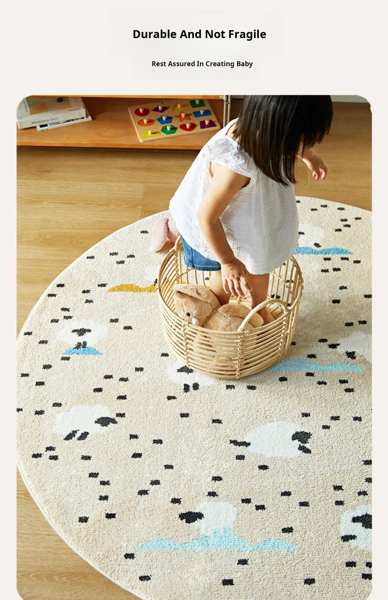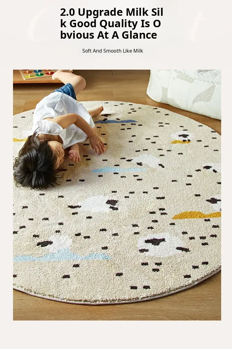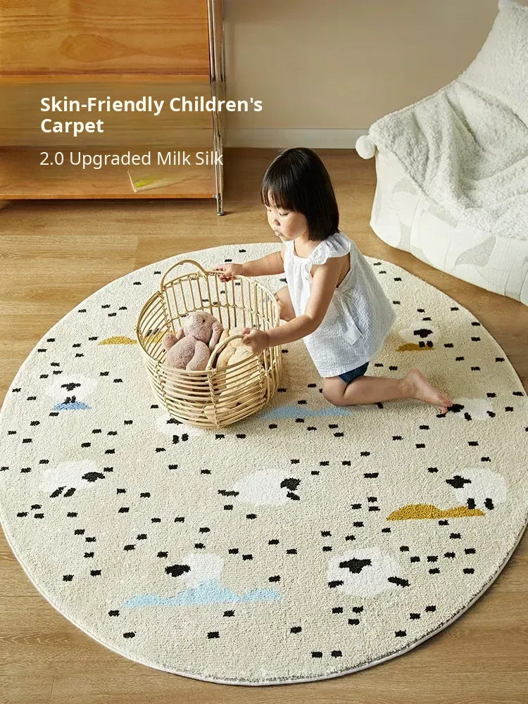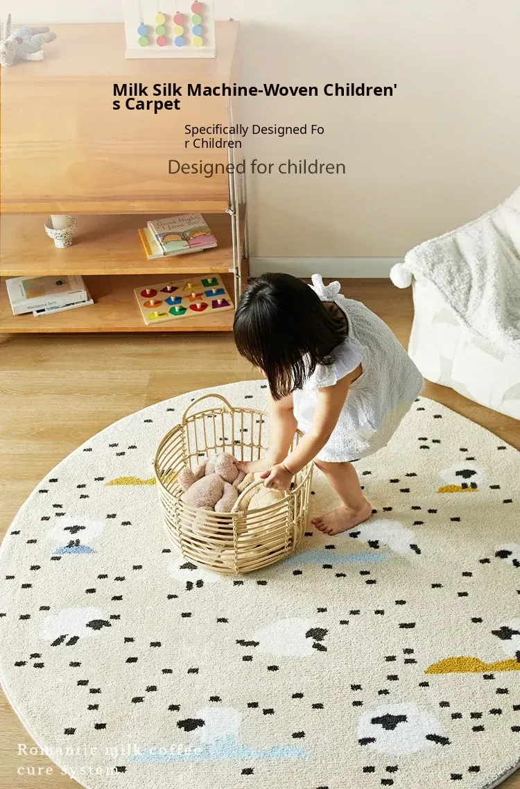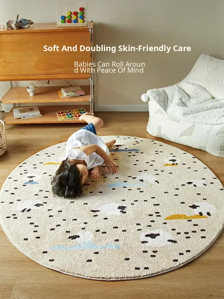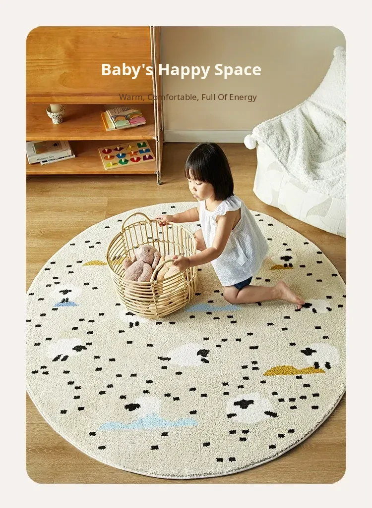 Charming Cartoon Round Area Rug for Kids' Rooms - Stylish, Non-Slip, and Easy to Clean Carpet for Bedrooms and Study Spaces - Elevate Your Space with High-Quality Design!
