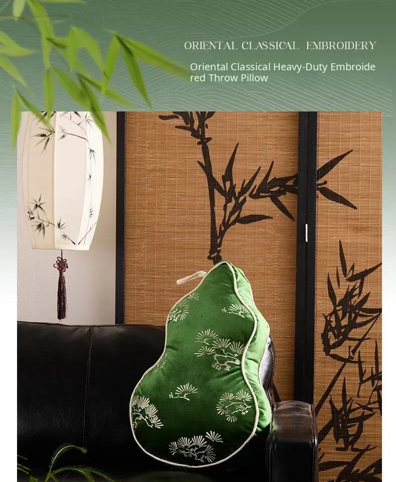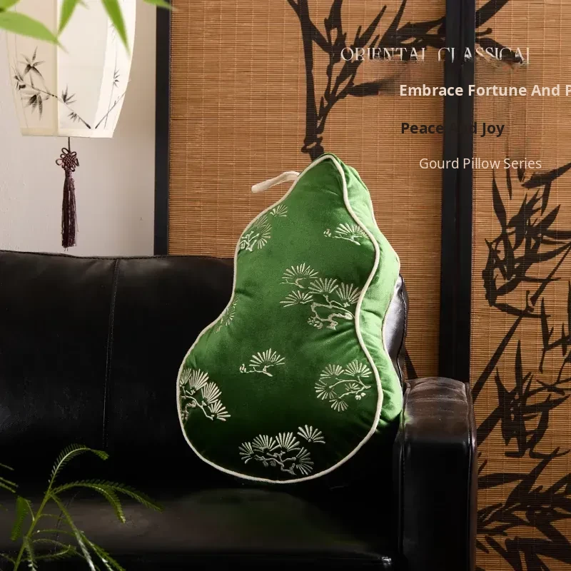 Chinese Style Unique Shaped Gourd Pillow Cover - Fengshui Fortune and Prosperity Waist Support for Sofa and Office Chair, Includes Filling