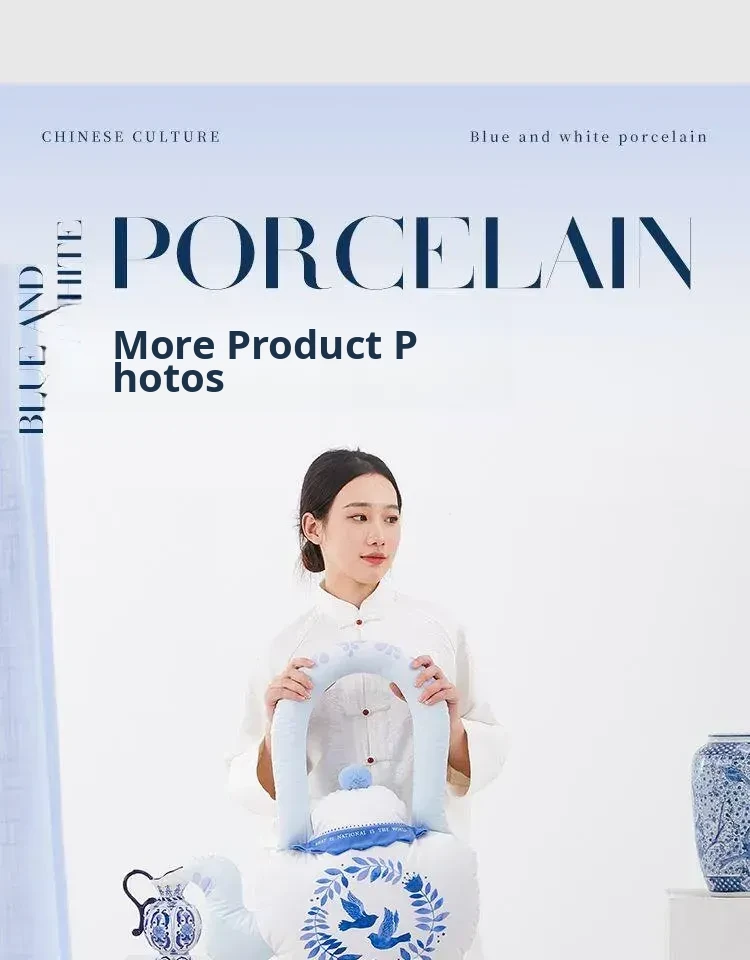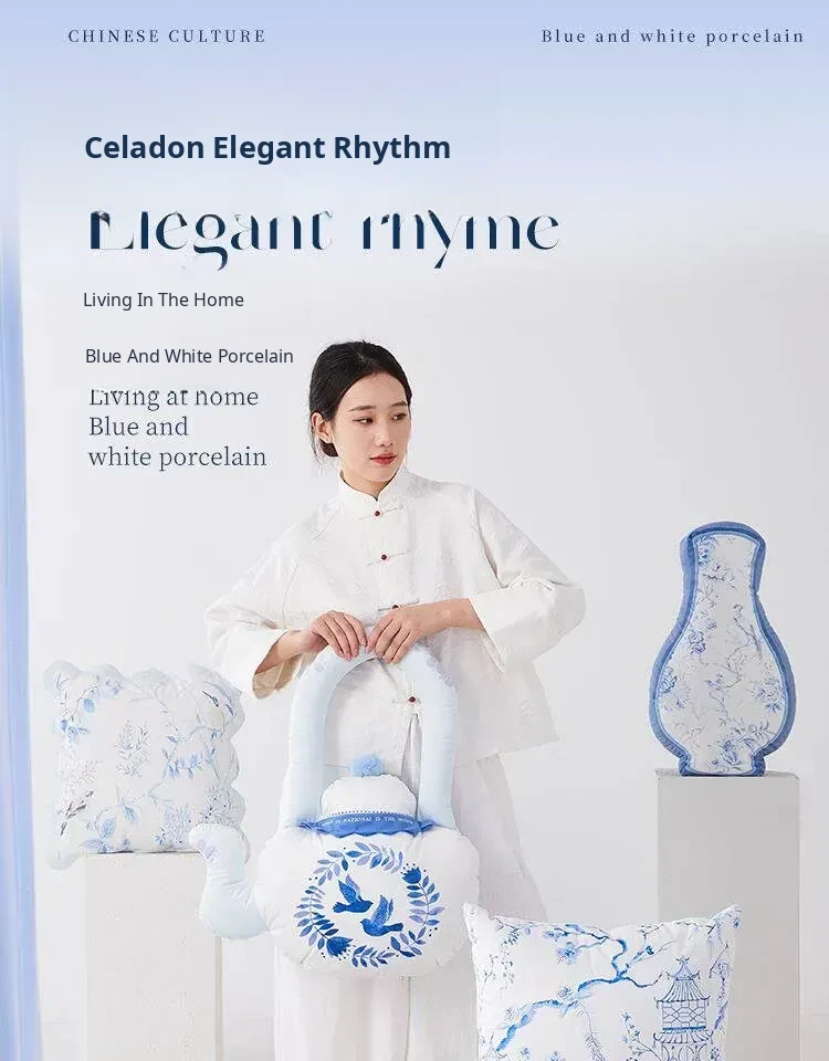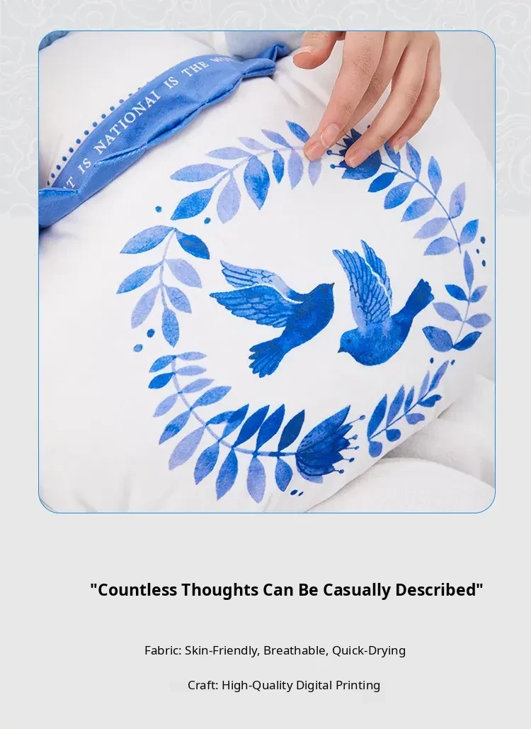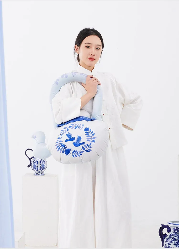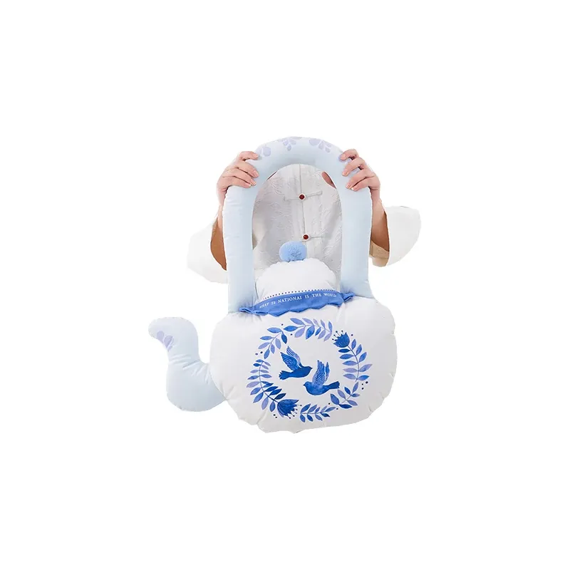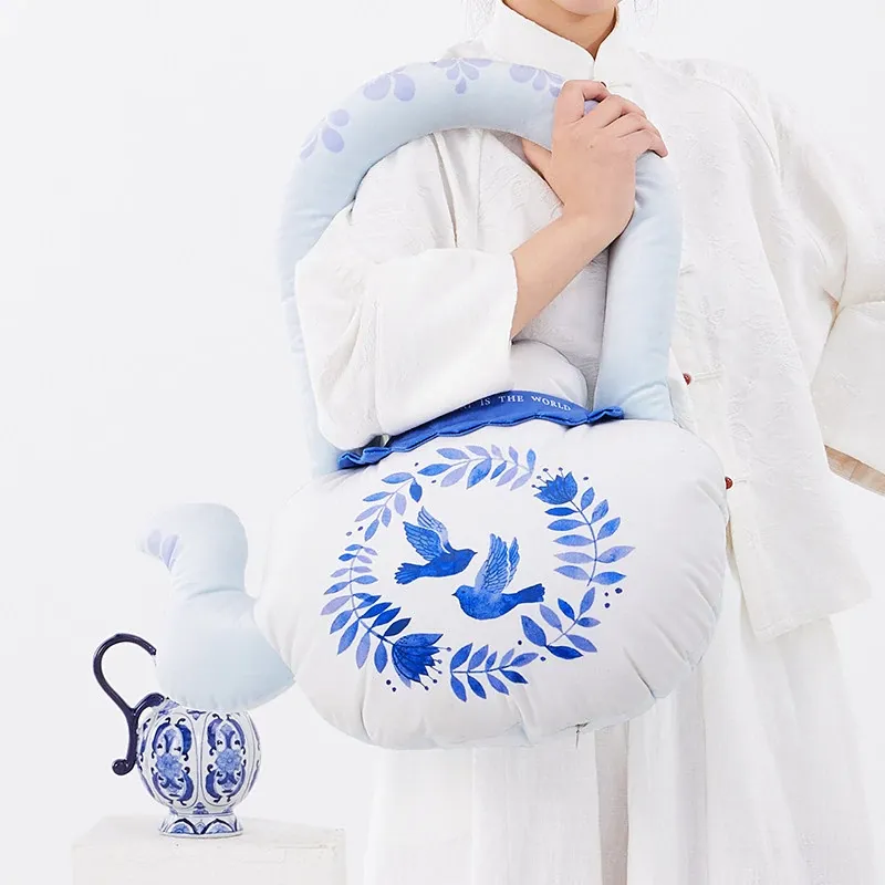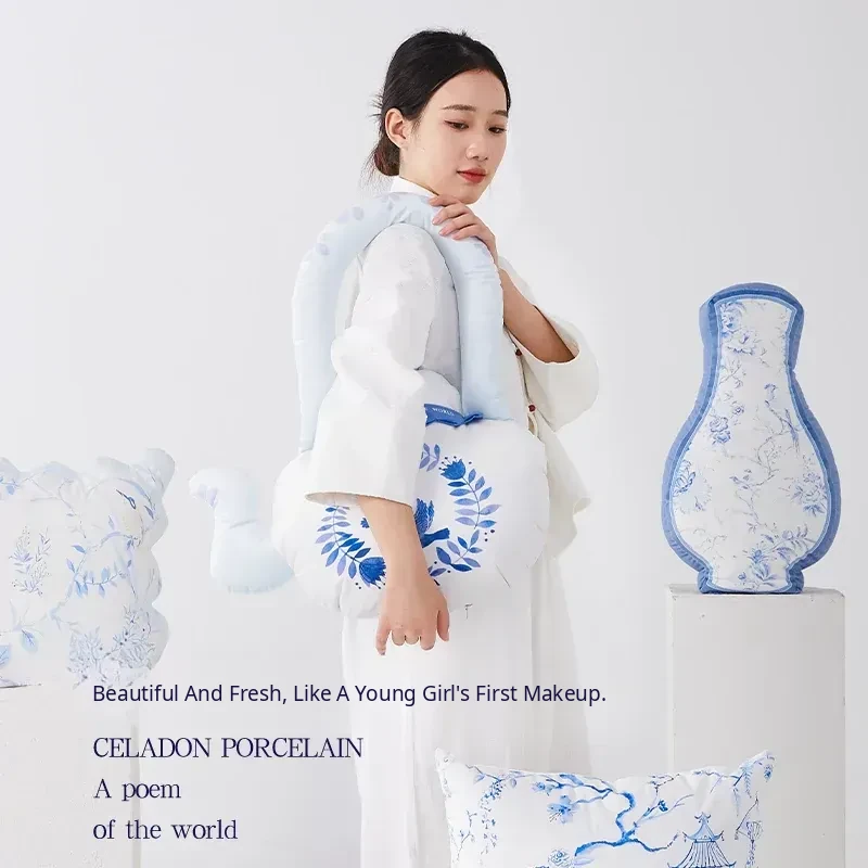 Creative Chinese-Style Palace Teapot Pillow with Unique Sofa Backrest Design - Blue and White Porcelain Waist Cushion Art Pillow Cover
