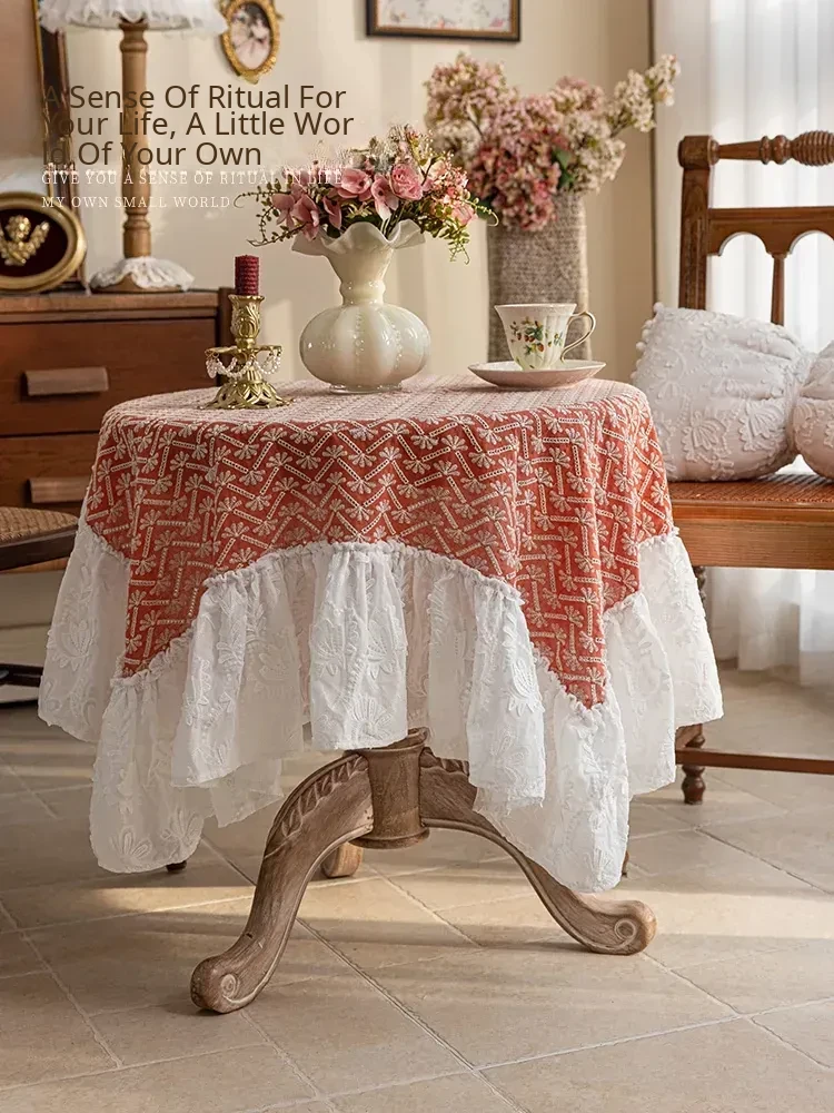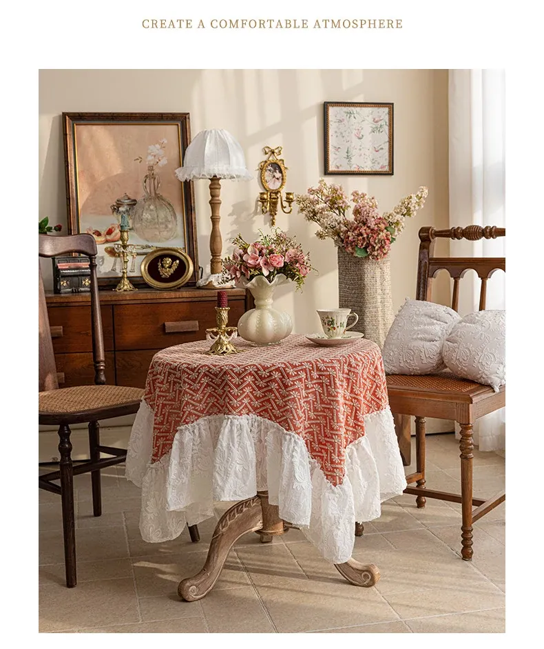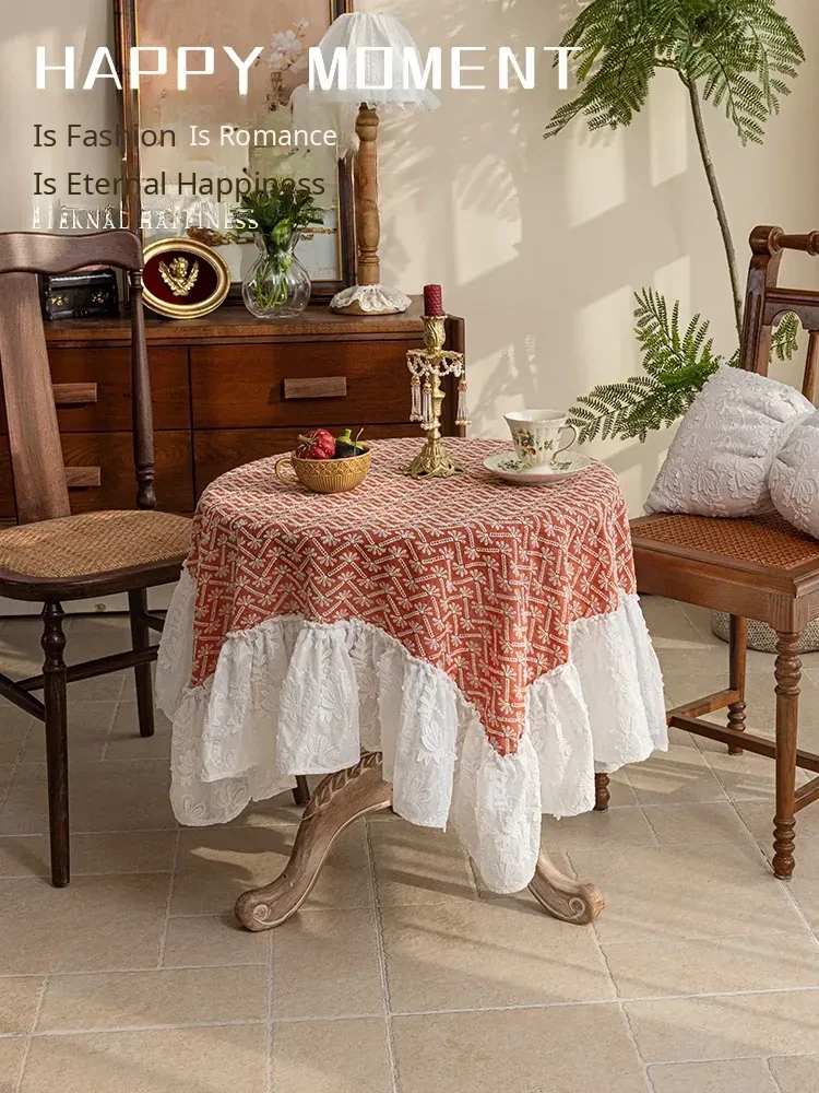 Elegant American Country Lace Round Tablecloth – Chic Ins Style for Coffee Tables and Dining Tables, Perfect for a Touch of Luxury in Your Home Décor.