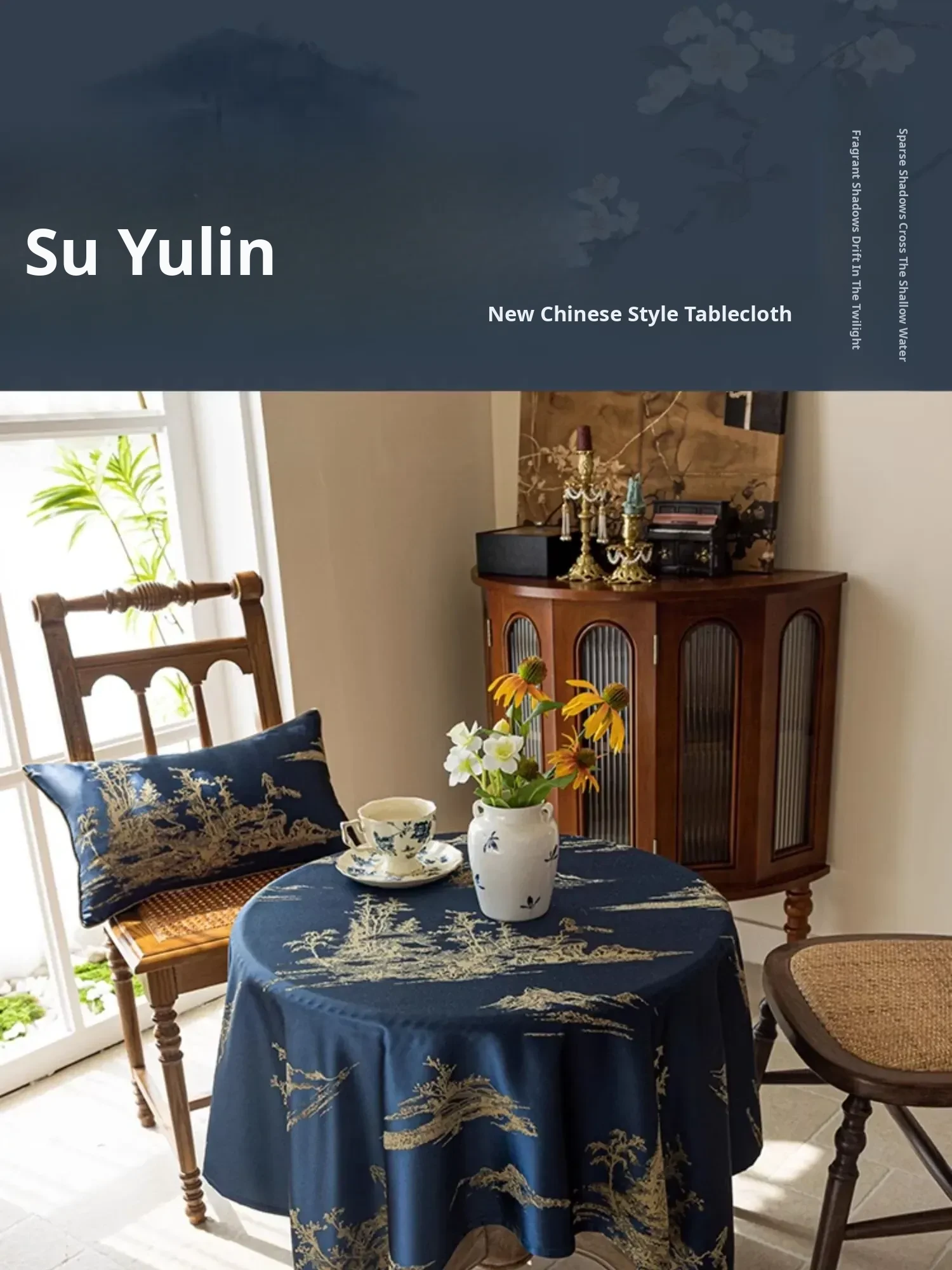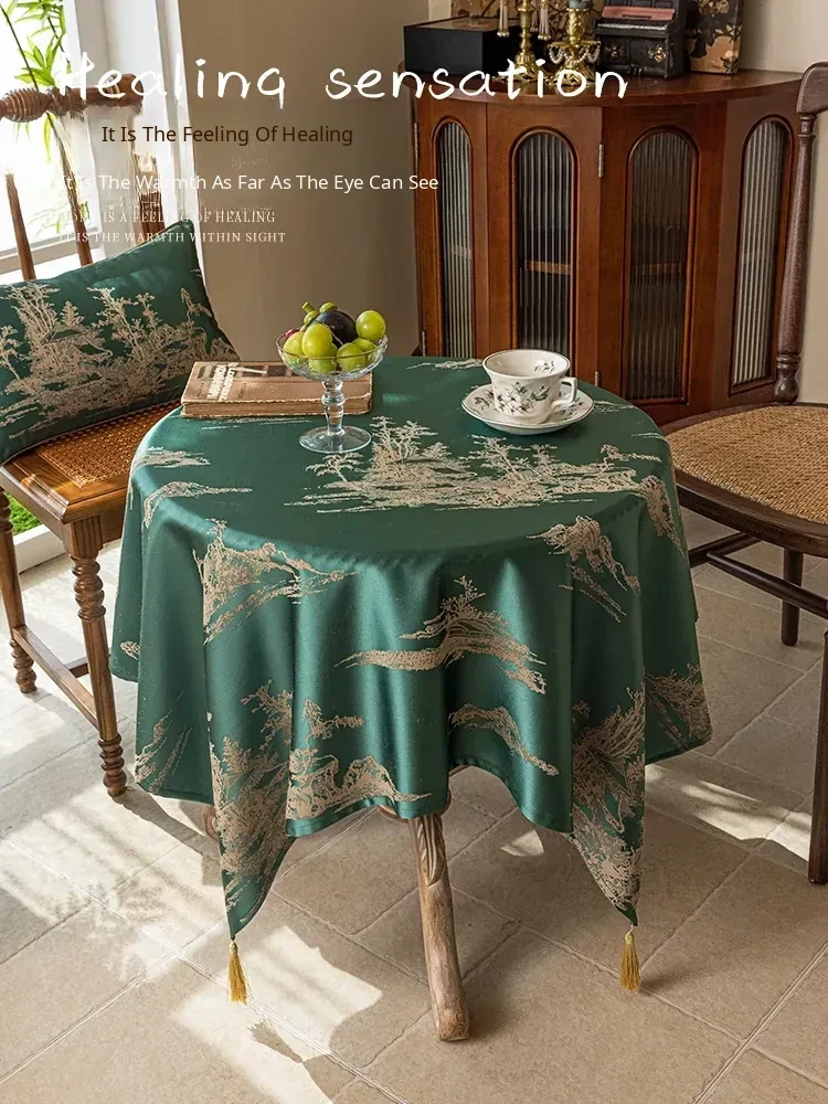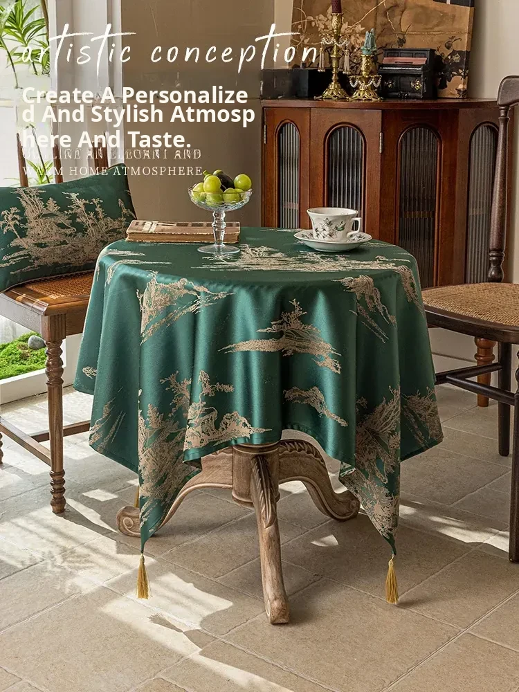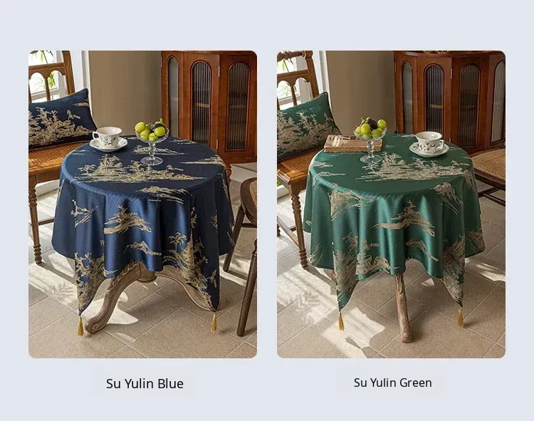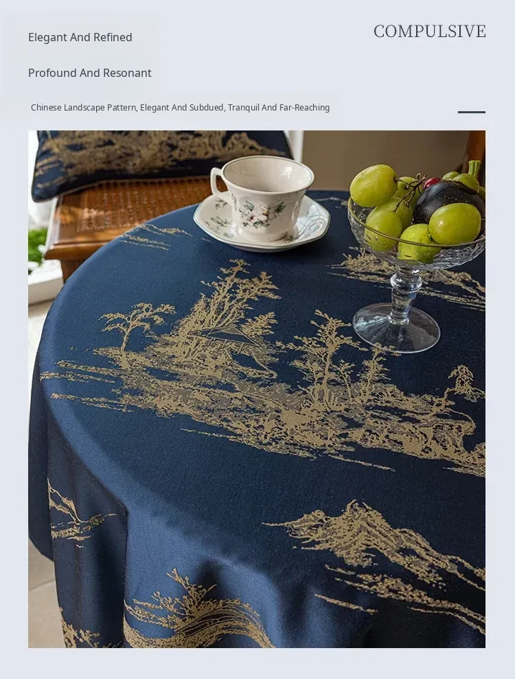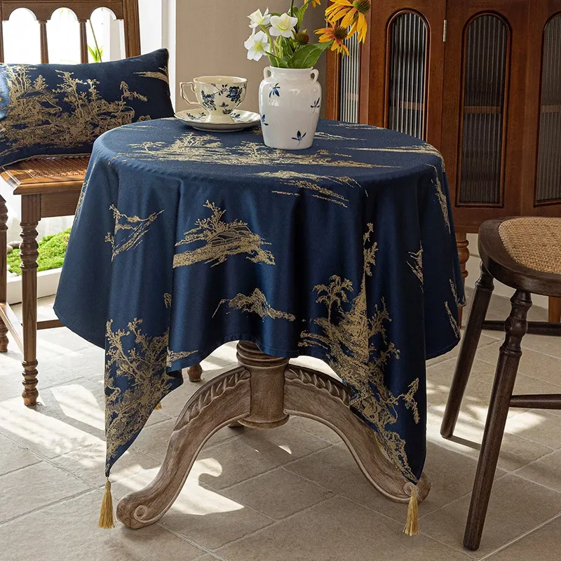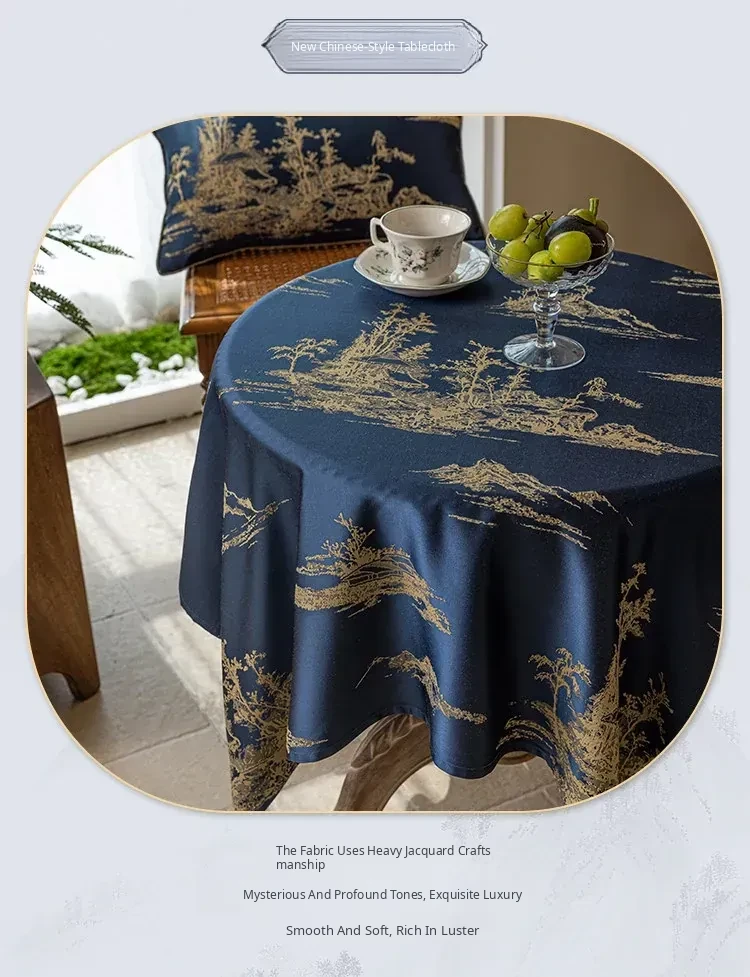 Elegant Blue Tablecloth in Chinese Style - Luxurious and Chic for High-End Dining and Living Rooms, Perfect for Tea Tables and Traditional Decor