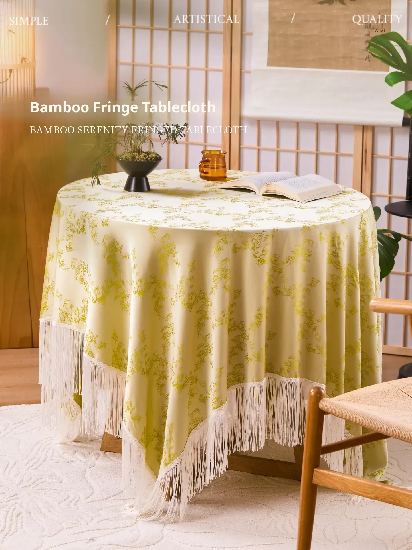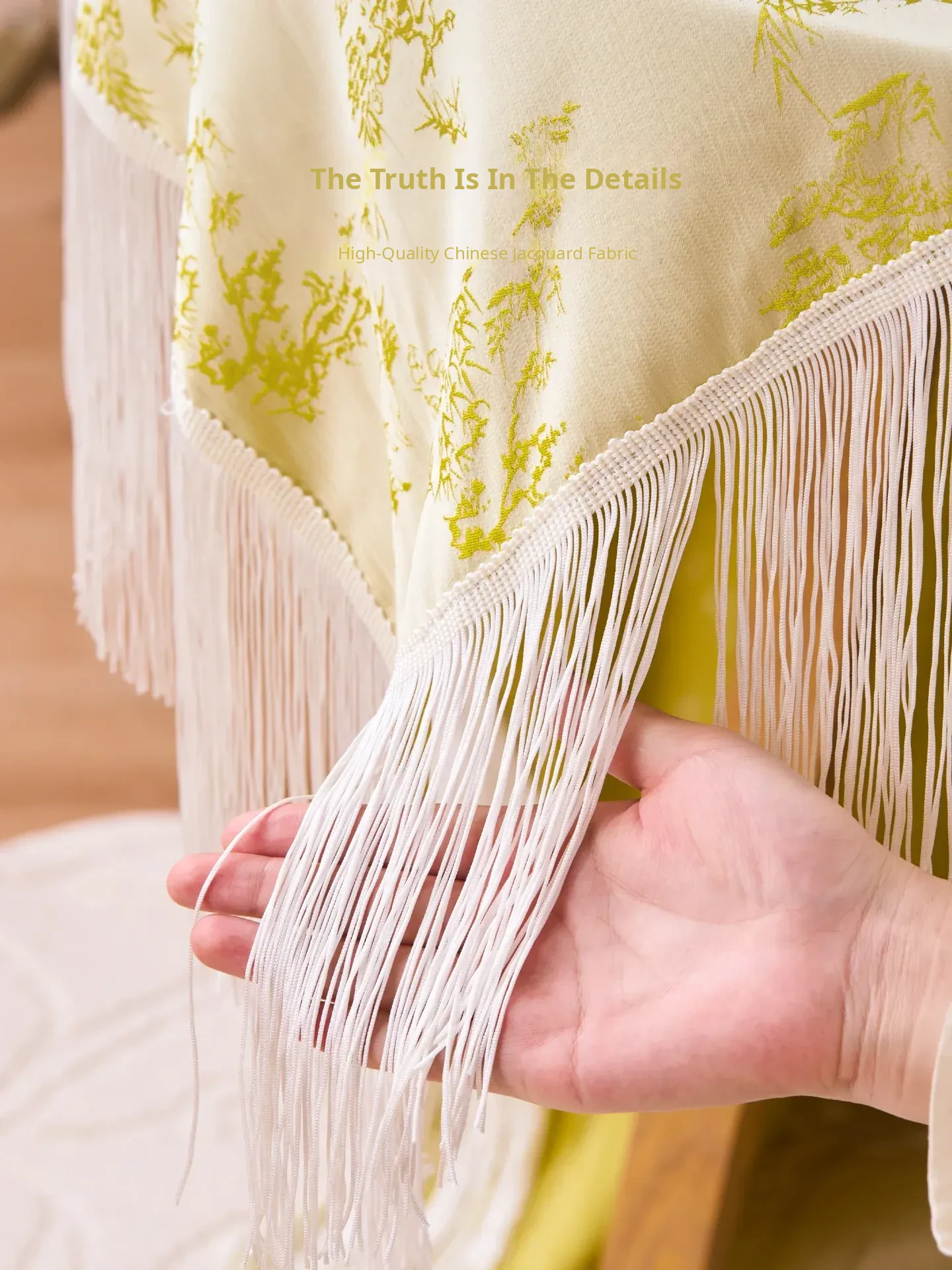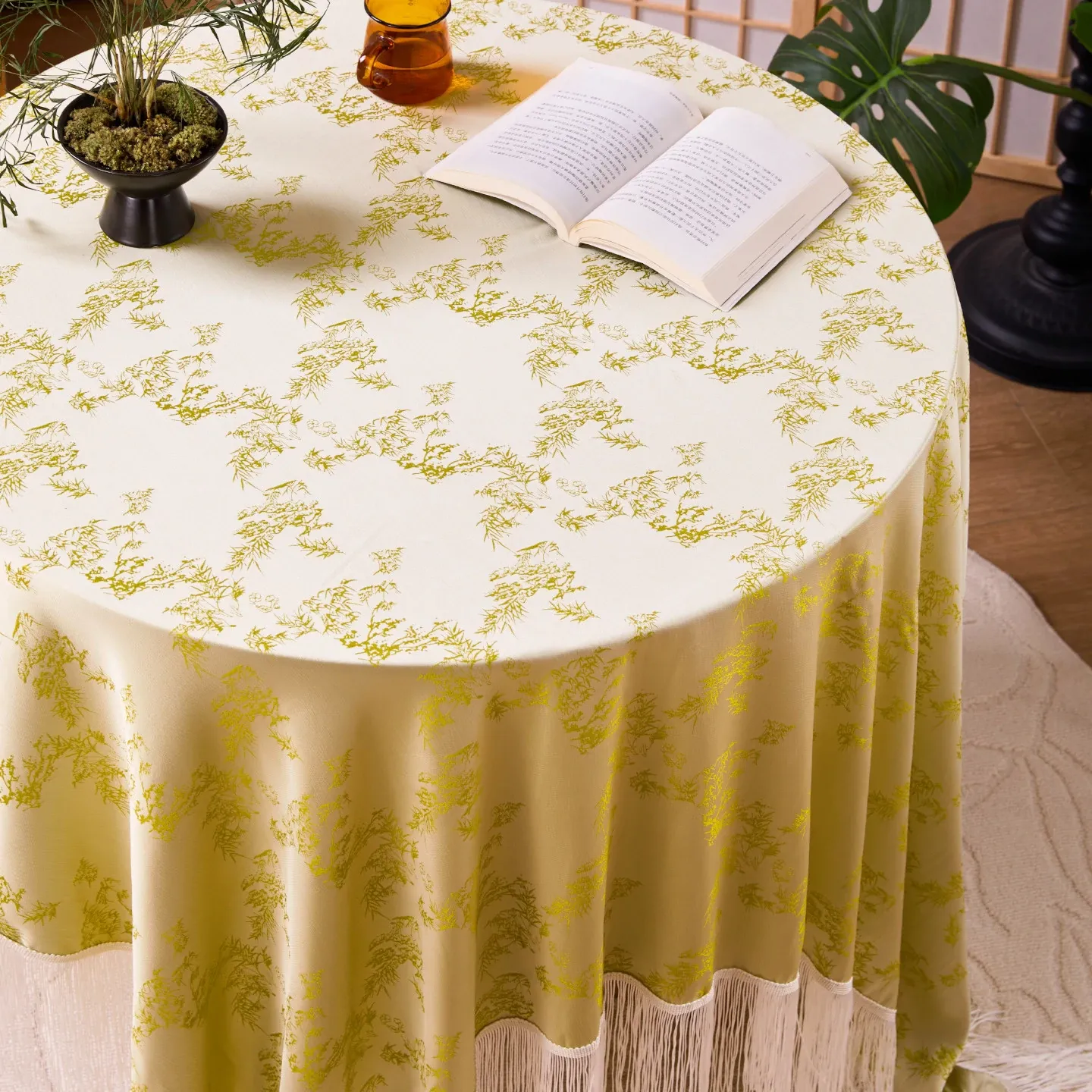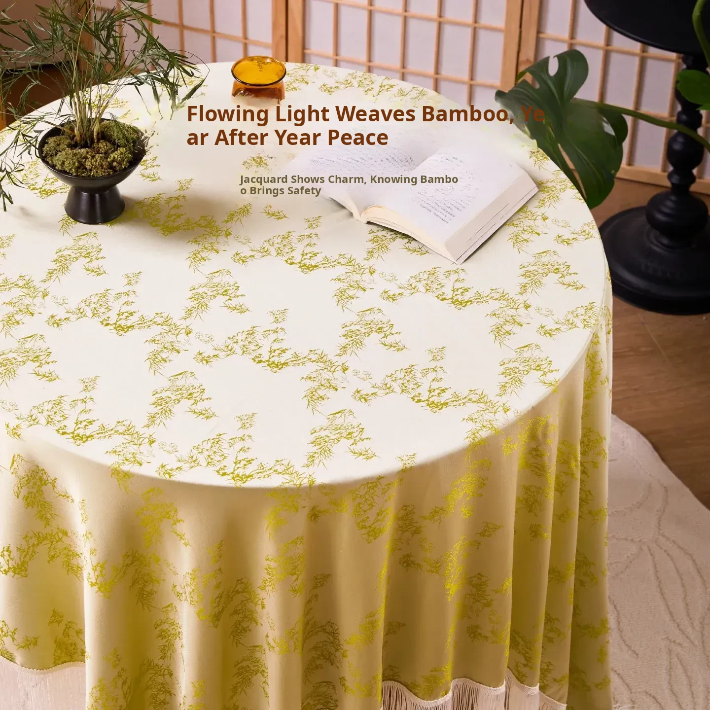 Elegant Chinese Style Round Tablecloth - Luxurious Waterproof and Oil-Resistant Dining Table Cover with Tassels, Perfect for Creating a Cozy Atmosphere