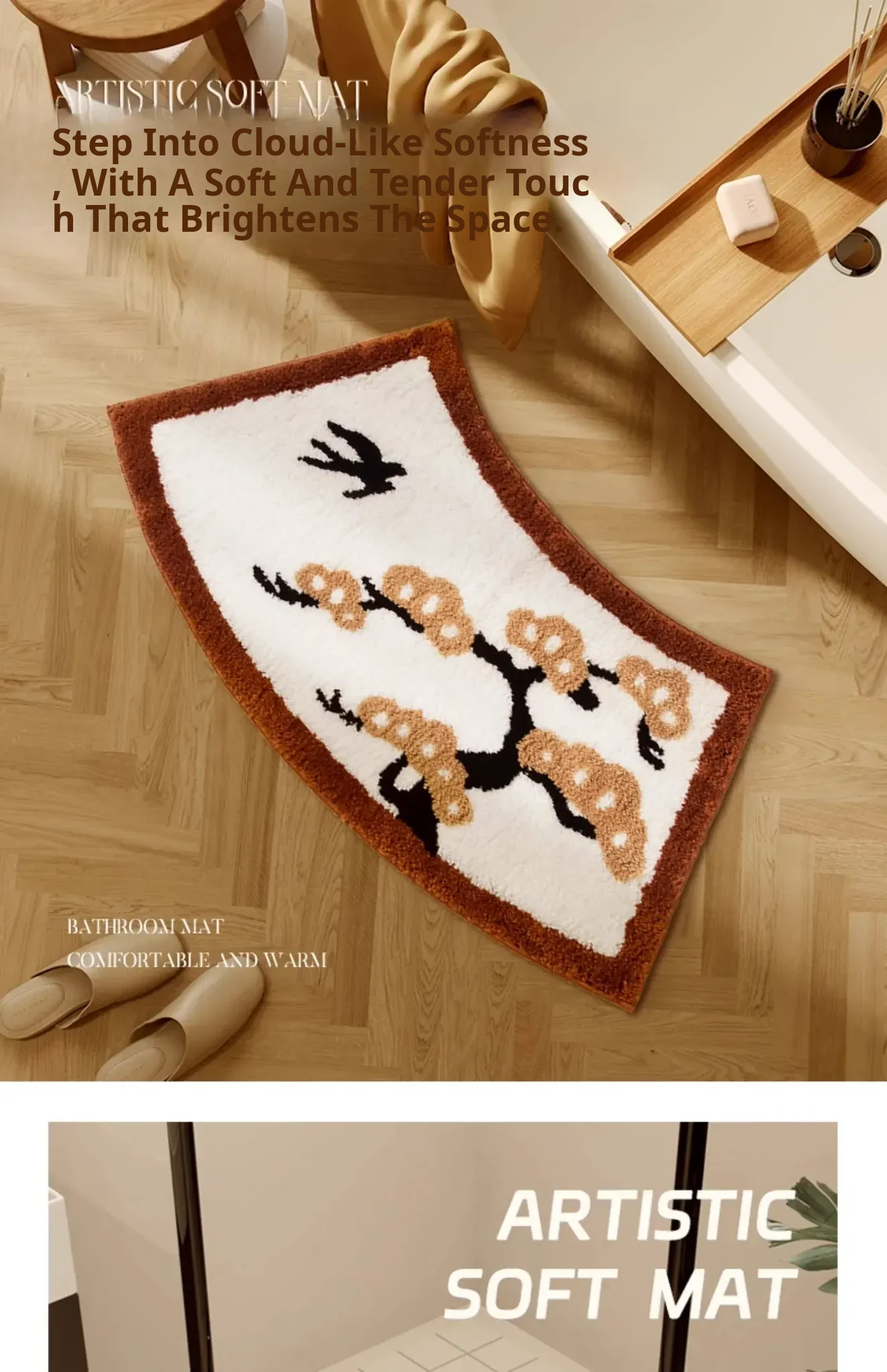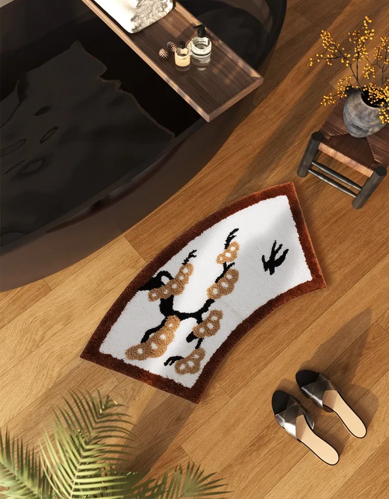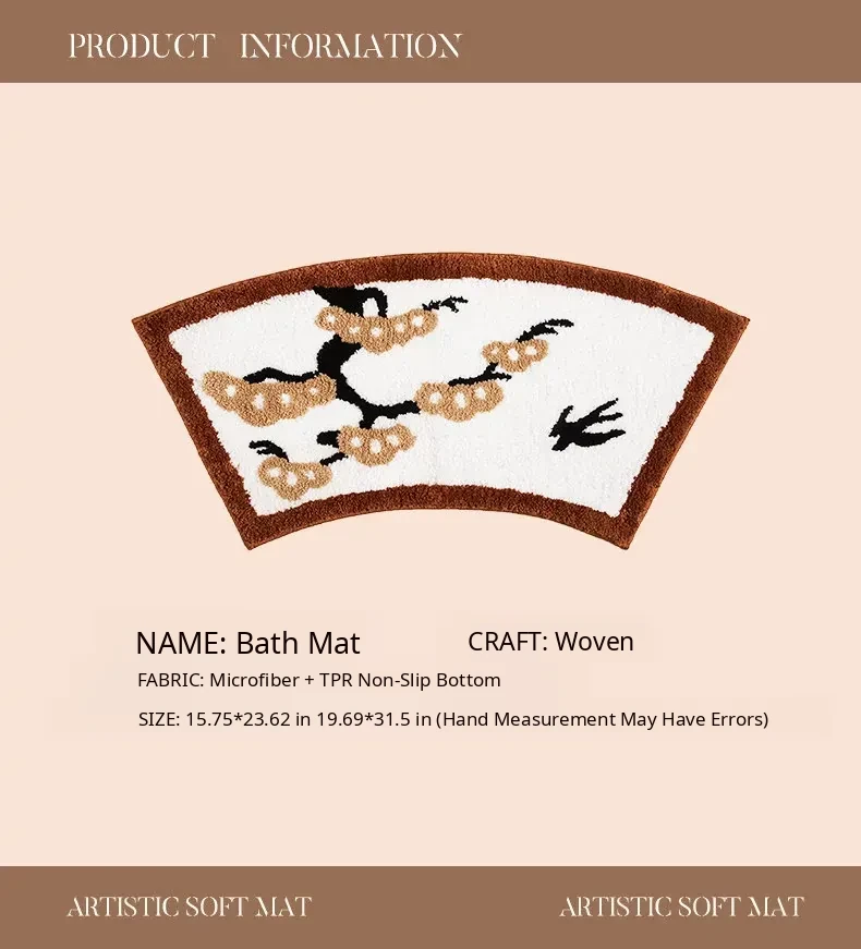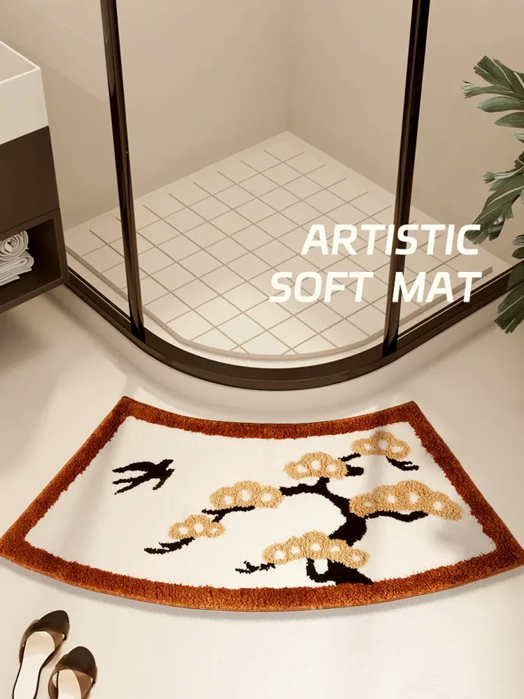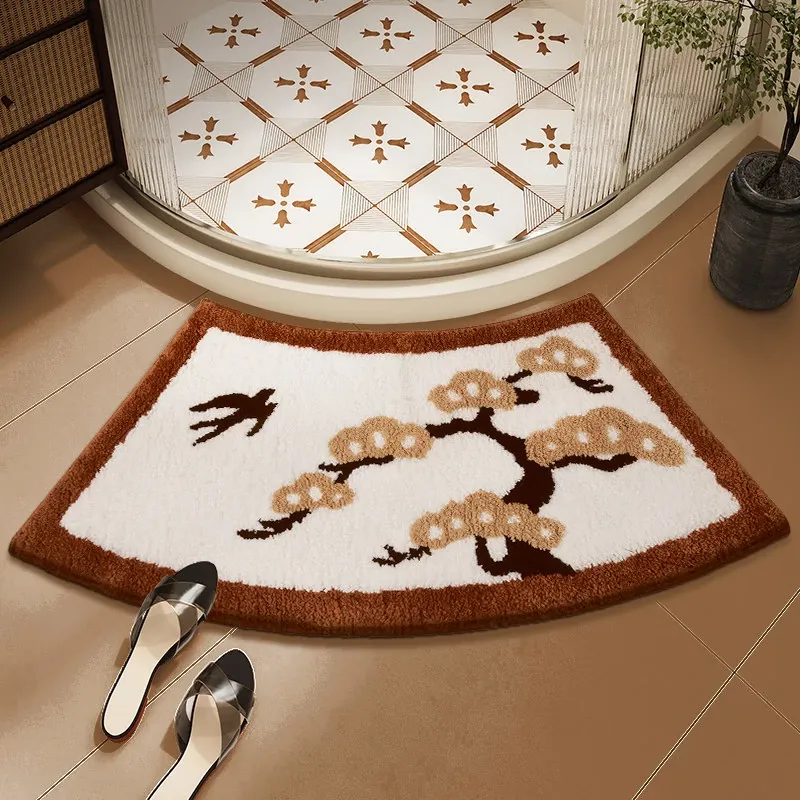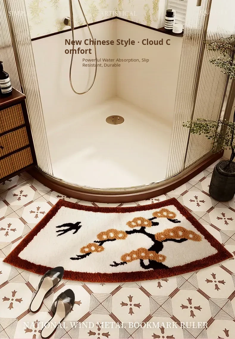 Elegant Chinese-Style Bathroom Mat – Soft, Arc-Shaped Absorbent Rug for Bathtubs – Luxurious Fan-Shaped Design for a Cozy and Stylish Touch in Your Bathroom