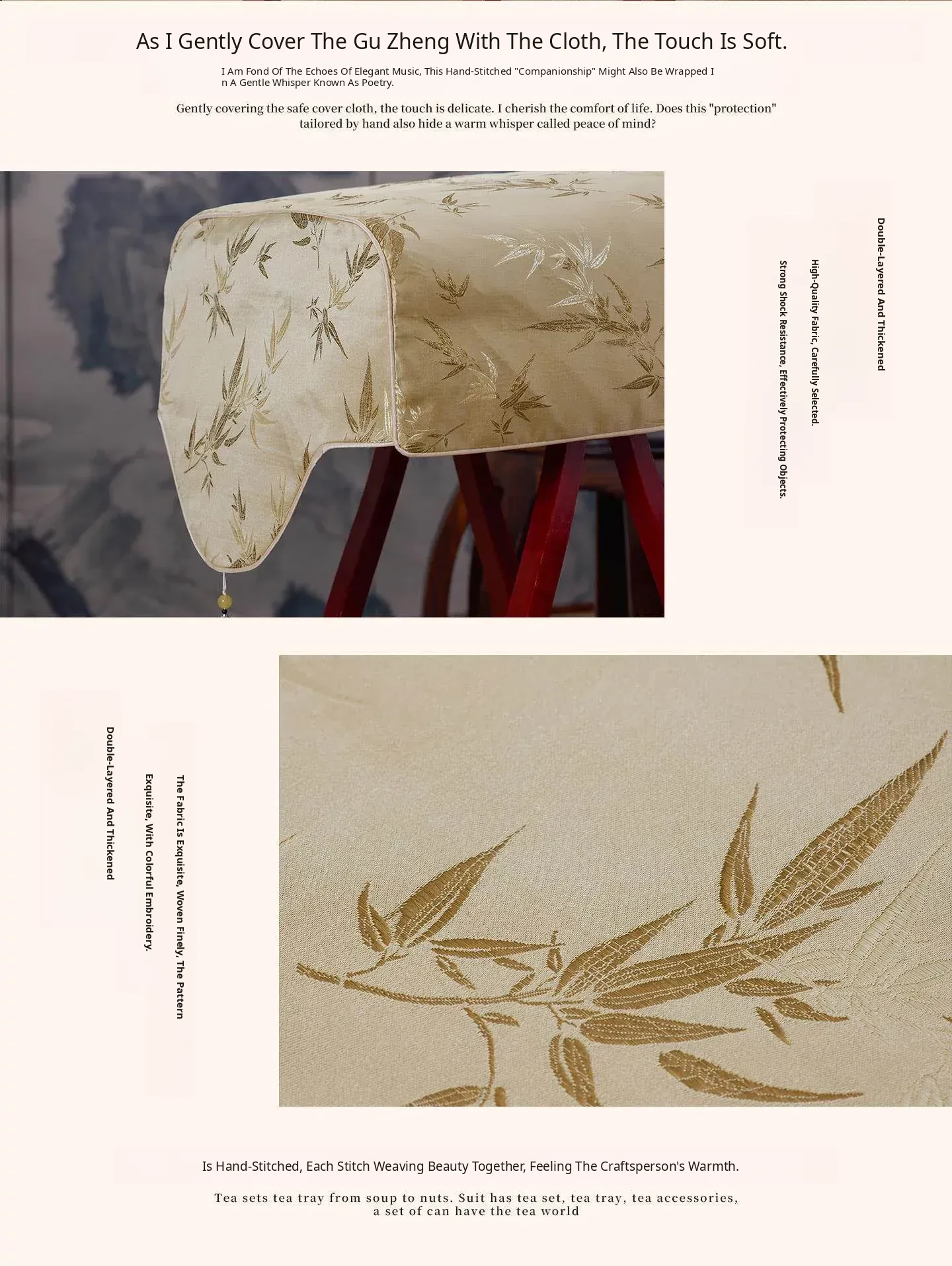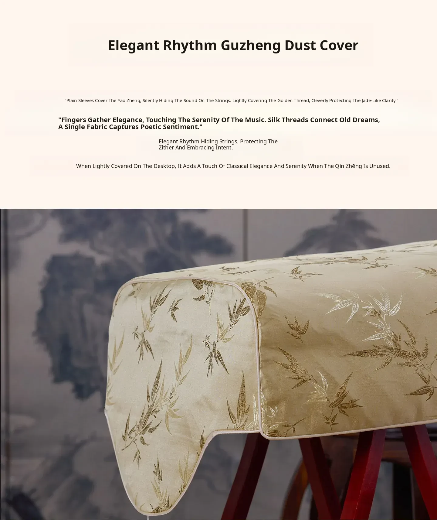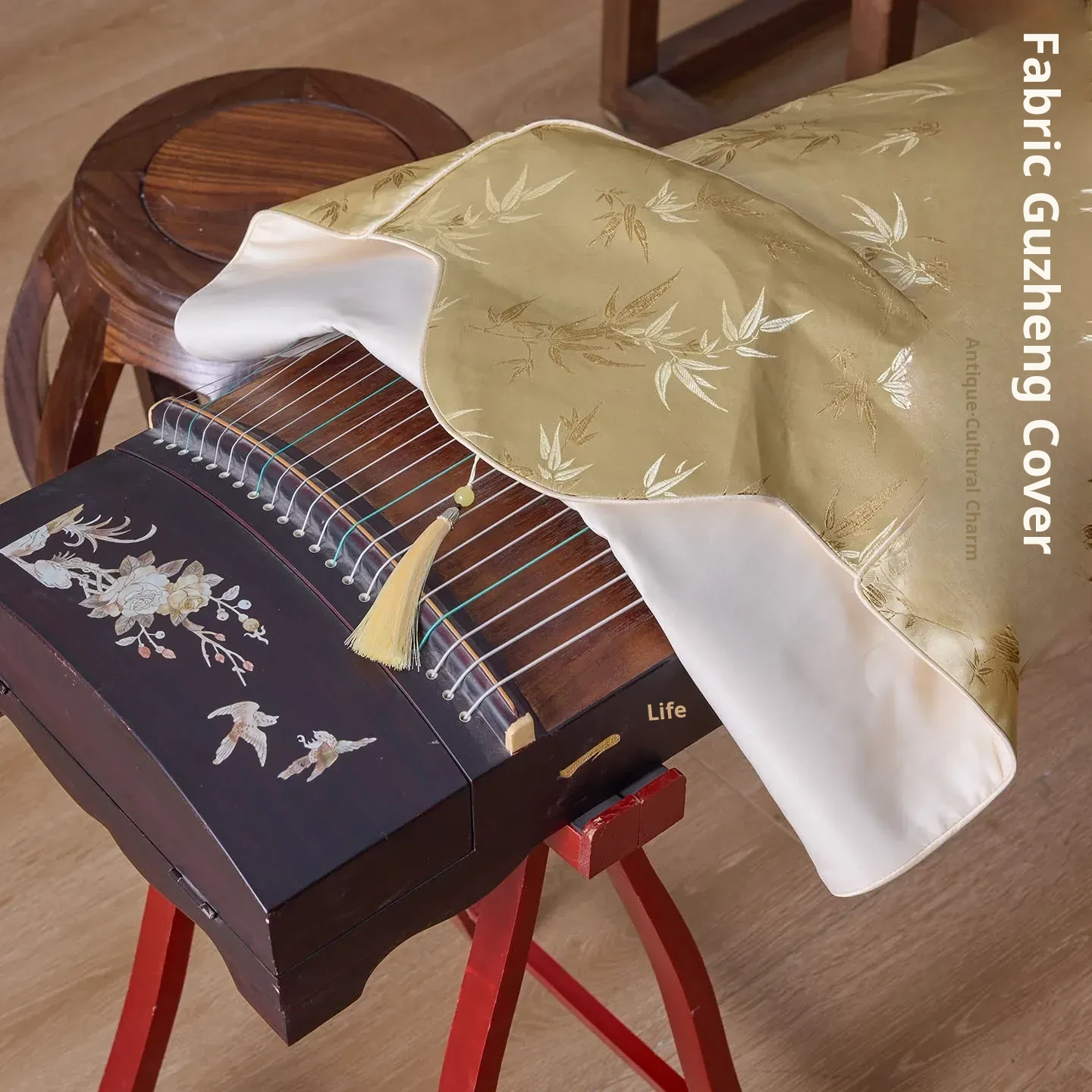Elegant Chinese-Style Golden Guzheng Dust Cover - Universal Oversized Protection Cloth for Guqin and Small Guzheng, Perfect for Preserving Your Instruments with a Touch of Traditional Charm.