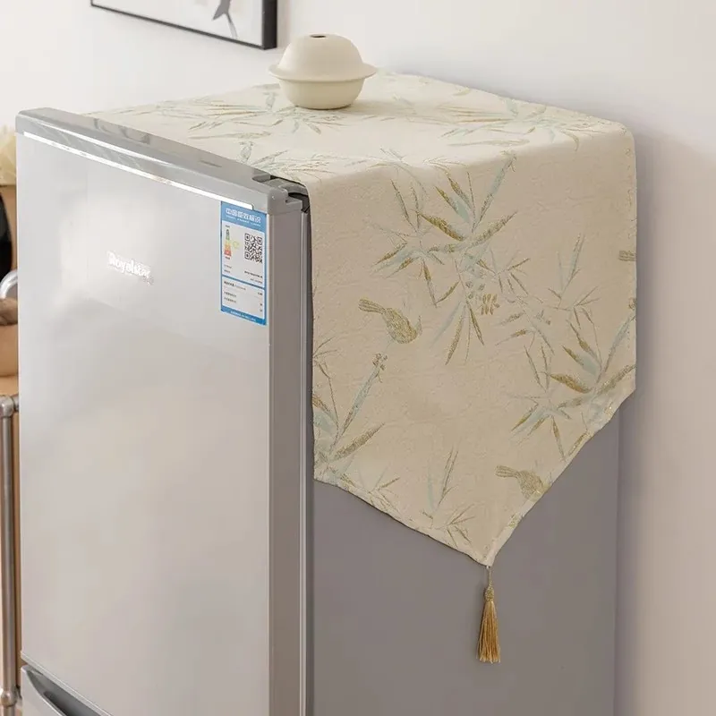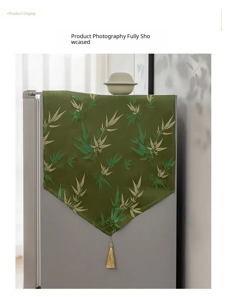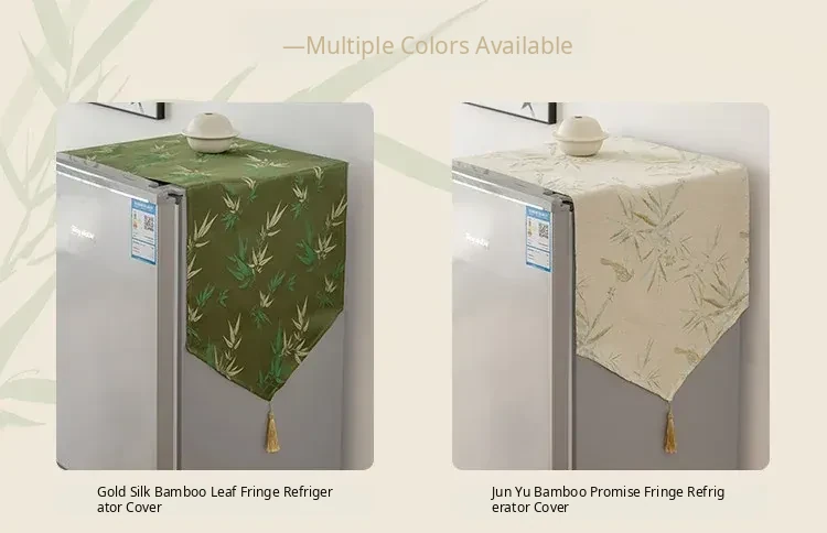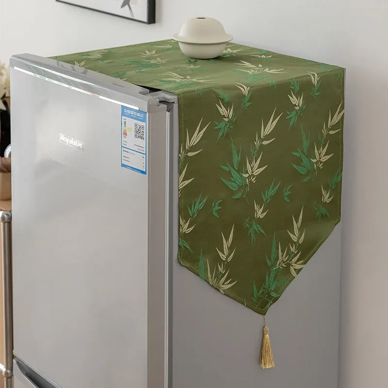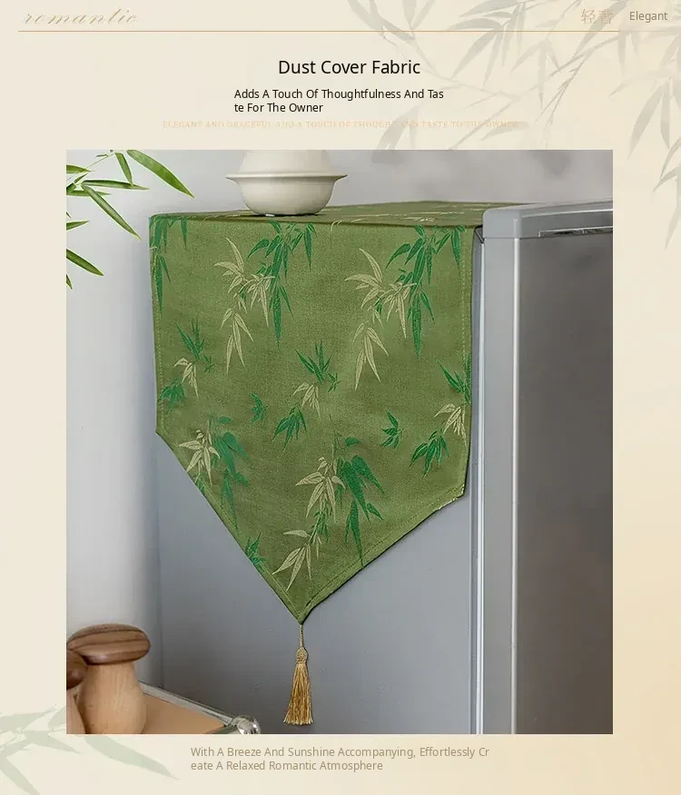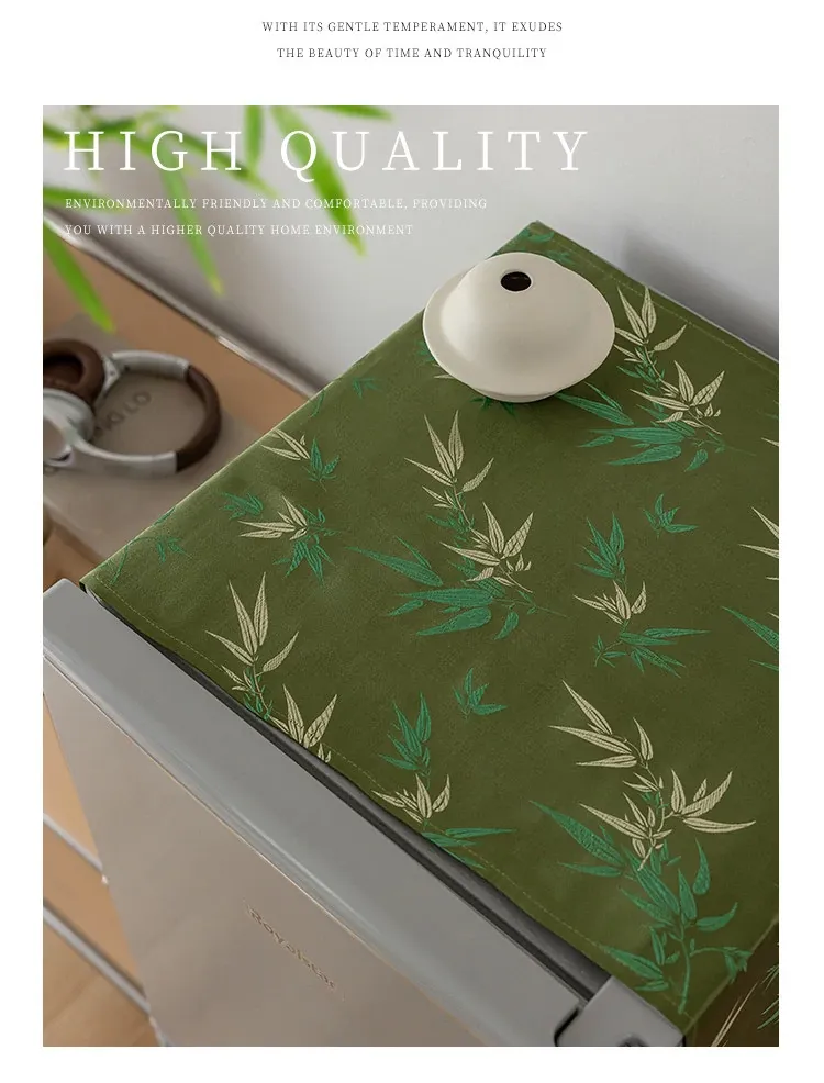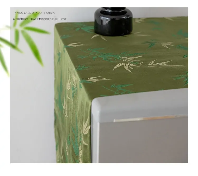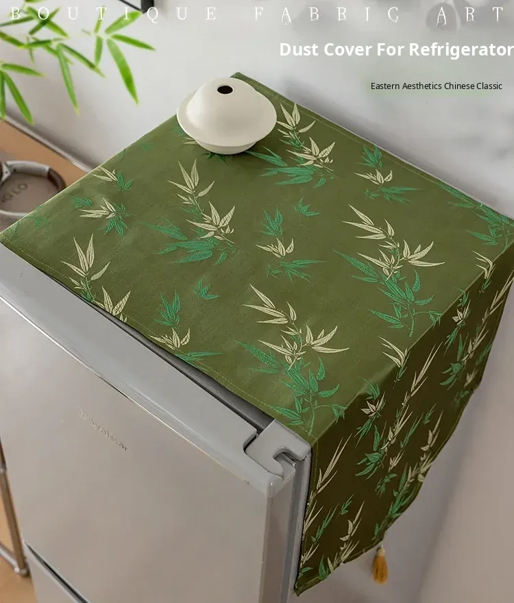 Elegant Chinese-Style Refrigerator Dust Cover - Green Bamboo Design for Cross-Door Freezers, Rectangle Shape, Perfect for Enhancing Your Home Decor.