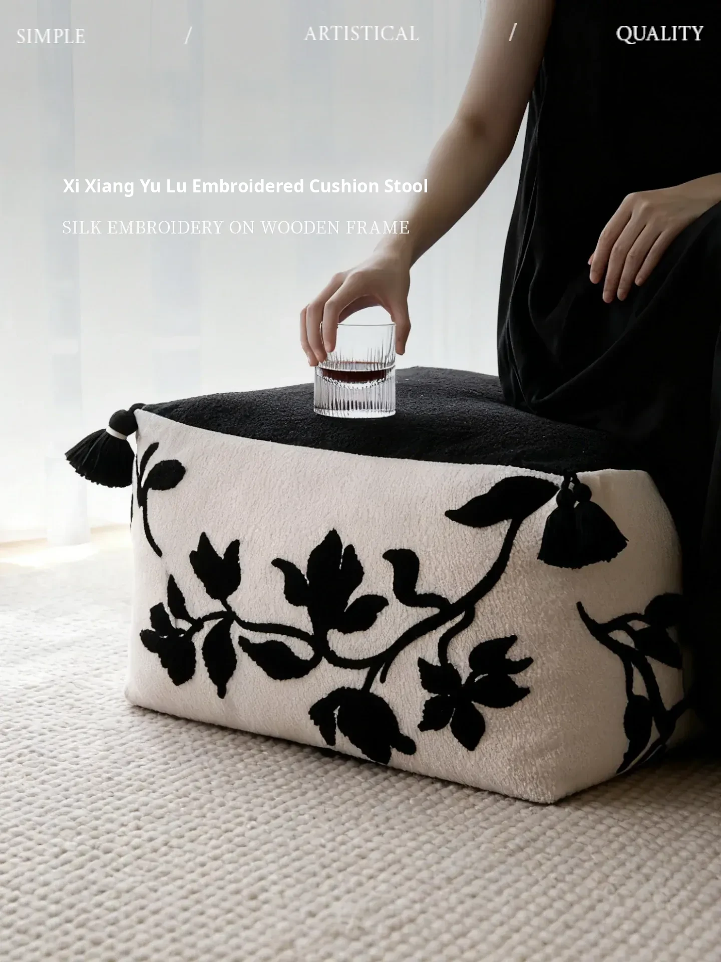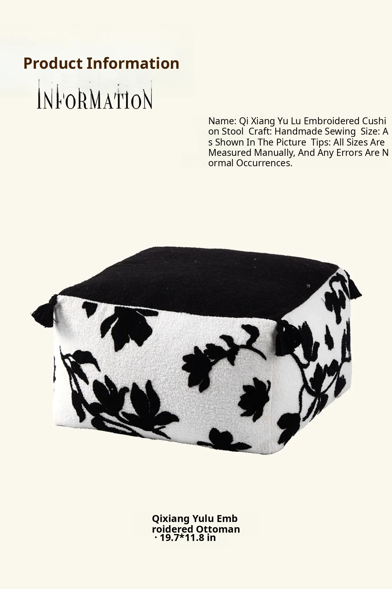 Qixiang Jade Dew Embroidered Ottoman 19.69in*11.81in
