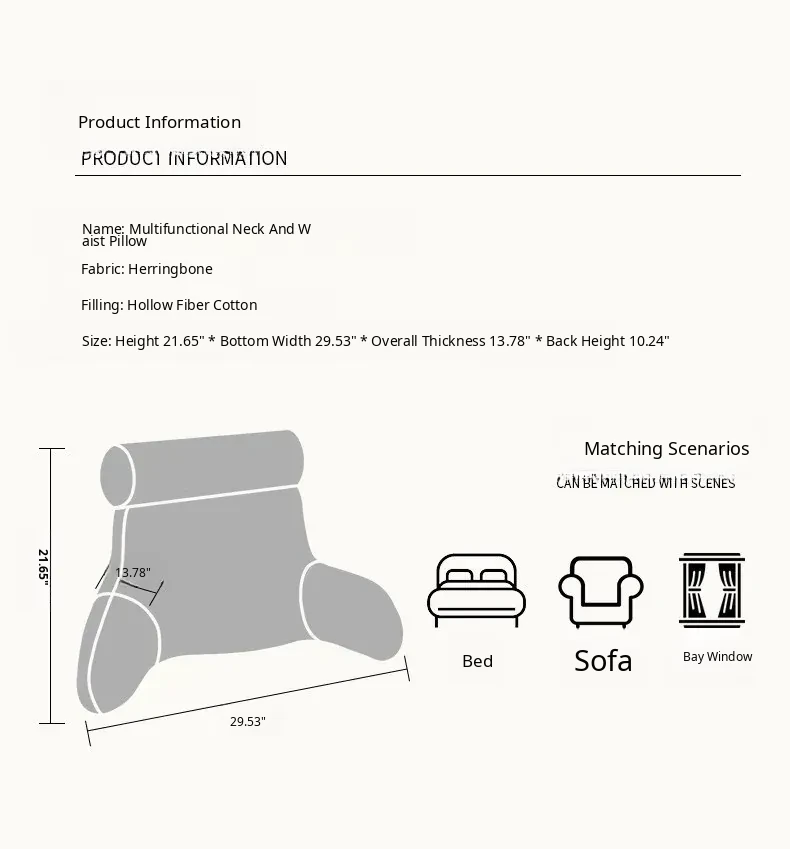 Luxury American-Style Lumbar Pillow – Elegant Office Back Support Cushion with Rustic Design for Bedroom – Oversized Headboard Cushion for Ultimate Comfort