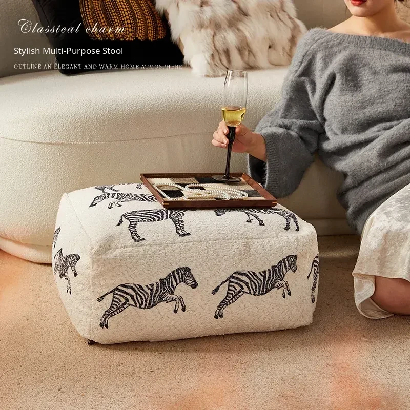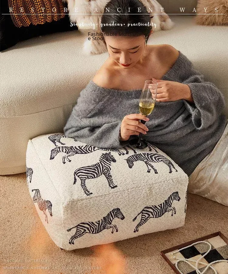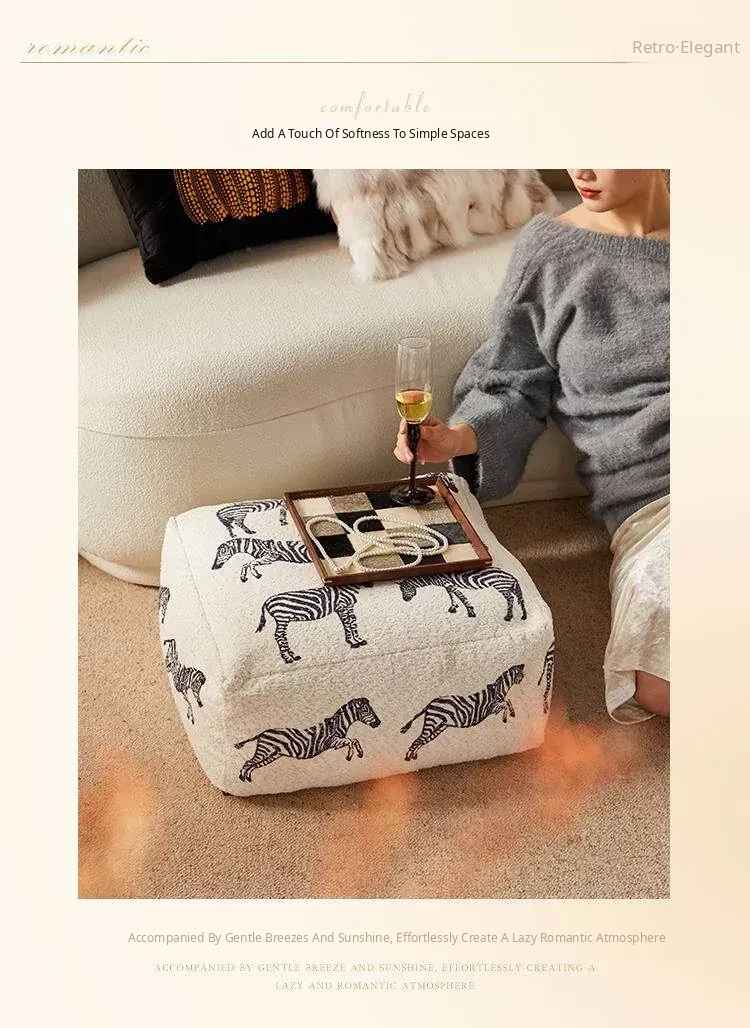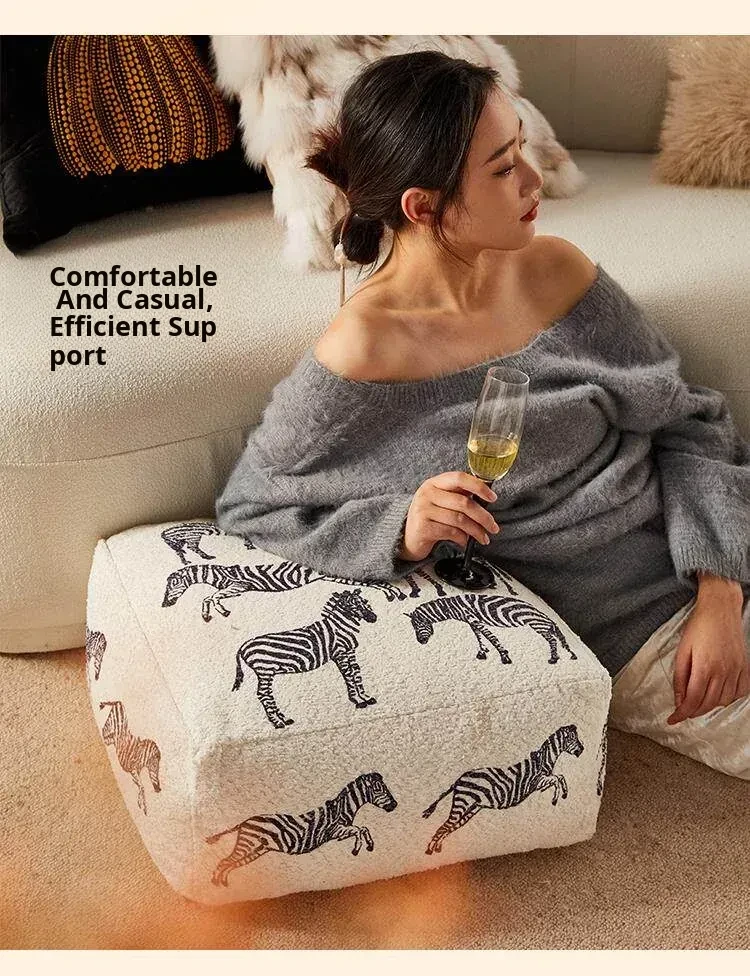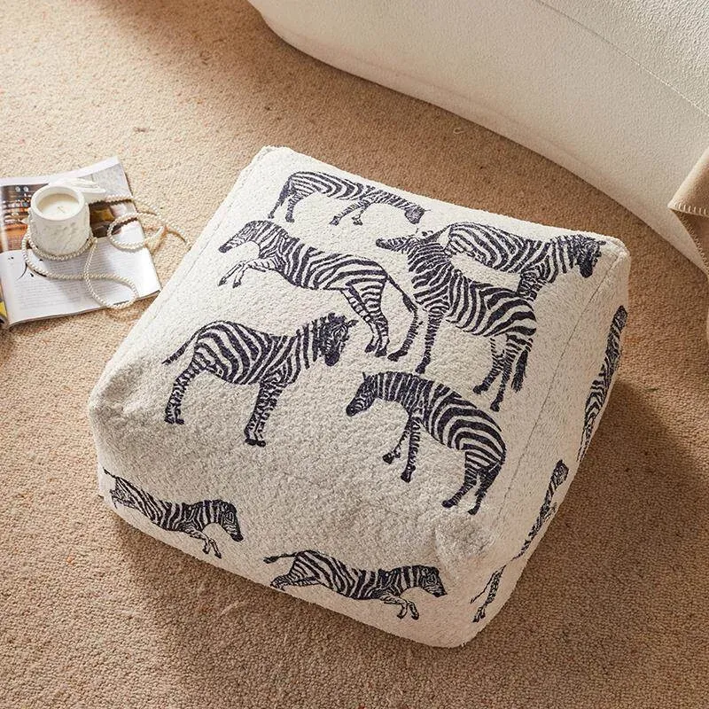 Modern Chinese Style Zebra Print Pouf - Cozy Sofa Stool for Living Room, Ideal for Relaxation and Meditation, White Window Seat Cushion, Perfect for Home Décor.