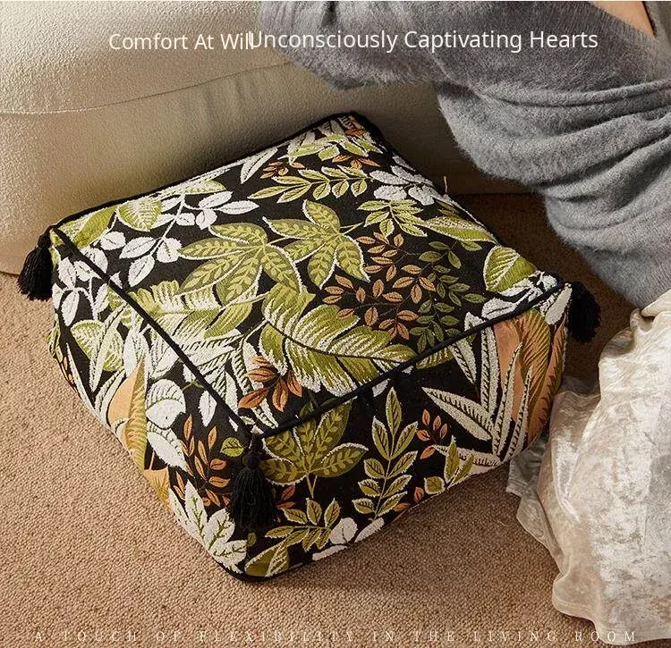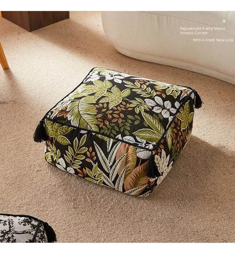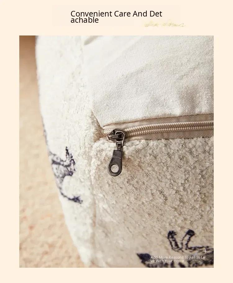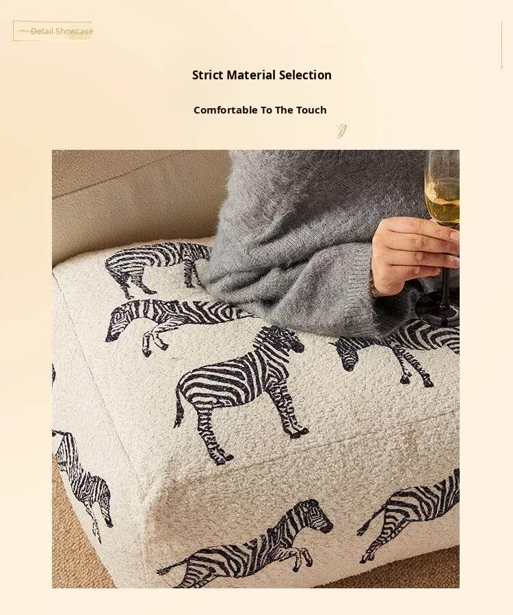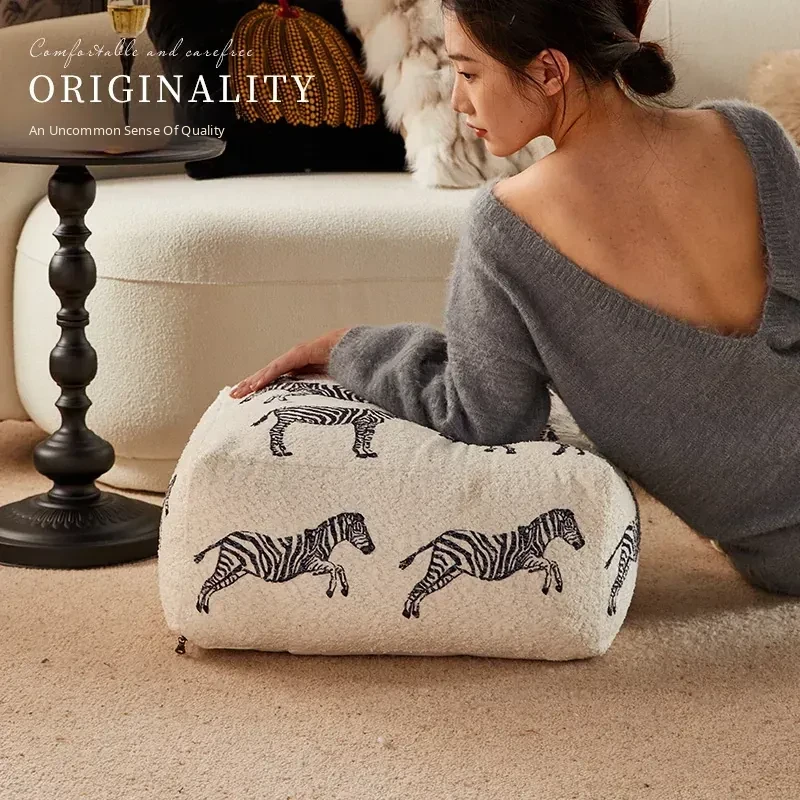 Modern Chinese Style Zebra Print Pouf - Cozy Sofa Stool for Living Room, Ideal for Relaxation and Meditation, White Window Seat Cushion, Perfect for Home Décor.