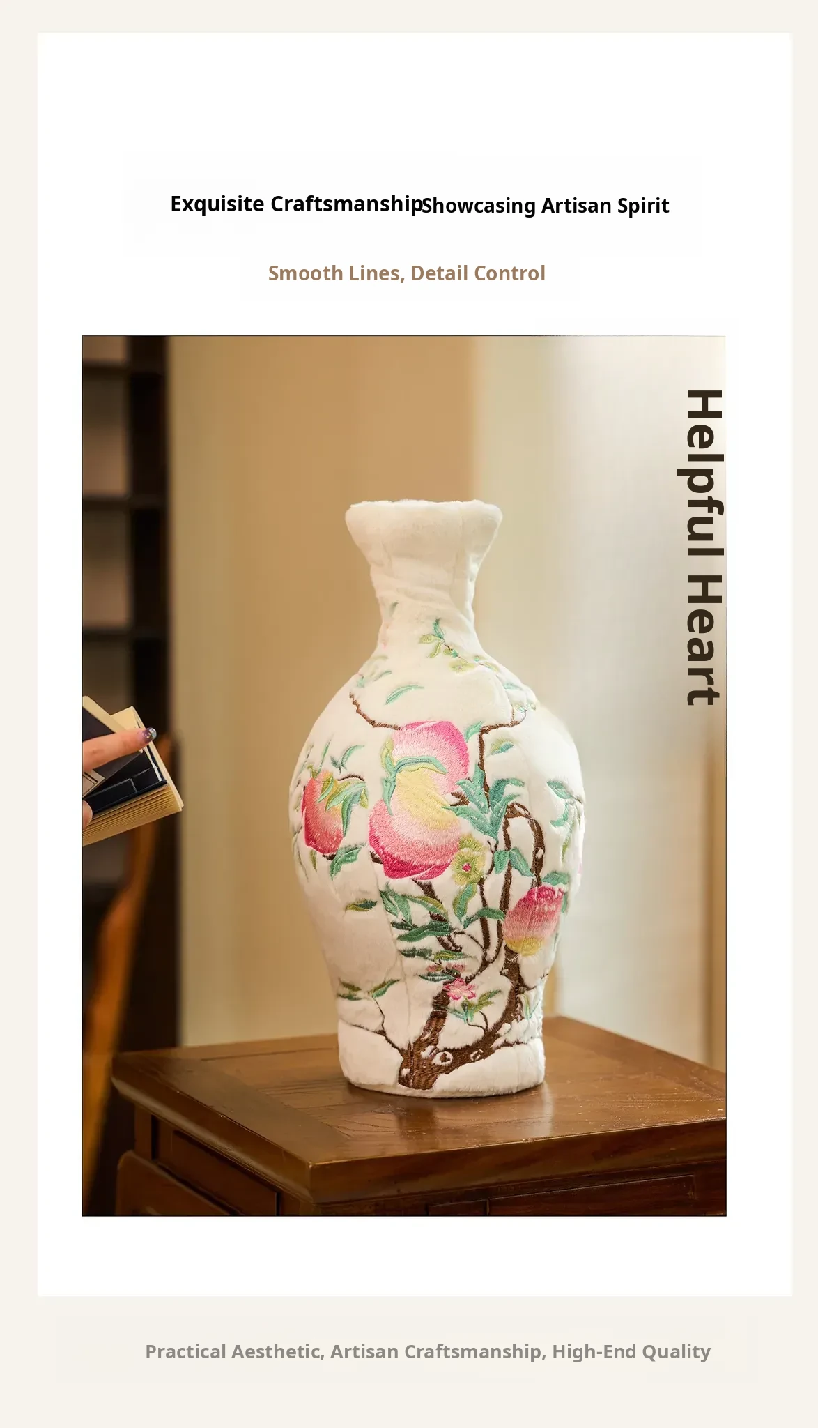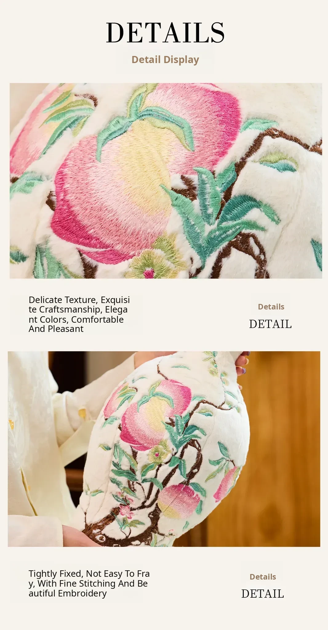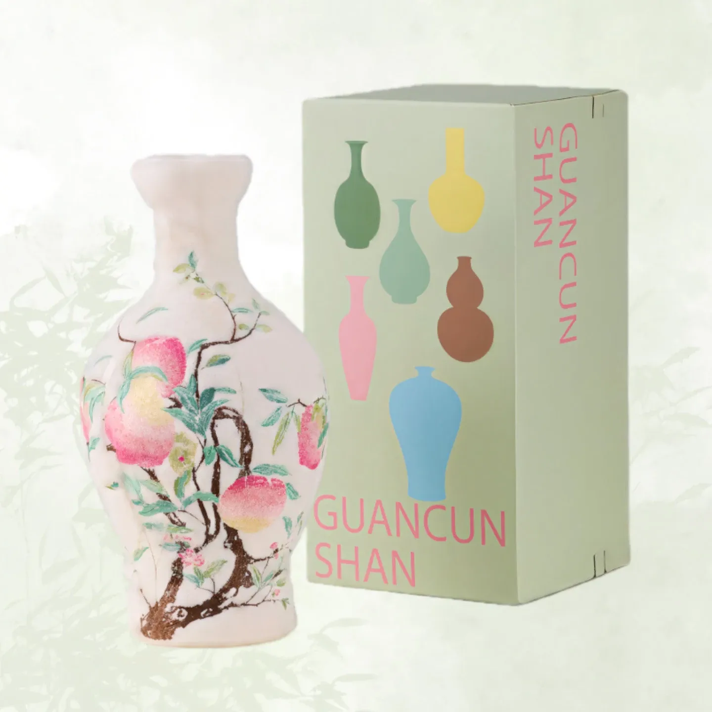 Pastel Bat and Peach Pattern Bottle Velvet Porcelain Embroidery Pillow Ornament + Gift Box (Bottle Diameter 20*Height 39)