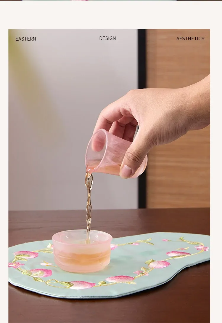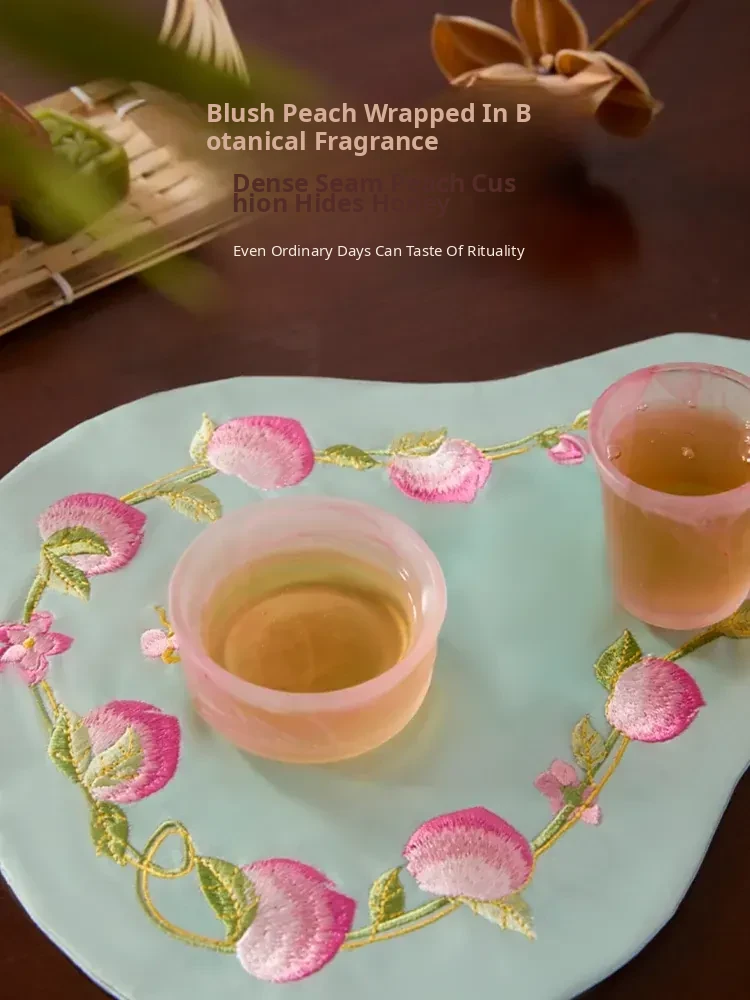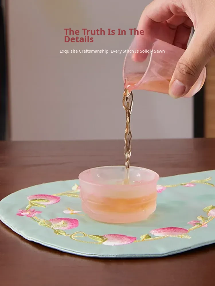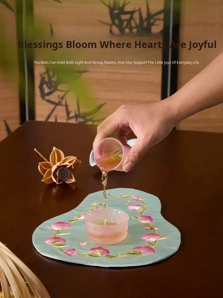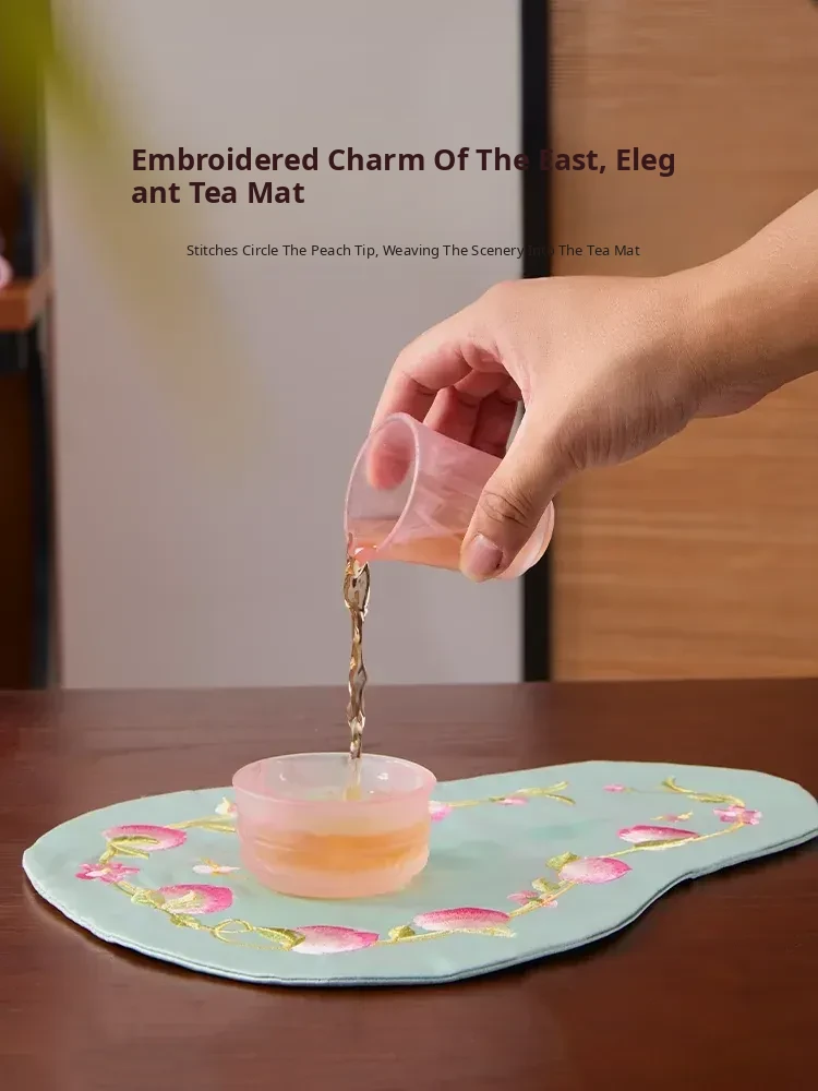 New Chinese Style Embroidered Peach Blossom Fabric Tea Cloth - Unique Teaware Accessory for Home, Perfect for Tea Ceremonies and Dry Brewing, Ideal for Tea Tables and Mats