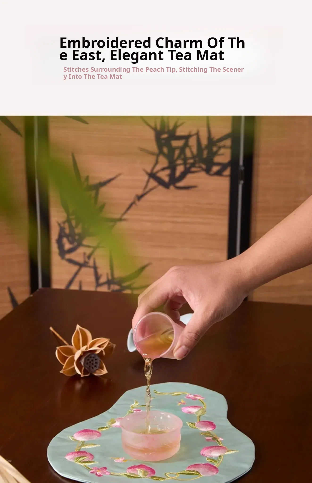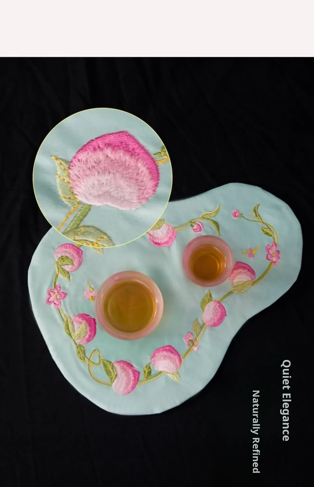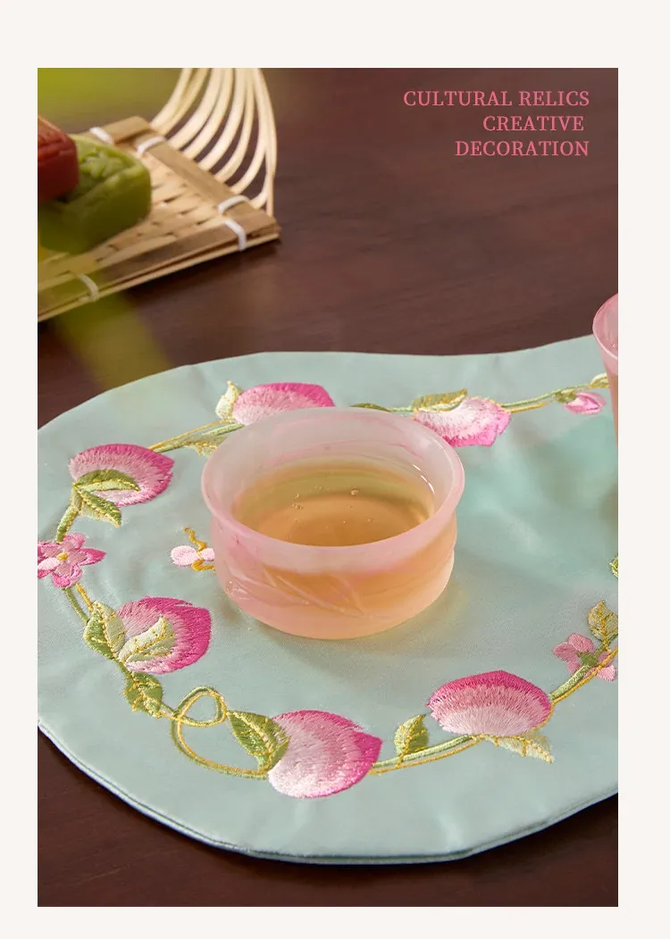 New Chinese Style Embroidered Peach Blossom Fabric Tea Cloth - Unique Teaware Accessory for Home, Perfect for Tea Ceremonies and Dry Brewing, Ideal for Tea Tables and Mats