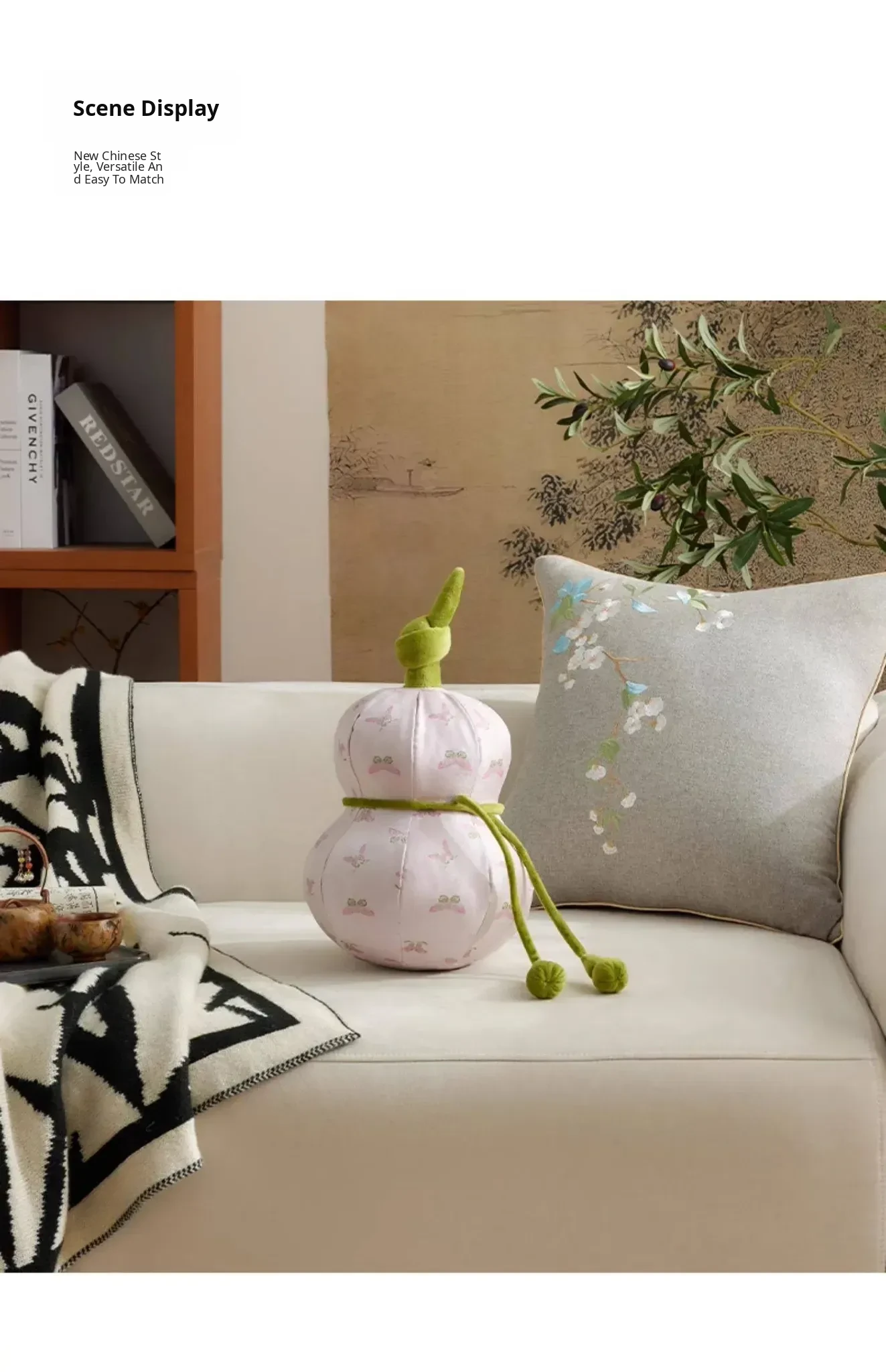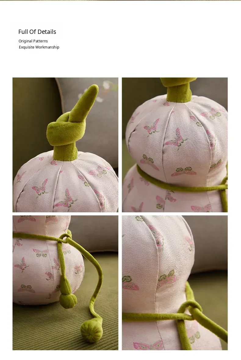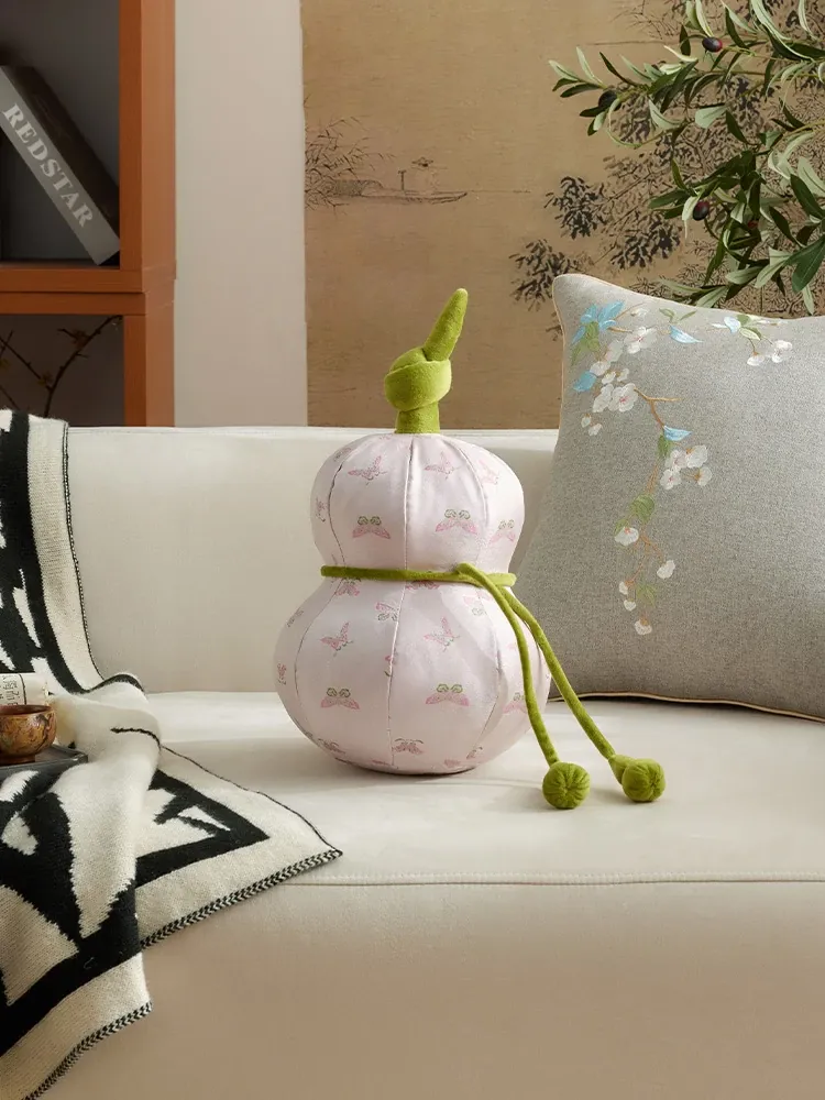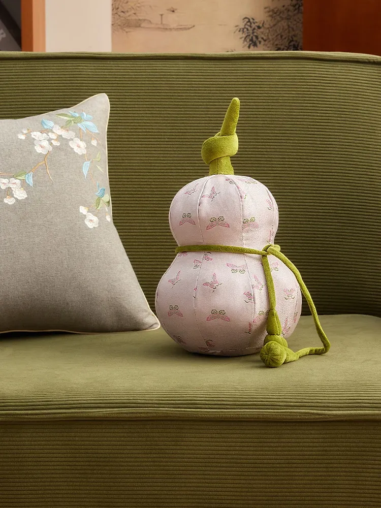 New Chinese Style Gourd-Shaped Decorative Pillow - Elegant and Creative Luxury Waist Cushion with Filling for Living Room Sofa Back Support