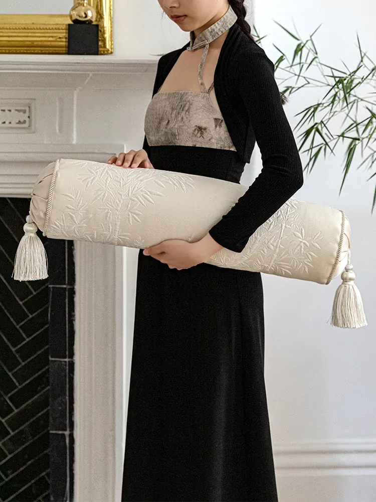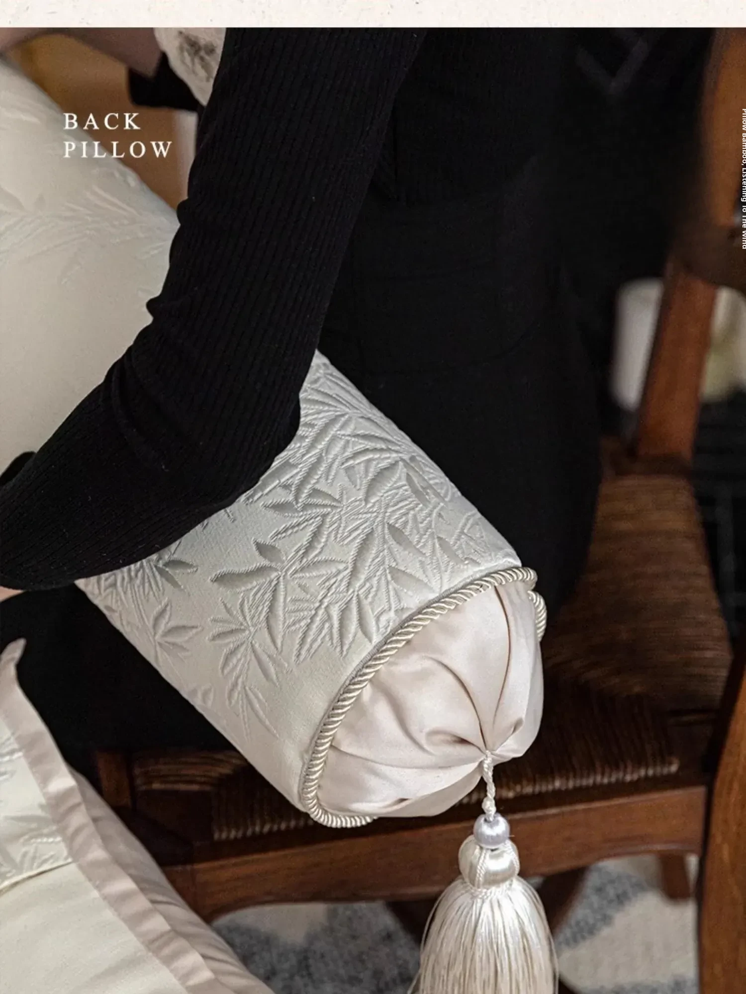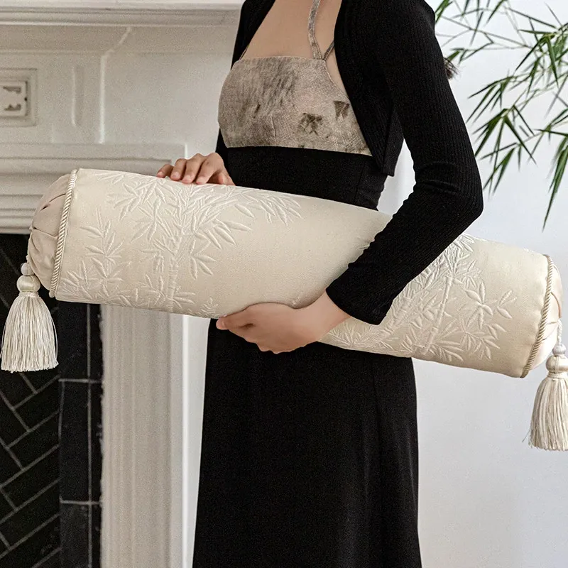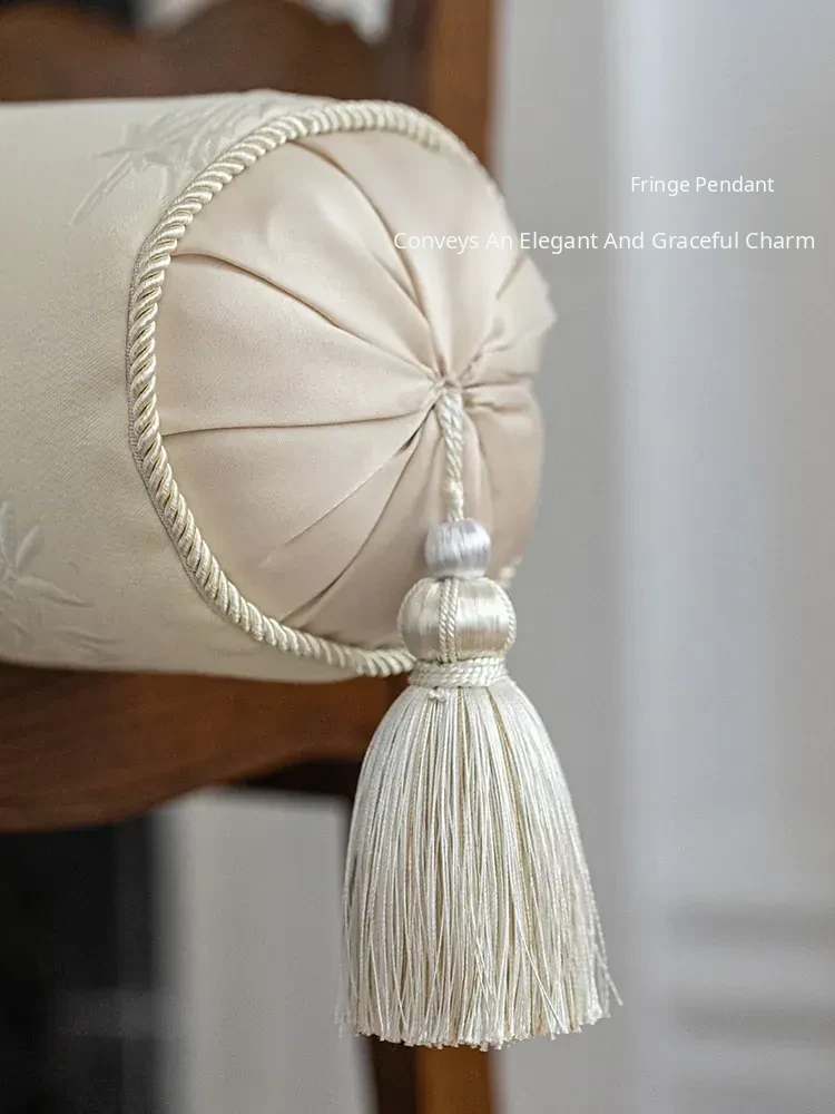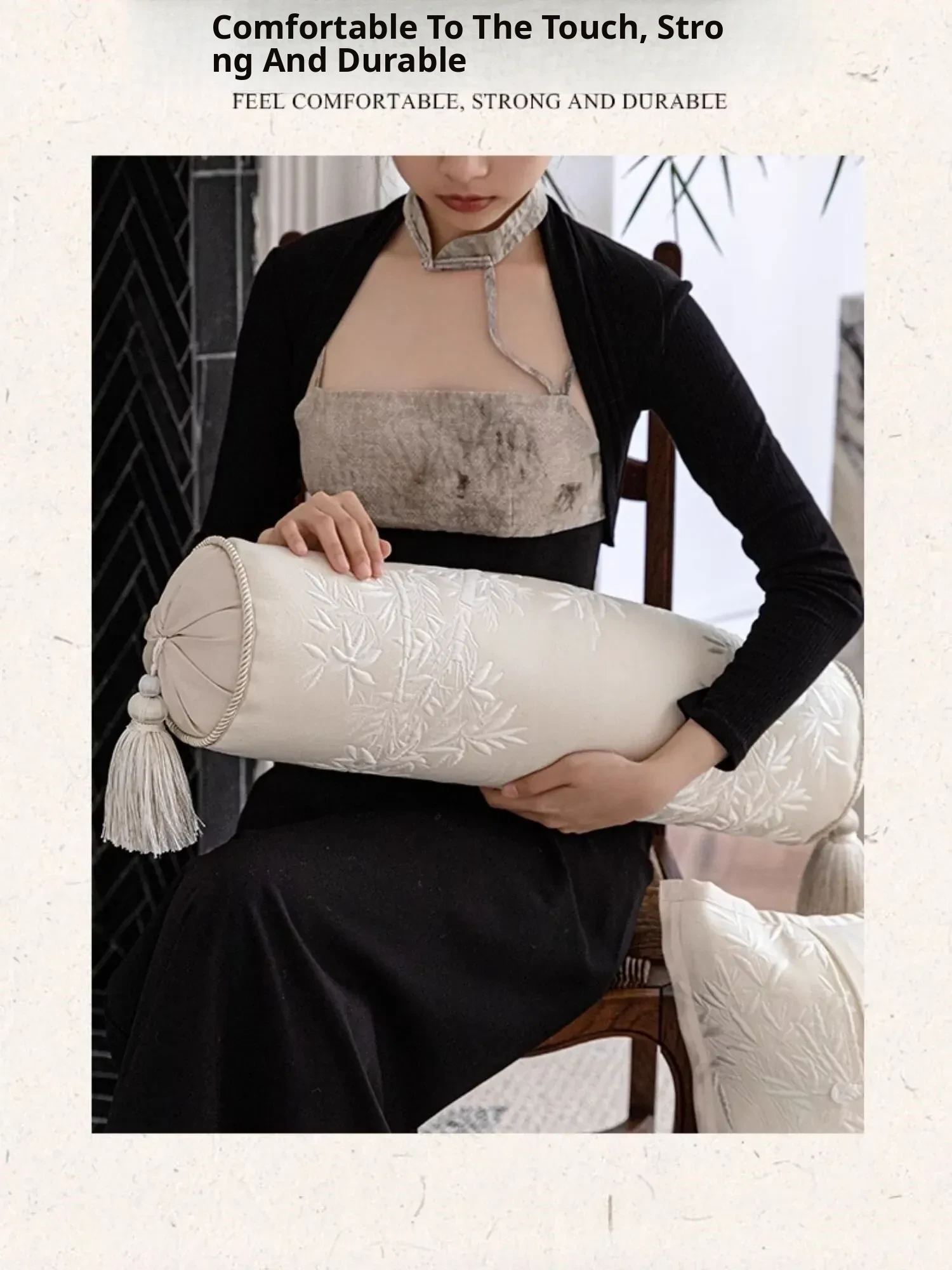 New Chinese Style Long Rectangular Armrest Pillow - Elegant Cylindrical White Lumbar Cushion for Living Room Sofa, French Cream Aesthetic High-End Support Pillow