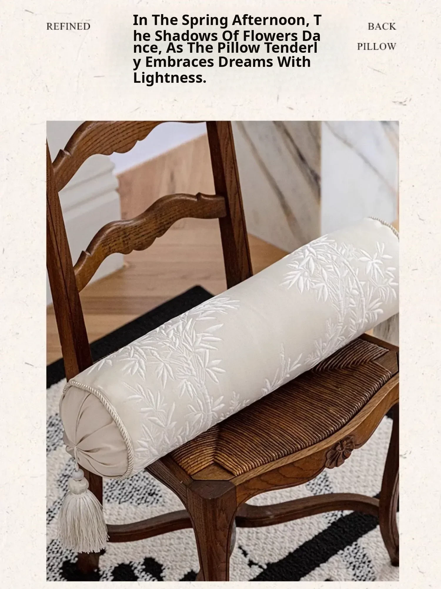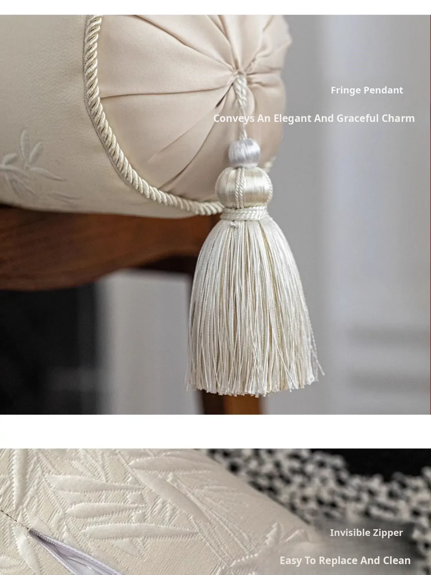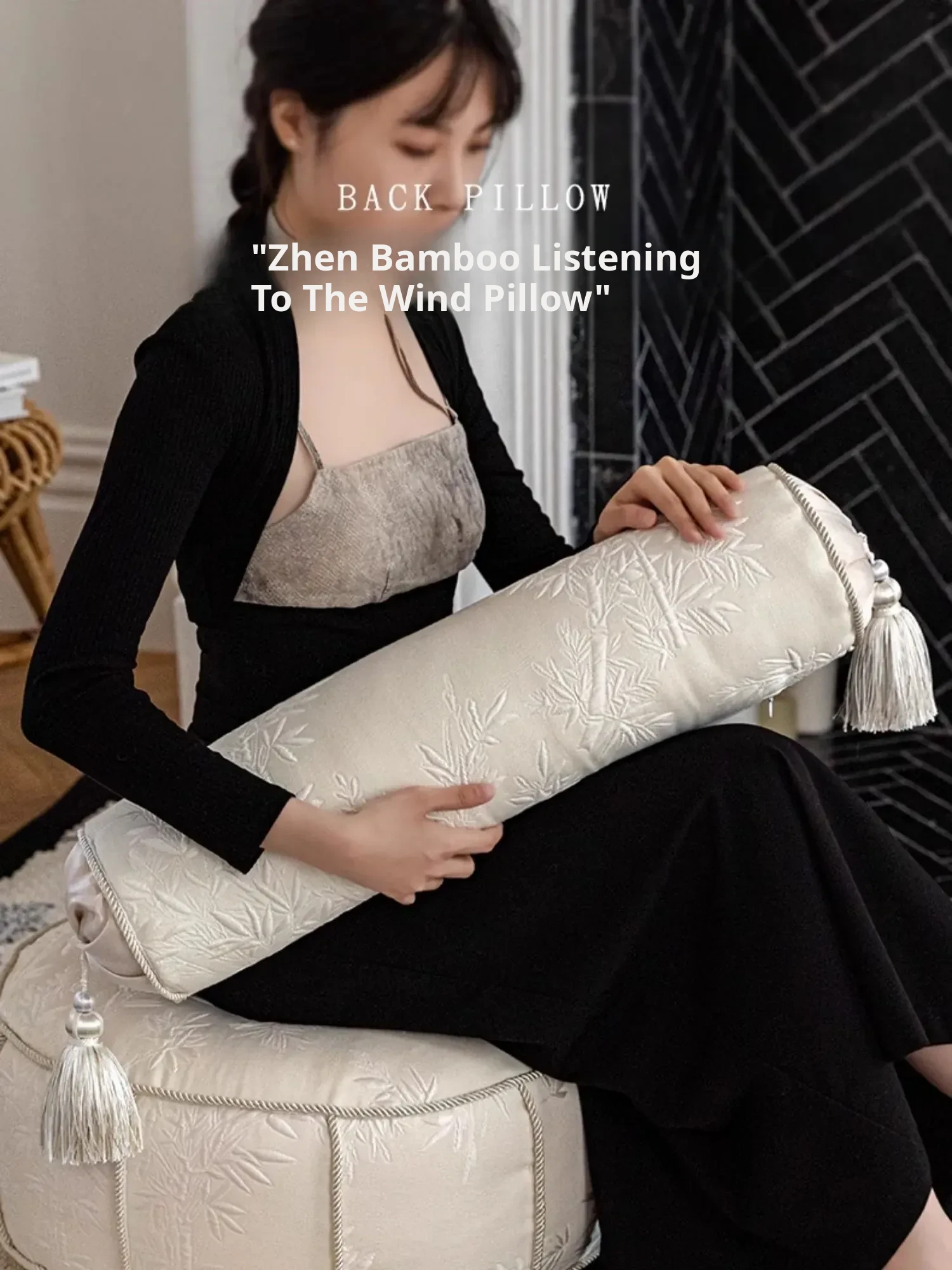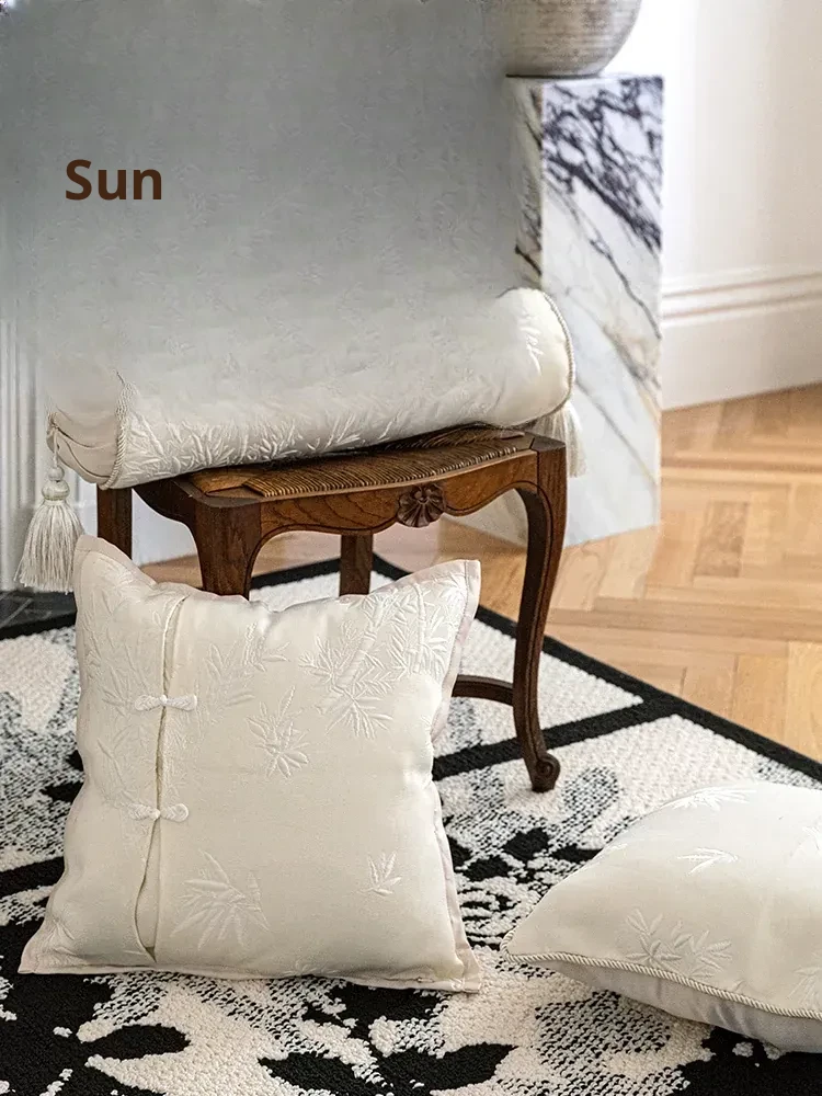 New Chinese Style Long Rectangular Armrest Pillow - Elegant Cylindrical White Lumbar Cushion for Living Room Sofa, French Cream Aesthetic High-End Support Pillow