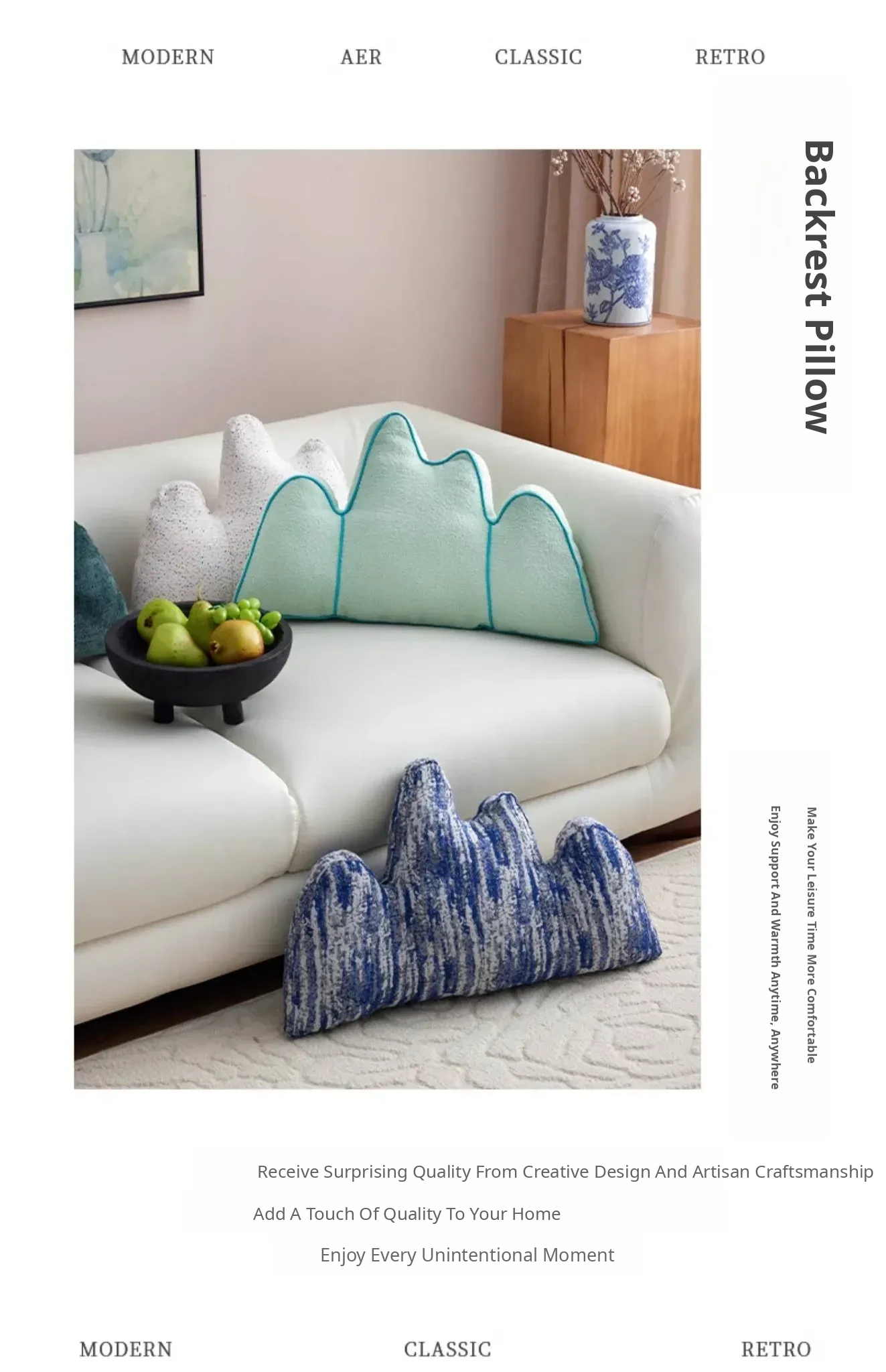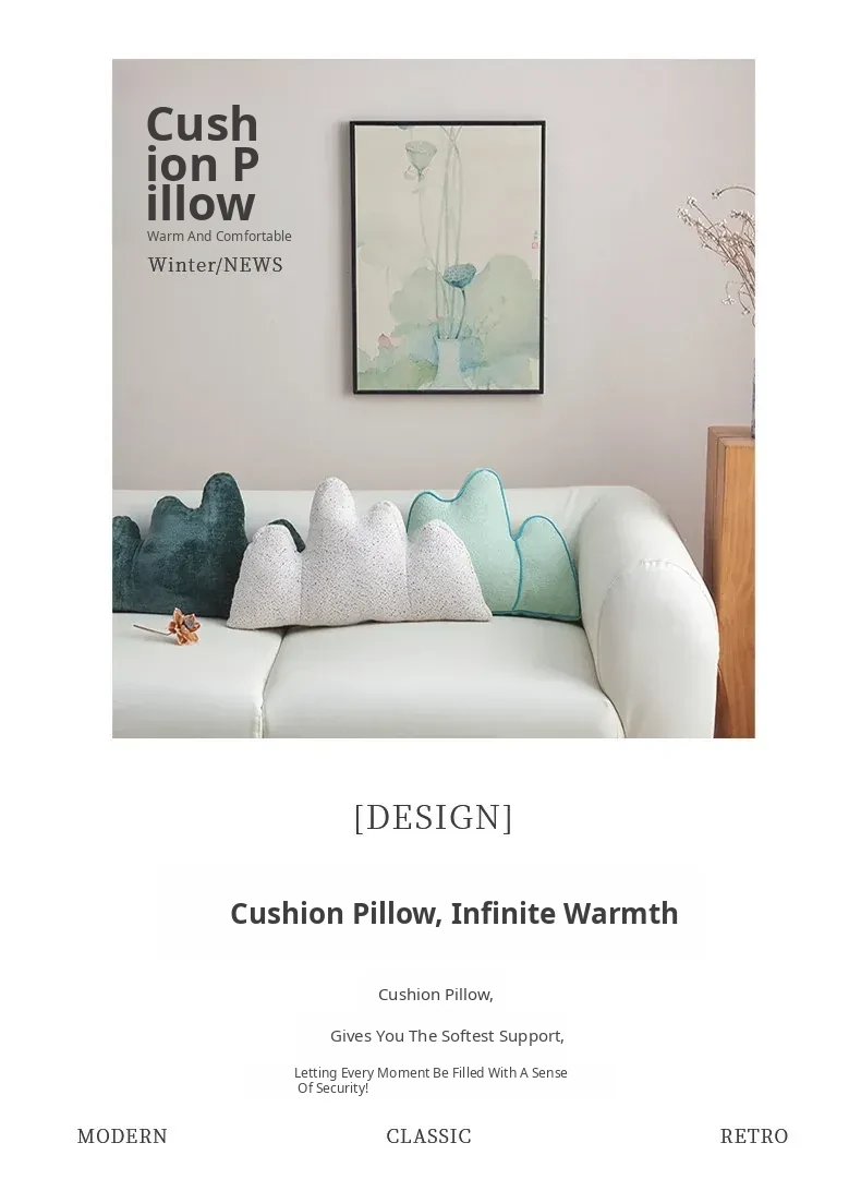 New Chinese Style Mountain-Shaped Backrest Pillow - Creative Sofa Cushion for Living Room, Office Lumbar Support, and Bed Backrest – Perfect Blend of Comfort and Aesthetics for Your Home Decor