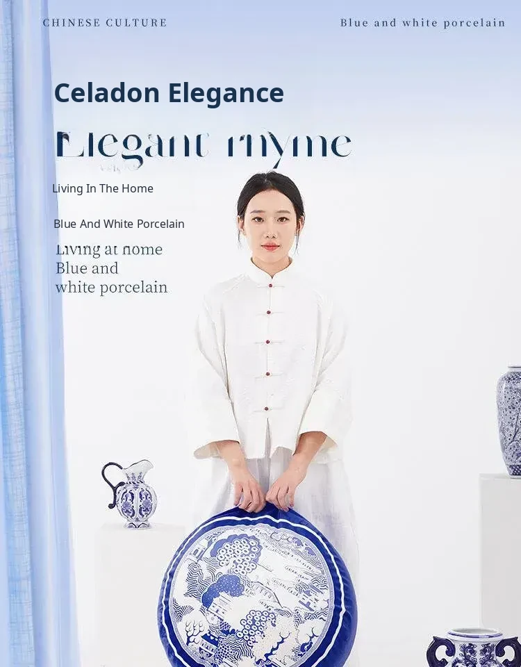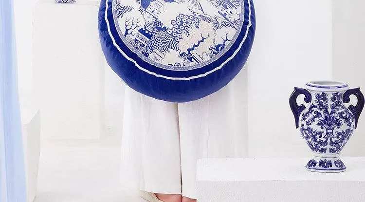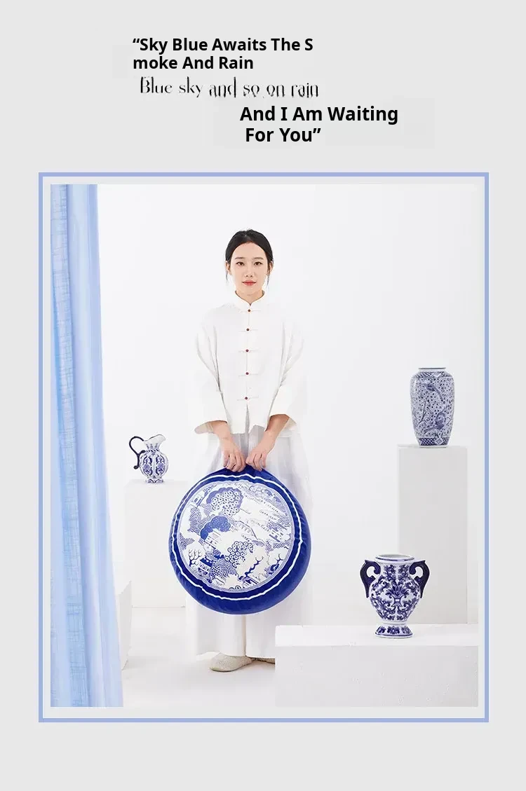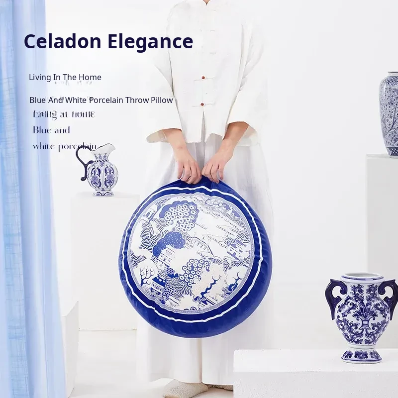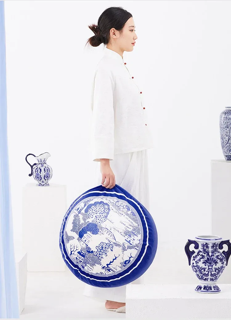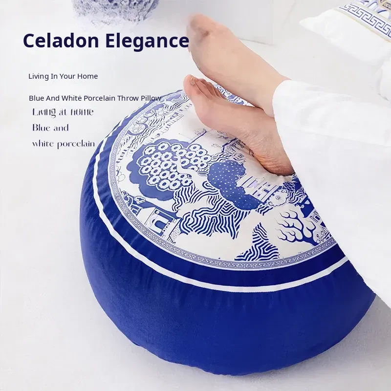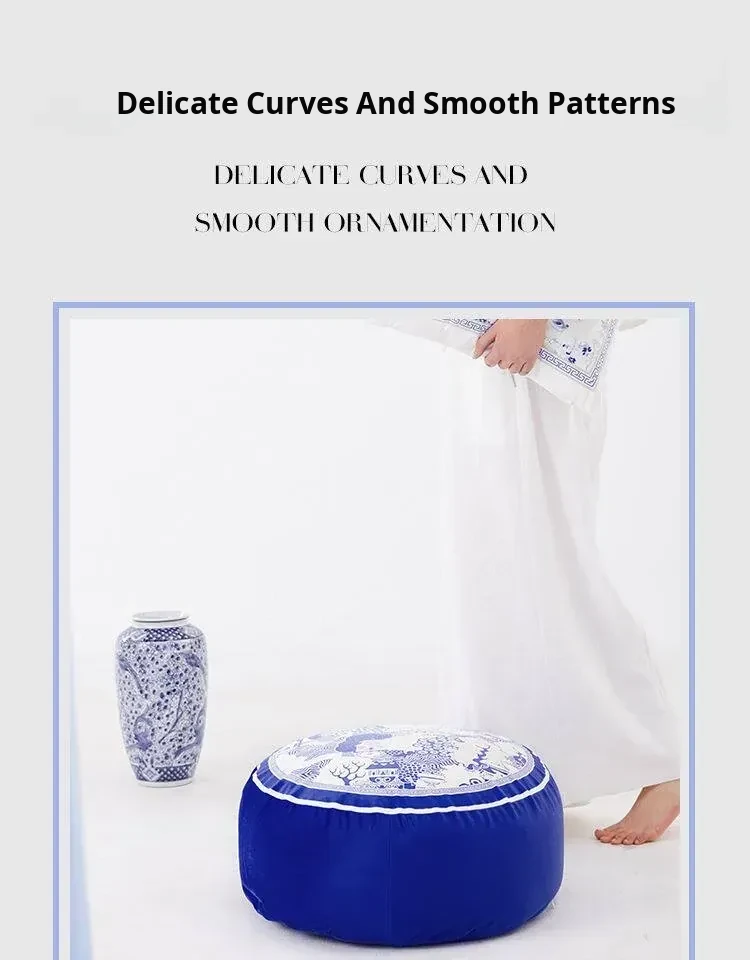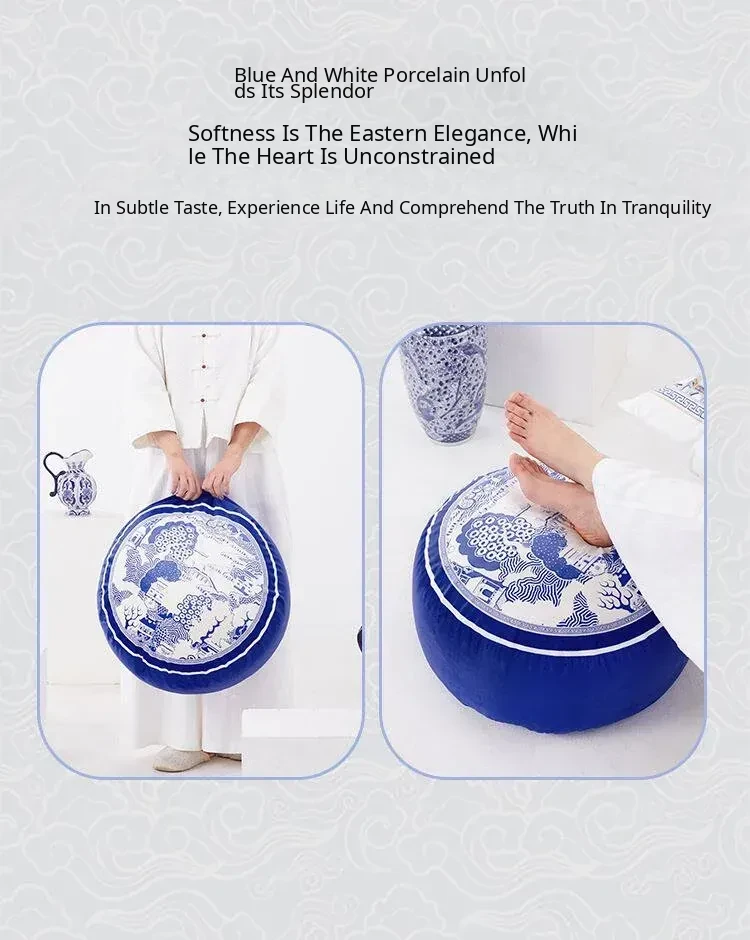 New Chinese-style Blue and White Porcelain Cushion Stool - Elegant and Luxurious Low Round Bench, Removable and Washable, Perfect for Balconies and Cozy Spaces