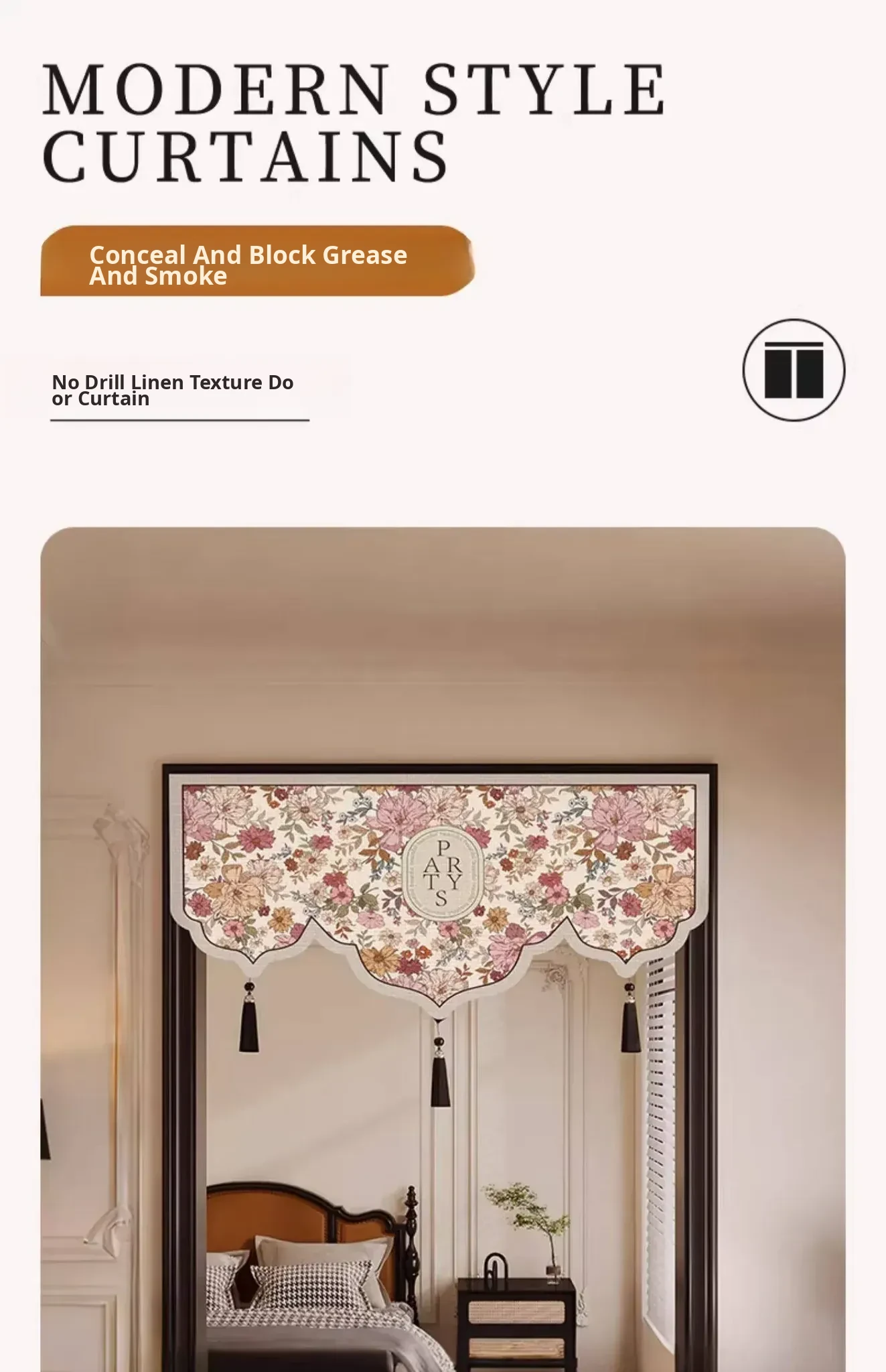 No-Drill American-Style Unique Door Curtain 2026 New Bedroom Decor - Elegant Tassel Triangle Flag Half-Hanging Banner for Privacy and Style
