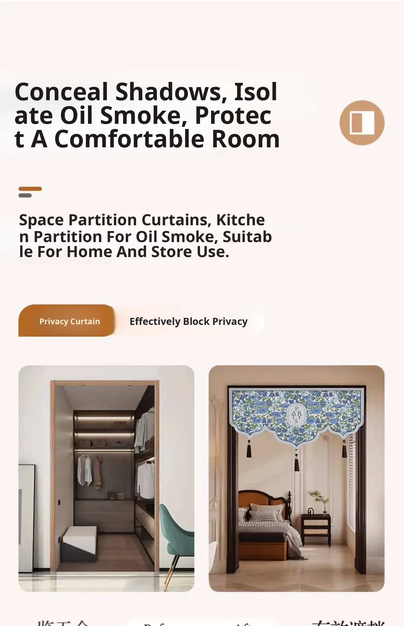 Pink and White Floral Linen Door Curtain-Single Layer Curtain with Special Shape (Short Curtain)