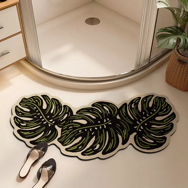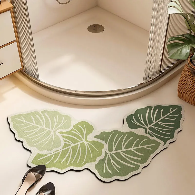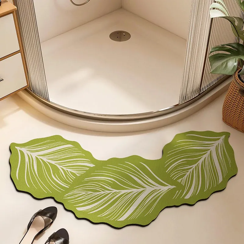 Floating Fallen Leaves Bathroom Diatom Mud Floor Mat-Curved Special Shape
