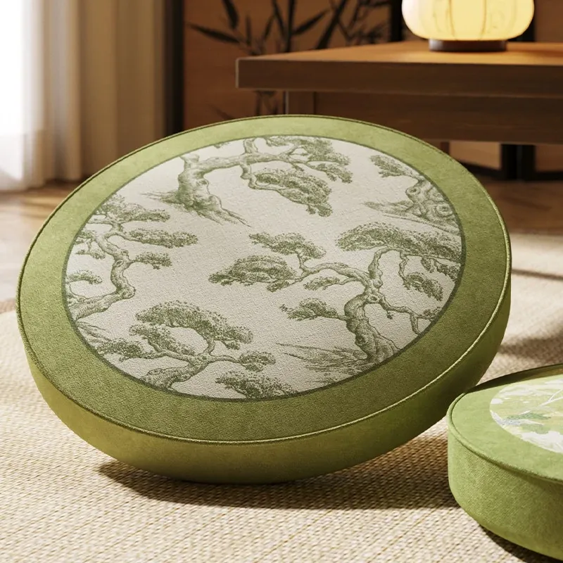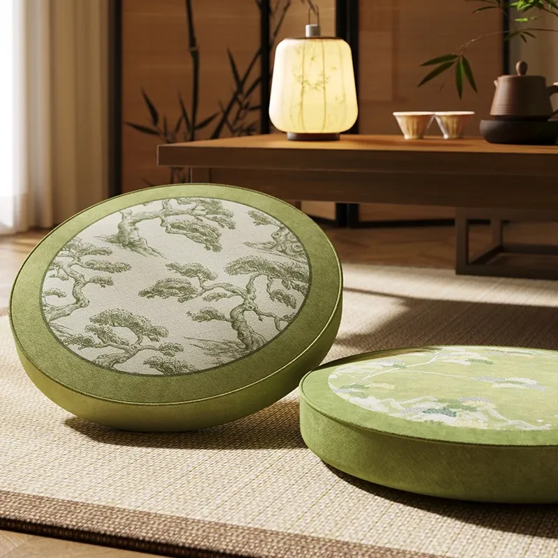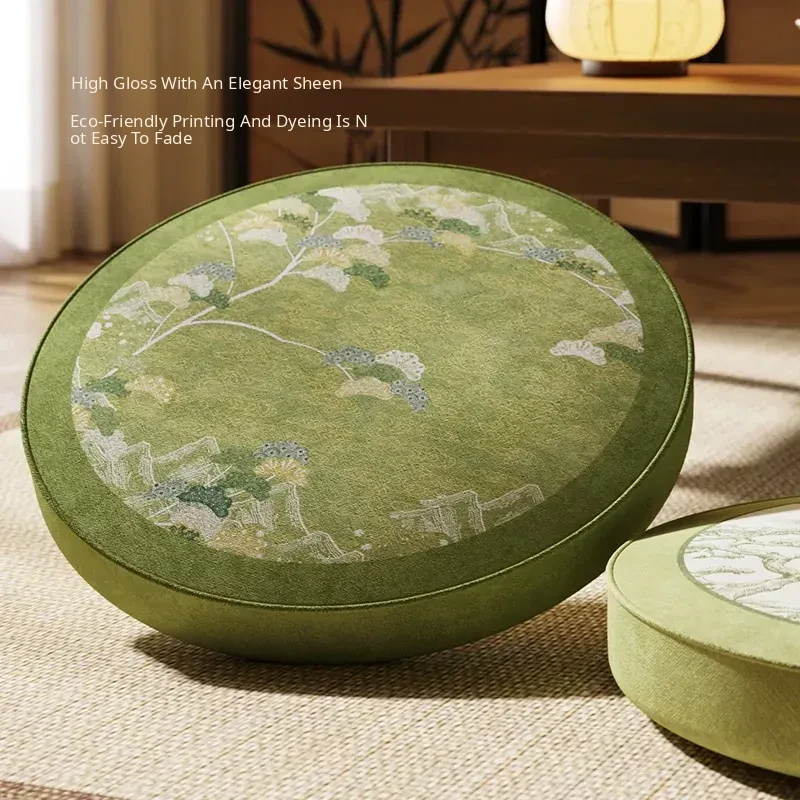 Thickened New Chinese Style Round Fabric Cushion - Perfect for Balconies, Bay Windows, and Tatami Mats. Machine Washable Floor Pillow for Comfortable Seating on Windowsills and Floors.