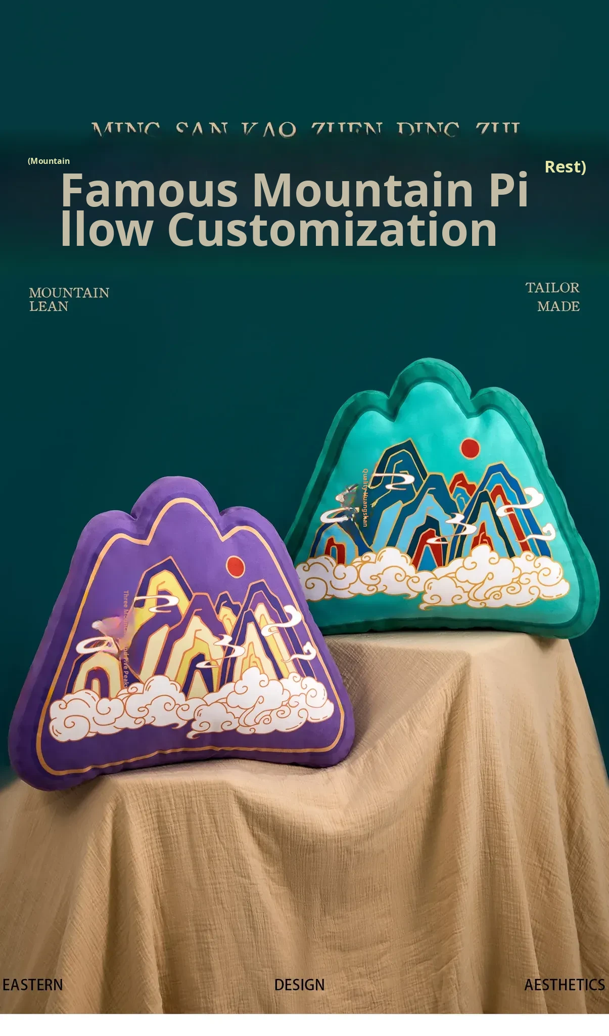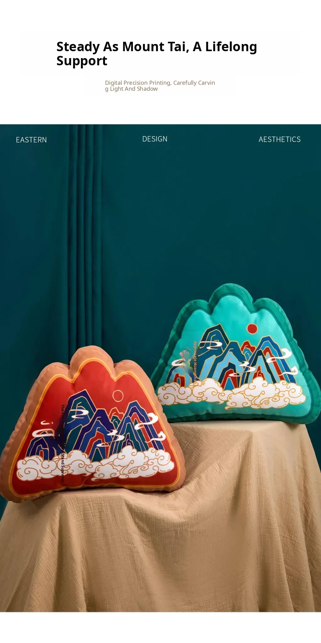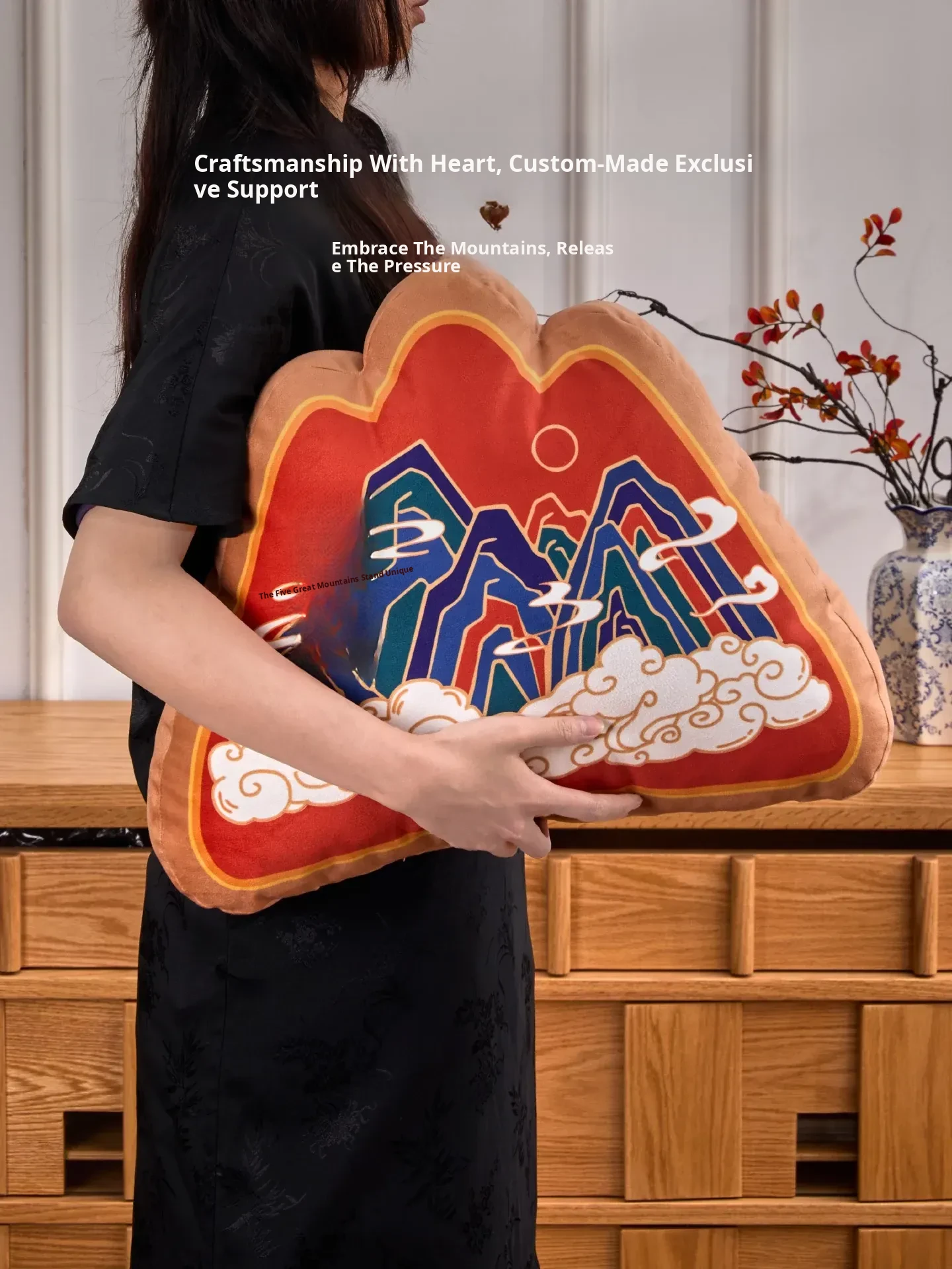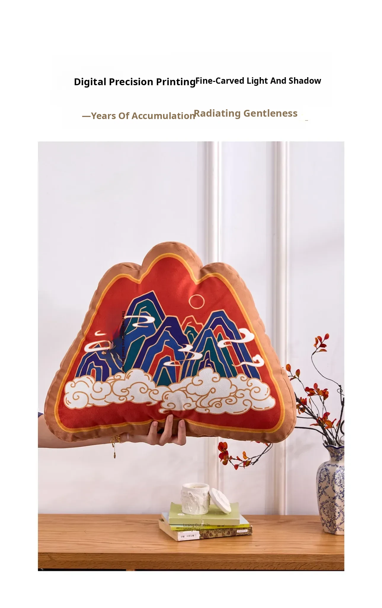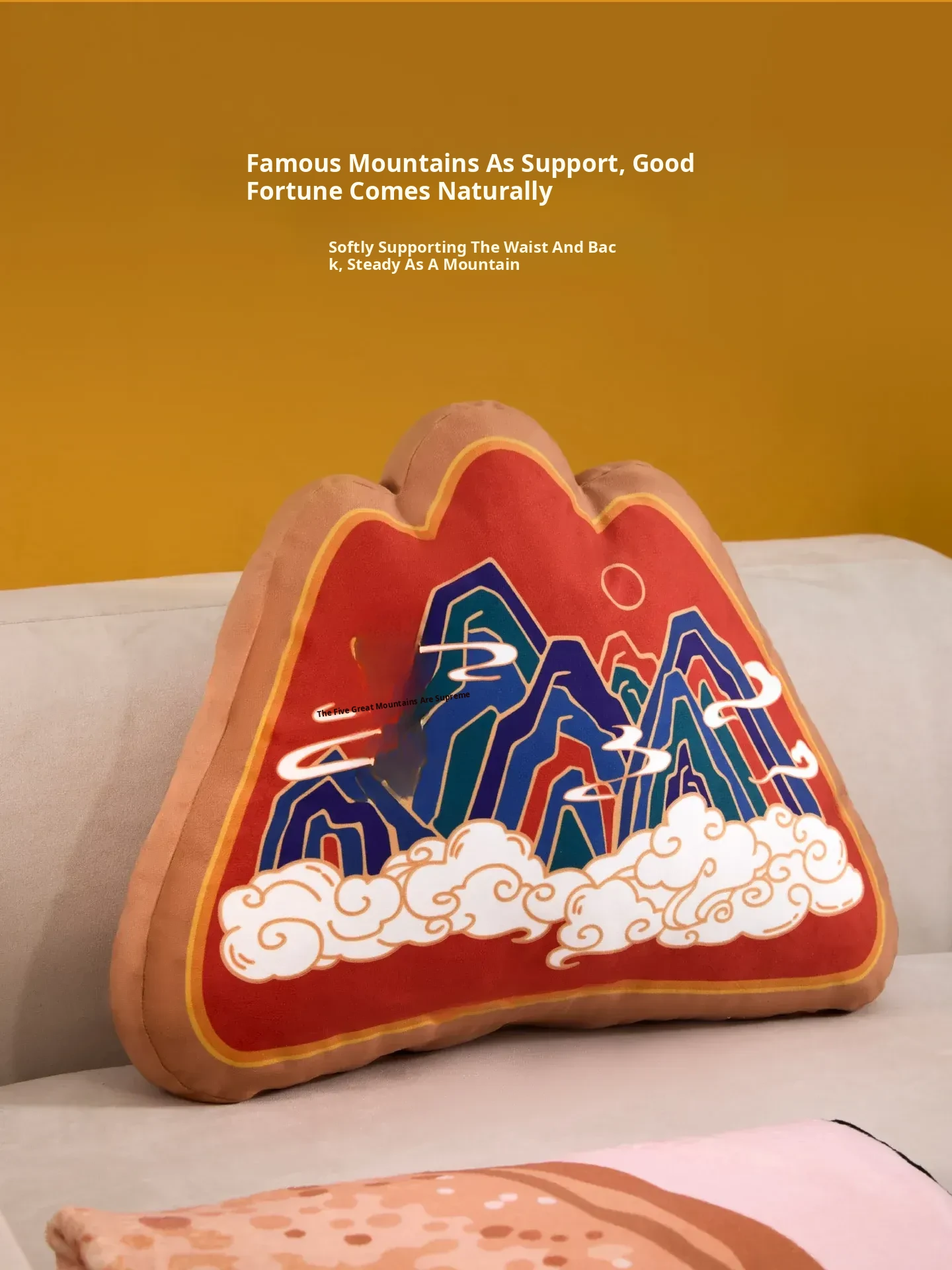 Traditional Chinese Style Five Mountains Decorative Pillow - Unique Mountain-Shaped Back Cushion for Living Room Sofa and Office Chair Support, Perfect for Comfort and Aesthetic Appeal