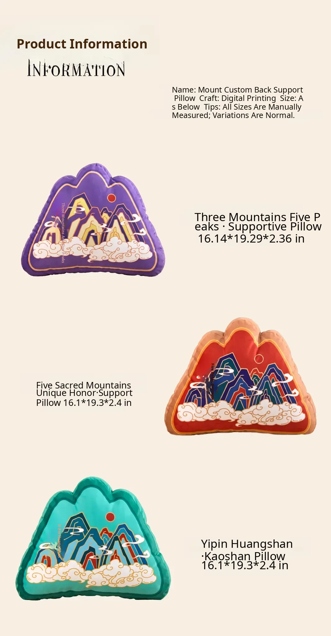 Three Mountains and Five Mountains Back Pillow [16.14in*19.29in*2.36in]