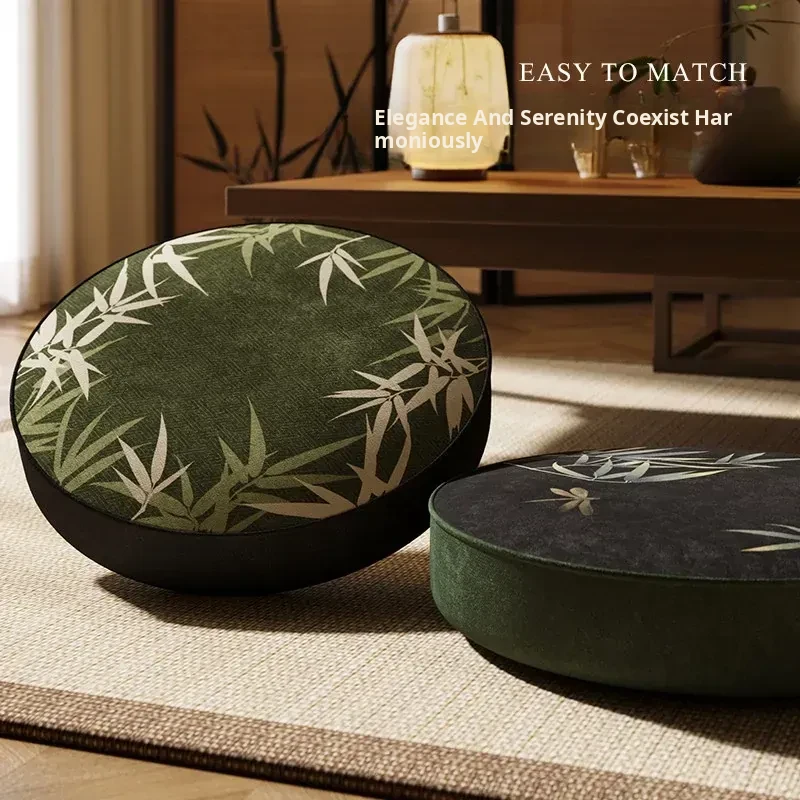 Zen-Style Bamboo Zafu Cushion for Tea Room and Bay Window - Comfortable Round Meditation Seat for Tatami and Long Sitting Sessions, Perfect for Relaxation and Aesthetic Appeal