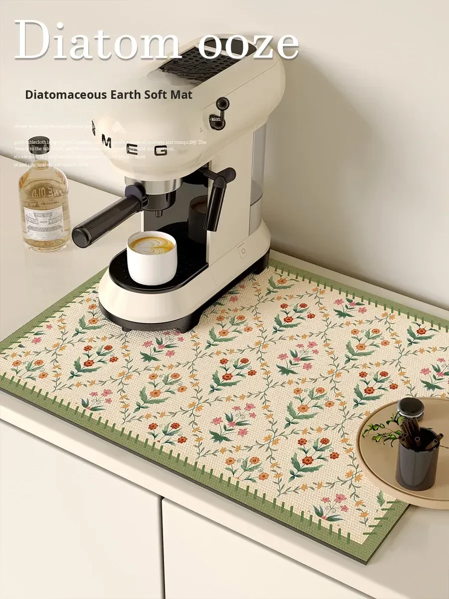 Diatomaceous Earth Kitchen Countertop Mat - Coffee Draining Pad for Dishes and Utensils, Water Absorbent Soft Mat for Bar and Kitchen Use, Perfect for Keeping Your Space Clean and Dry!