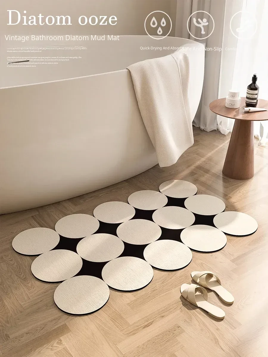 Absorbent Diatomaceous Earth Bath Mat – Non-Slip Bathroom Rug for Sink Area – Creamy Aesthetic Shaped Carpet for Stylish and Safe Home Decor