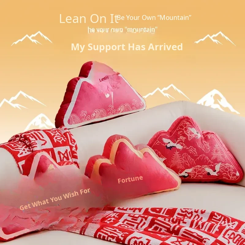Elegant New Chinese Style Backrest Pillow - Trendy National Style Office Cushion with Mountain Design for Living Room Sofa - A Touch of Sophistication