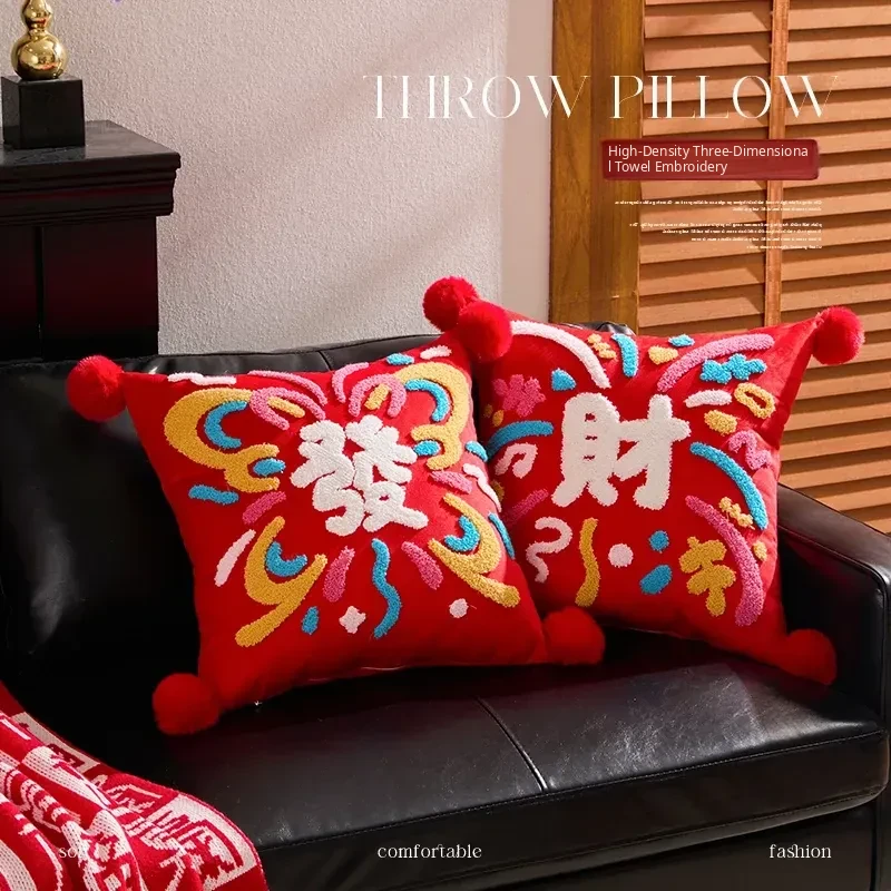 Luxurious Red Festive Throw Pillow Covers for New Year – Perfect for Living Room Sofa, Birthday Gifts, and Spring Festival Celebrations. Ideal for the Year of the Snake!