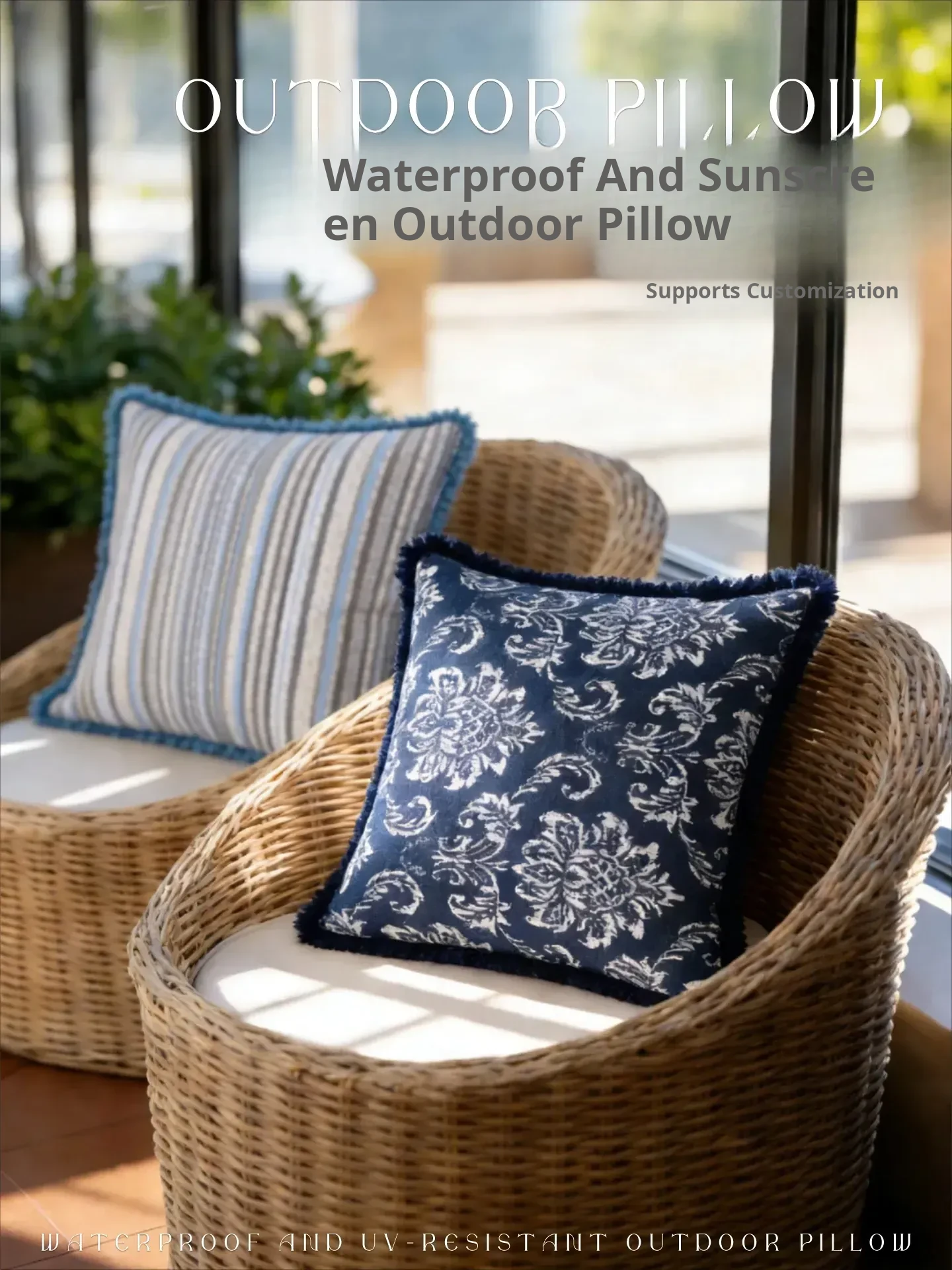Outdoor Waterproof and Sun-Resistant Cushions for Patios, Balconies, Lounge Chairs, Hanging Baskets, Hotel Sofas, Back Support and Lumbar Pillows, Perfect for Camping and Relaxation