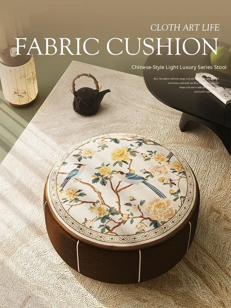 New Chinese-style Blue and White Porcelain Cushion Stool - Elegant and Luxurious Low Round Bench, Removable and Washable, Perfect for Balconies and Cozy Spaces