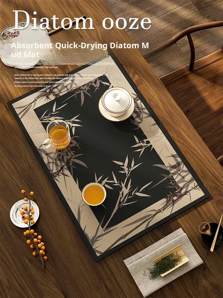 Zen-inspired New Chinese Style Tea Table Drainage Mat - Diatomaceous Earth Water Absorbent Pad for Tea Sets, Tea Tables, and Coasters - Heat Resistant and Elegant Design for a Serene Tea Experience