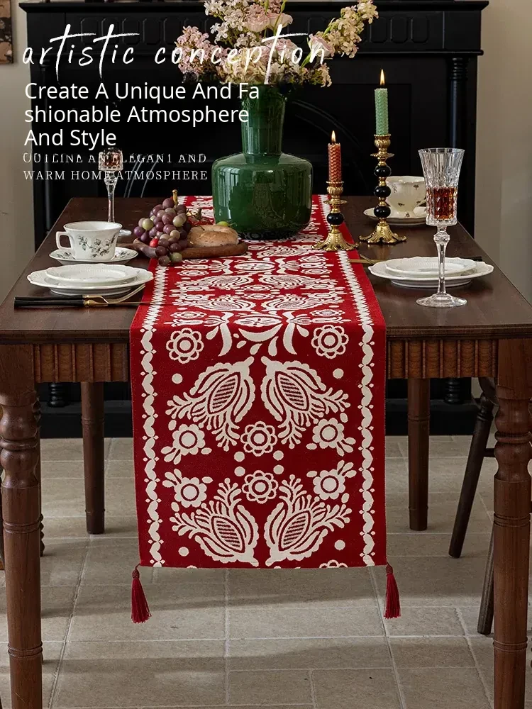 Waterproof Tablecloth with Embroidery - Elegant European and American Style Table Runner for Dining Tables, TV Stands, Sideboards, and Coffee Tables with Decorative Tassels