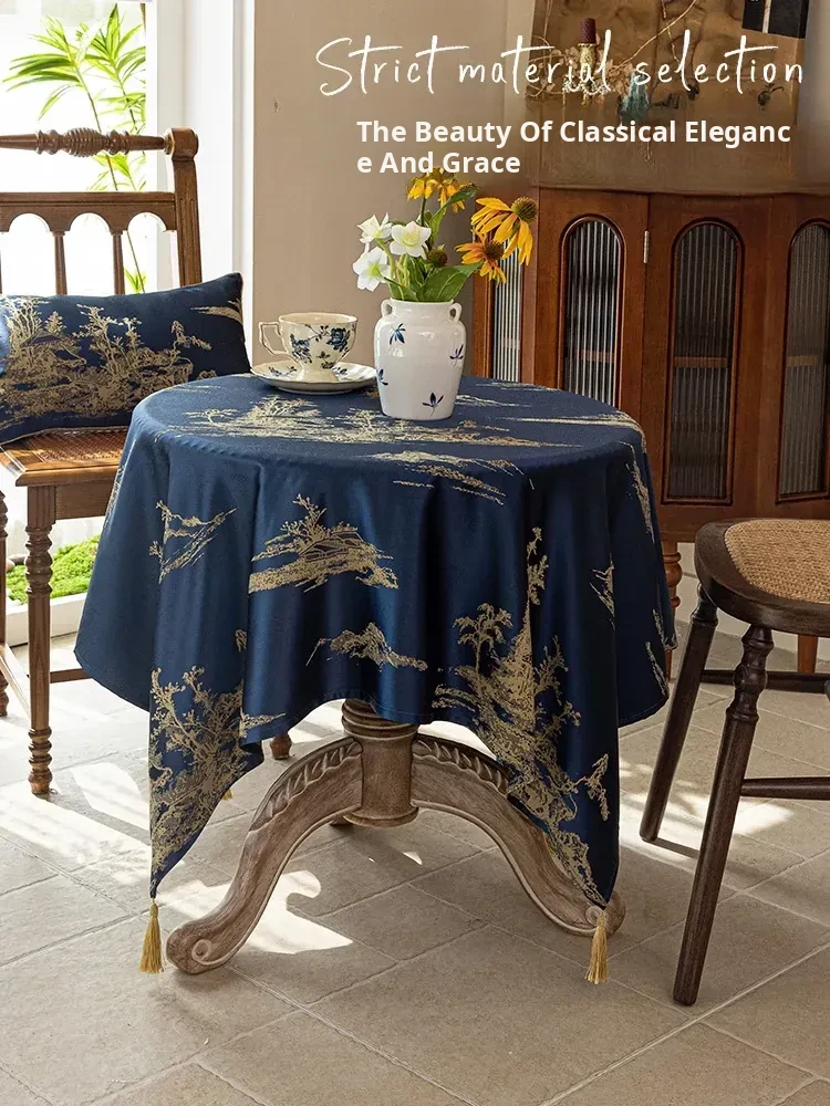 Elegant Blue Tablecloth in Chinese Style - Luxurious and Chic for High-End Dining and Living Rooms, Perfect for Tea Tables and Traditional Decor