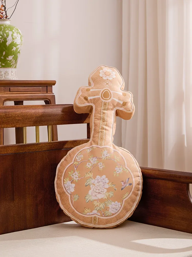 Stylish New Chinese Yellow Accent Pillow - Unique Shaped Decorative Cushion for Living Room, Solid Wood Sofa Support, Vintage Luxury Feel, Perfect for Back and Lumbar Support
