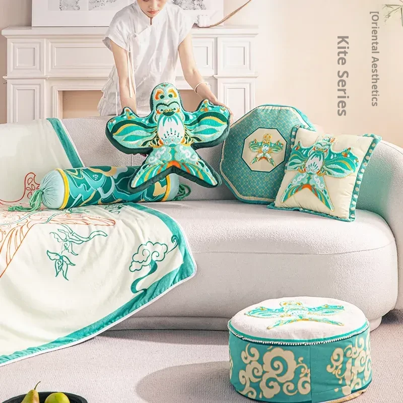 Elegant Chinese Style Creative Living Room Sofa Cushions - Kite Embroidery Throw Pillows with French Backrest Design for a Touch of Luxury and Sophistication