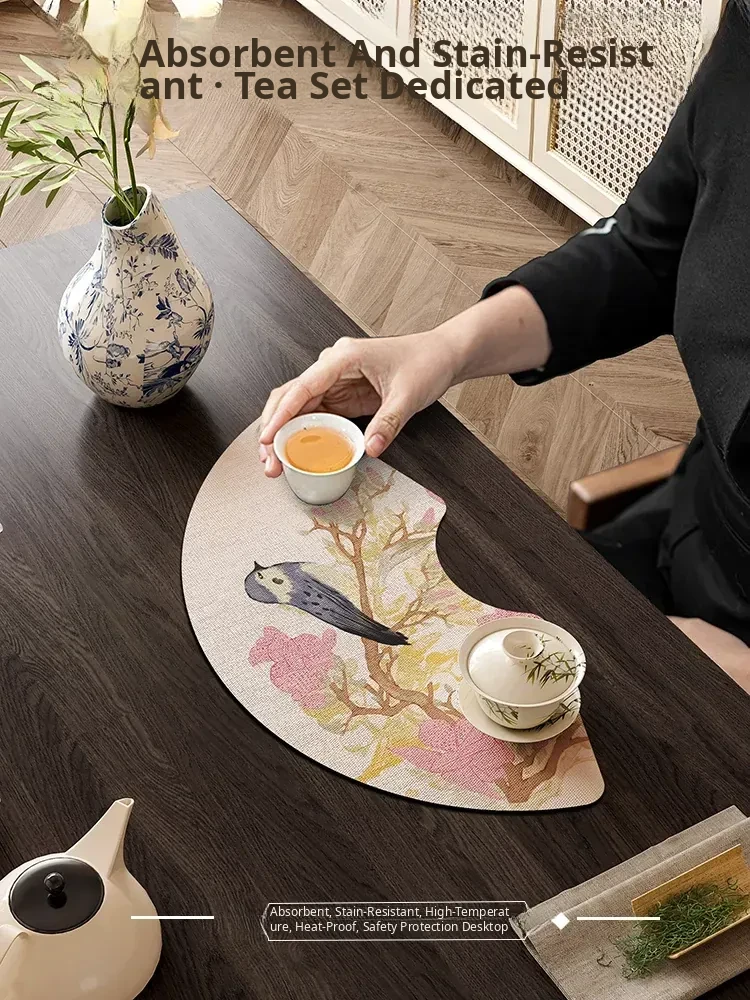 Zen-Style New Chinese Tea Ceremony Fan-Shaped Table Mat - Absorbent Diatomaceous Earth Tea Table Pad for One Person, Elegant French Table Runner for Tea Lovers
