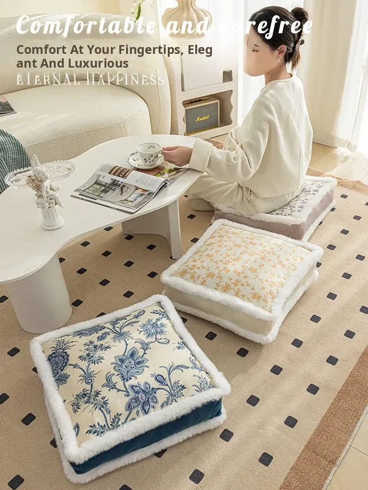 New Chinese-style Blue and White Porcelain Cushion Stool - Elegant and Luxurious Low Round Bench, Removable and Washable, Perfect for Balconies and Cozy Spaces