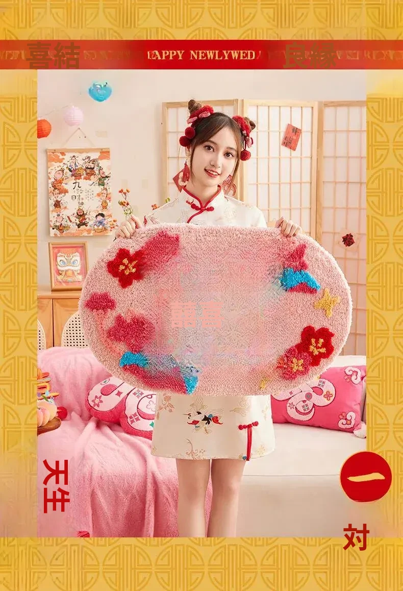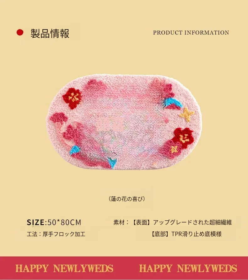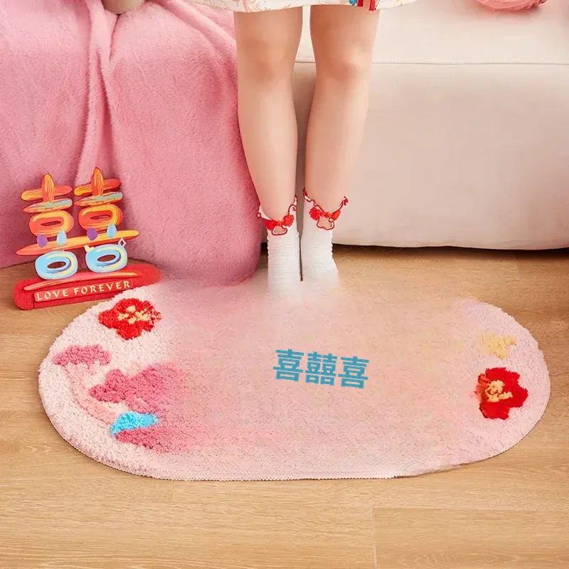2026年新作!おしゃれな楕円形の祝賀ベッドサイドマット - 家庭用、玄関マット、リビングルーム用、結婚式のデコレーションにも最適!エレガントなデザインでお部屋を華やかに彩ります。