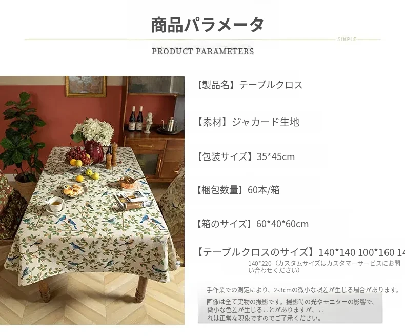 アメリカンカントリースタイルの長方形テーブルクロス - 高級感溢れるリビングやダイニングに最適!おしゃれなティーテーブルマットとして、素敵なインテリアを演出します。