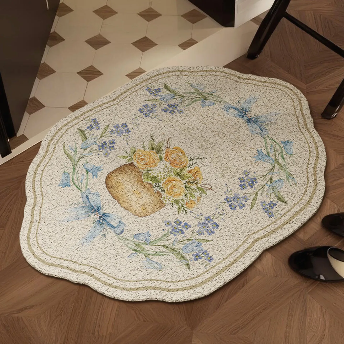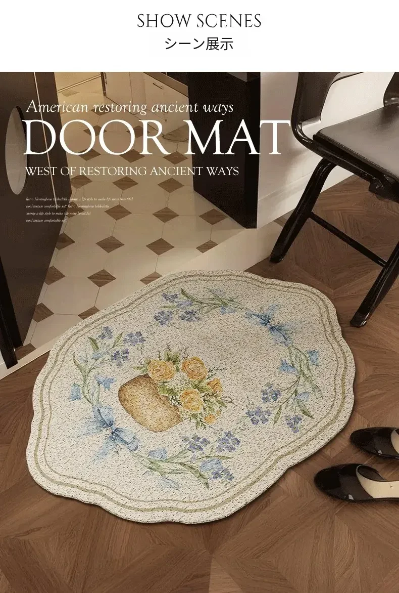 アメリカンスタイルの玄関マット、フランス風のスズランデザインで滑り止め機能付き!おしゃれで実用的なドアマットで、あなたのエントランスを華やかに演出します。お客様を温かく迎えるための必需品です!
