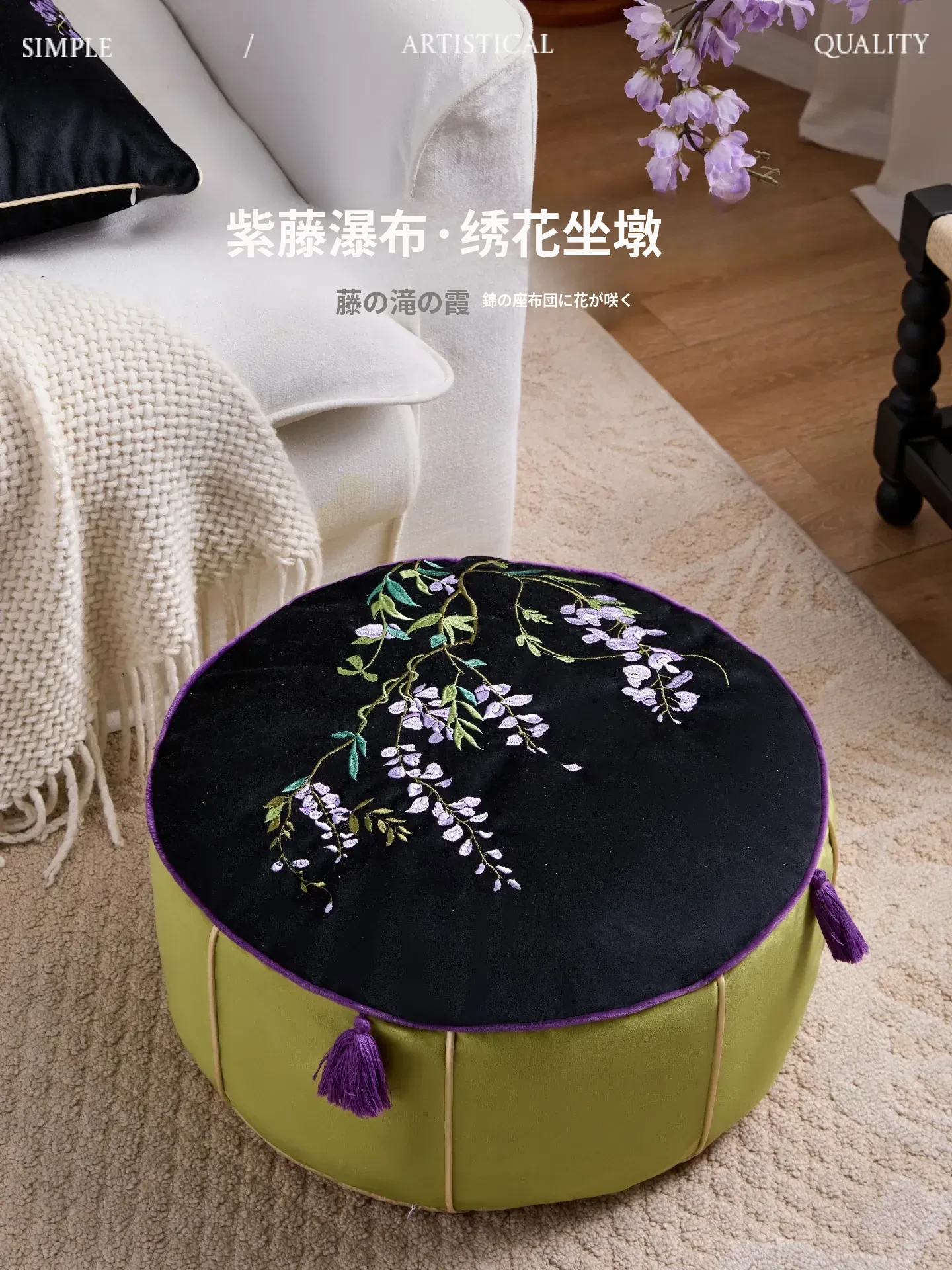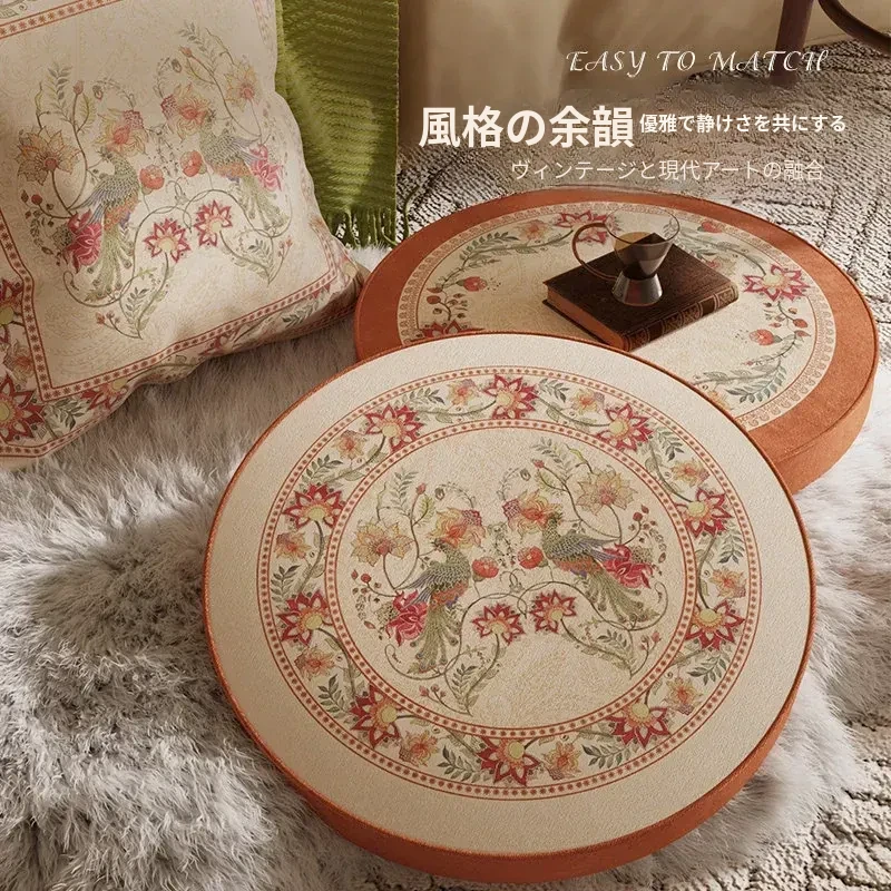 アメリカンスタイルのリビングバルコニー用クッション、フレンチスタイルのラウンドスツール、窓際の畳用高級感ある低いスツールクッション。快適さとデザインを両立したおしゃれなアイテム!